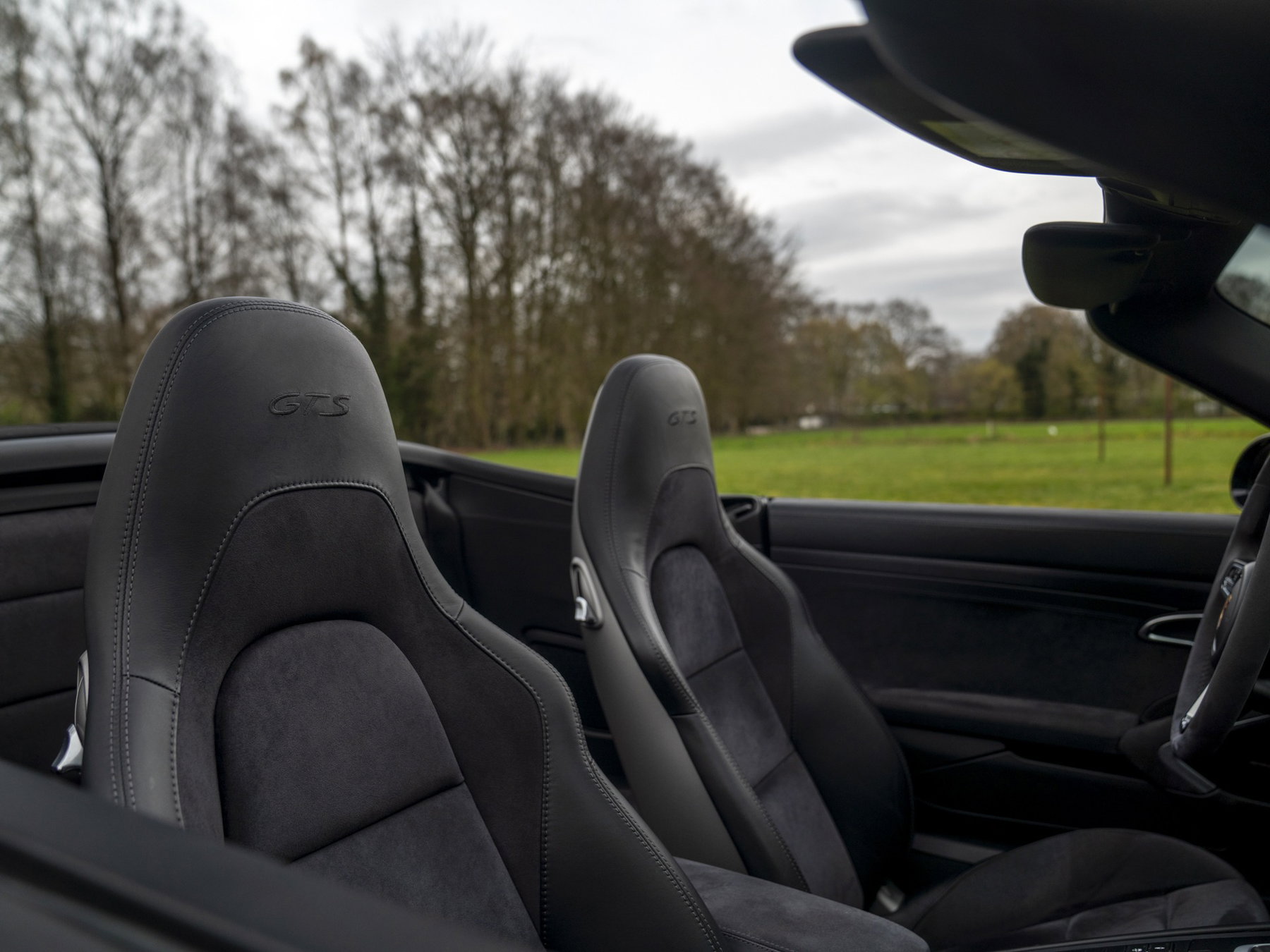 The finest black gems come from the Netherlands, because that is exactly where this stunning Porsche 991.2 Carrera 4 GTS Cabriolet was delivered new! This brilliantly assembled Elfer comes from a true enthusiast with his heart in the right place—or rather, his Porsche heart, because he traded in his facelifted 991 GTS with us for an even newer 992 GTS. For him, it’s the ultimate weekend car, since he drives a Cayenne during the week… Enough said. Back to the Porsche on your screen: in GTS trim, the Carrera 4 Cabriolet is especially desirable thanks to various beautiful touches. But it wasn’t crazy enough for the original owner, as evidenced by the 911’s unique, all-black trim: 20-inch Turbo S design wheels with center lock, SportDesign mirrors and front bumper, a sport exhaust, Alcantara Sport Seats Plus, and an extensive leather package reveal both the sporty and luxurious soul of the mysteriously colored 991.2 GTS. Paired with a PDK automatic transmission as fast as lightning, the 3.0-liter 6-cylinder turbocharged boxer engine accelerates from 0 to 100 km/h in 3.7 seconds. The output of 450 hp and 550 Nm is 20 hp and 110 Nm more, respectively, than its naturally aspirated predecessor. In any case, this model is a technical standout: PADM, PASM, PCM, PTV+, and Sport Chrono elevate the driving experience to an unprecedented level. In short, the roof is coming off!