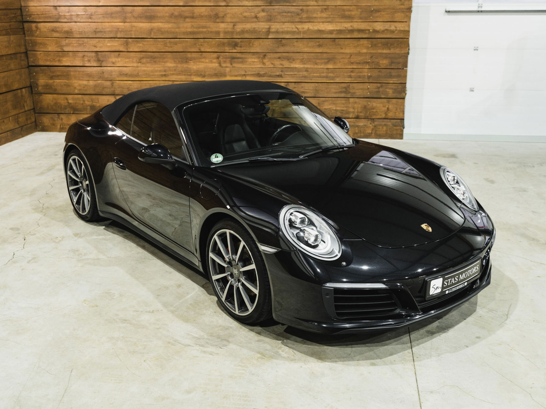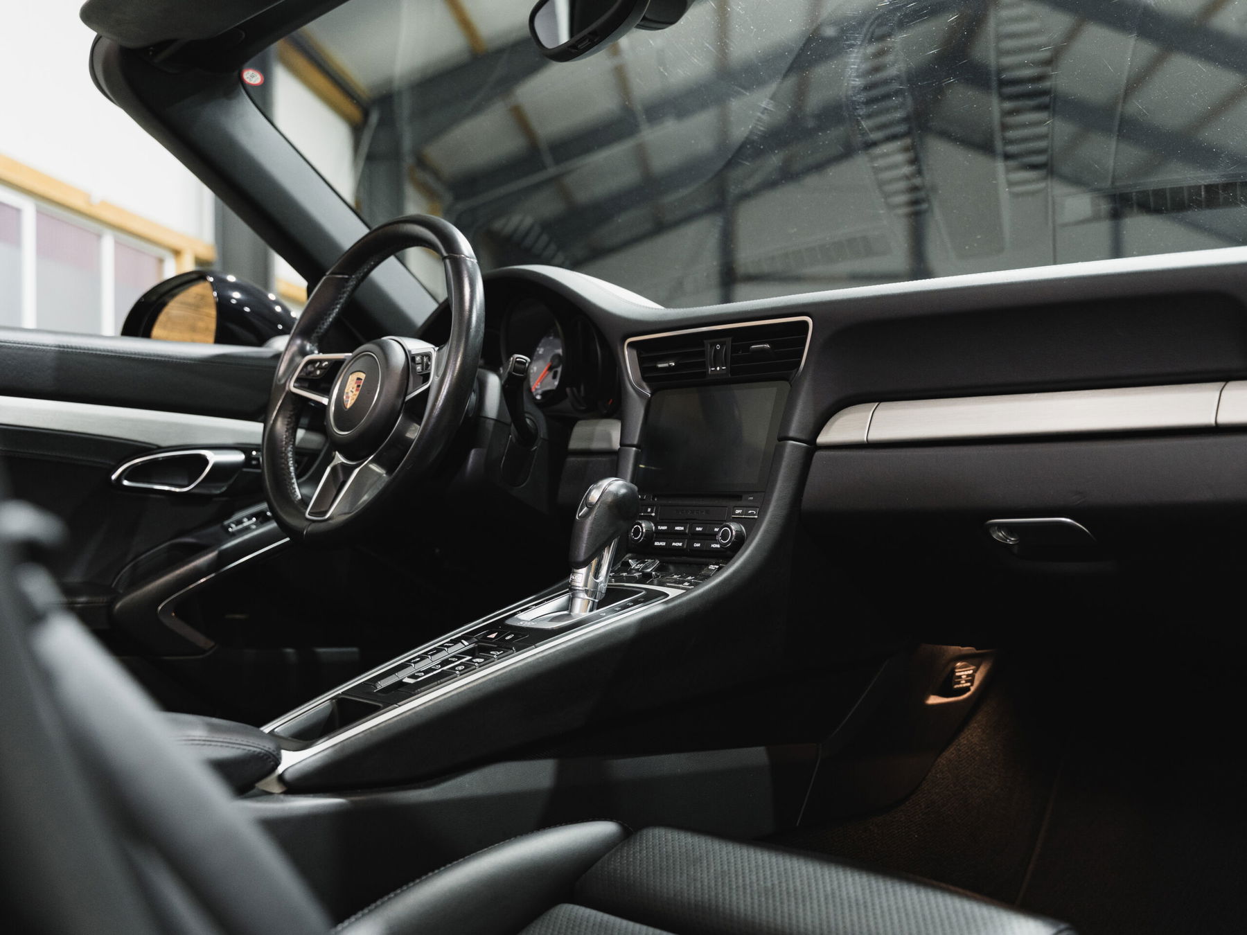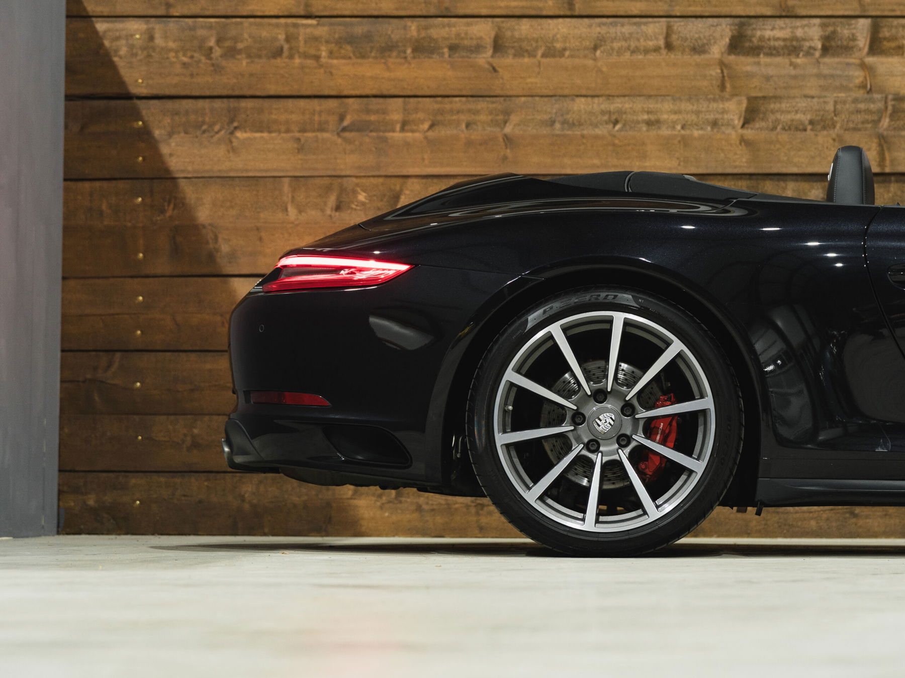 Driver/passenger airbags, anti-slip regulation (ASR), instrument displays with silver background, automatic braking differential (ABD), aspherical exterior mirror, left, electrically adjustable and heated exterior mirrors, both, LED turn signals, on-board computer, Red painted brake calipers, convertible, Connect Plus (Bluetooth, Apple CarPlay, Wi-Fi, vehicle tracking system), automatic headlight activation, driver assistance system: parking assistant, electric windows front and rear, cup holders, LED rear lights, heated rear window, rear spoiler, interior features: leather, Isofix attachments for child seats in rear seats, body: 2-door, automatic climate control, head airbag system Porsche Side Impact Protection System (POSIP), front head-shoulder airbags (thorax airbags), steering wheel (sport/leather, 3-spoke), adjustable steering column (steering wheel), illuminated rear-seat vanity mirrors, model update, 3.0 L engine – 309 kW catalytic converter, engine drag torque regulator (MSR), rear fog light, electric parking brake, Porsche Active Suspension Management (PASM), Porsche Communications Management (PCM) incl. DVD – navigation module (extended), tire repair kit, tire pressure monitoring system, low emissions in accordance with Euro 6 emissions standard, front side airbags, sun visors with mirrors (illuminated), start/stop system, electric soft top, tinted windows, wind deflector, electric wind deflector