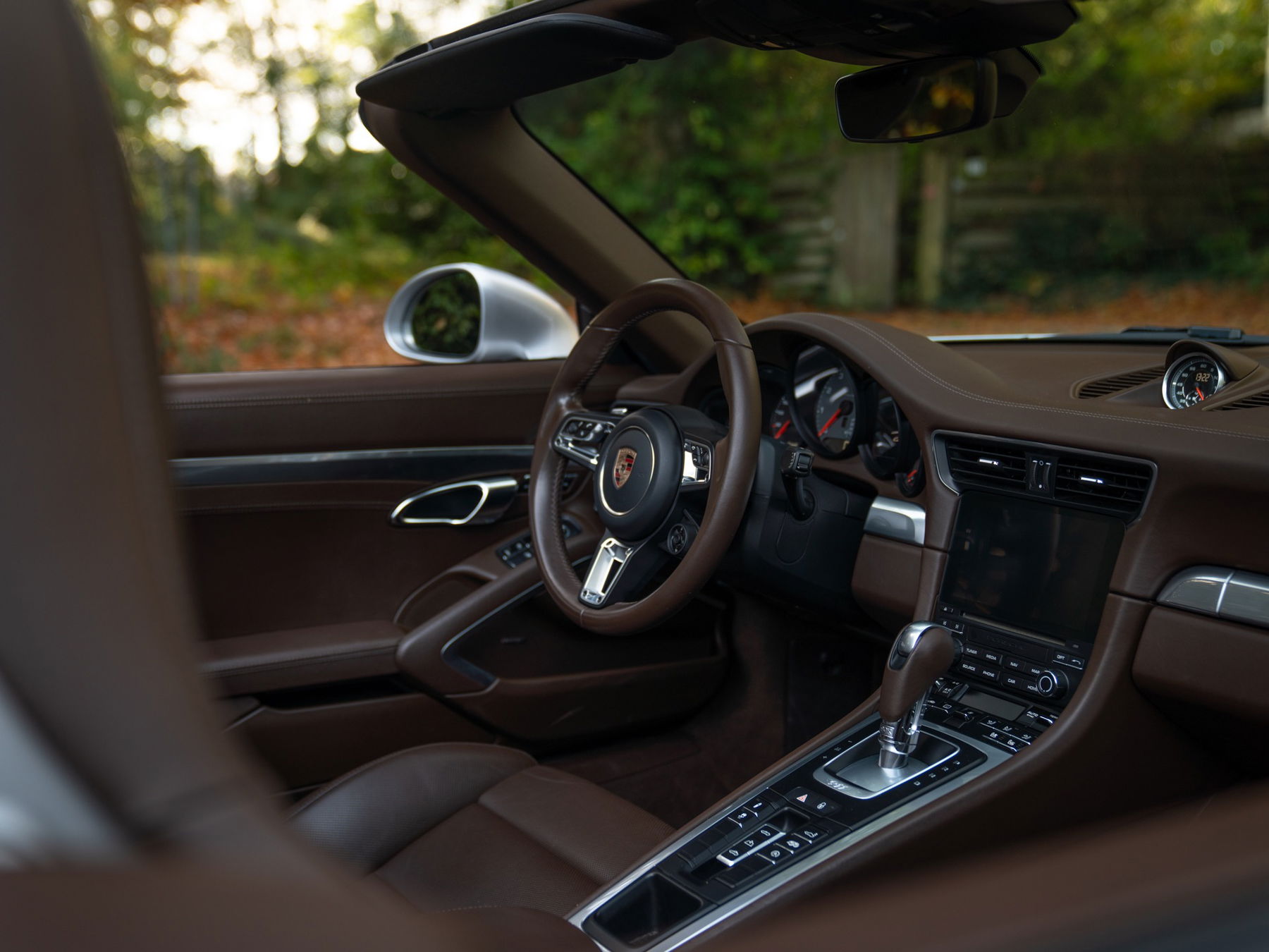 Less content, more power; that’s what Porsche was aiming for when it introduced the first turbo engines on a non-Turbo 911. In combination with the four-wheel drive Carrera 4S, no less than 420 hp and 500 Nm are squeezed out of the 3.0-liter 6-cylinder boxer engine. Enough for a 0-100 km/h sprint in 4.2 seconds and a magical top speed of 301 km/h. What if we told you that this 991.2 is just as impressive in corners as it is in a straight line? The thrill of driving a convertible has rarely been so great!