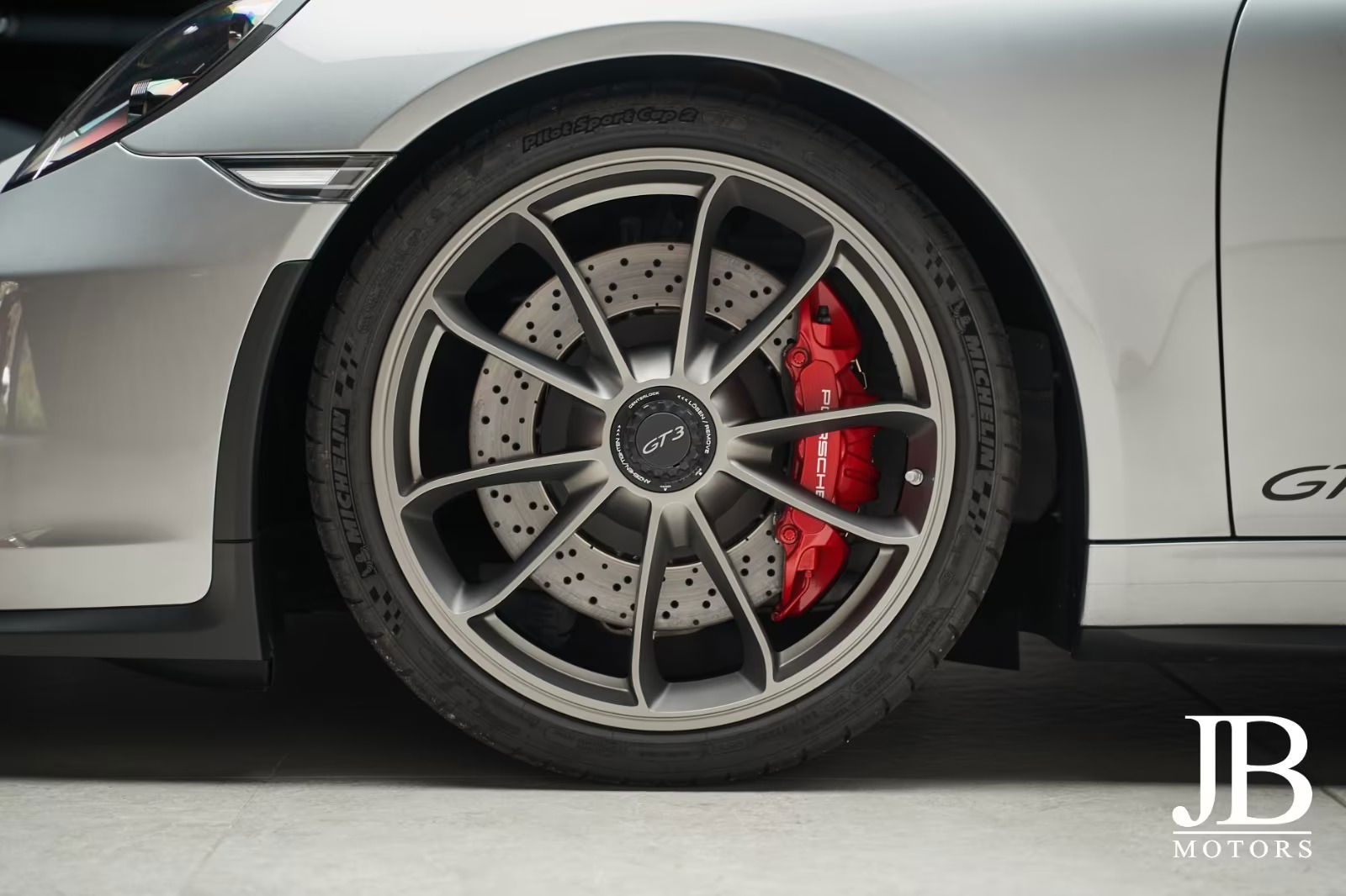 Driver/passenger airbags, anti-slip regulation (ASR), drive type: Rear-wheel drive, Porsche CDR 31 audio system (radio/CD player), Automatic Braking Differential (ABD), Aspherical exterior mirror, left, Electrically adjustable and heated exterior mirrors, both, Sport Design exterior mirrors, LED turn signals, On-board computer, Red painted brake calipers, Connect Plus (Bluetooth, Apple CarPlay, Wi-Fi, vehicle tracking system), Alcantara headliner, automatic headlight activation, adjustable chassis for motorsports, 6-speed transmission Sport, cup holders, GT3, LED rear lights, tinted, heated rear window, rear spoiler, body: 2-door, automatic climate control, head airbag system Porsche Side Impact Protection System (POSIP), front head-shoulder airbag (thorax bag), steering wheel (Alcantara 3-spoke) with shift function, steering wheel (GT Sport – leather) with shift function, adjustable steering column (steering wheel), alloy wheels, illuminated rear-seat vanity mirrors, model update, 4.0-liter engine – 368 kW KAT, engine drag torque regulator (MSR), electric parking brake, Porsche Active Suspension Management (PASM), Porsche Communications Management (PCM) incl. Online – navigation module, Porsche Torque Vectoring Plus (PTV Plus), wheel hubs with central locking, tire repair kit, tire pressure monitoring system, low emissions in accordance with Euro 6 emissions standard, gearshift/selector lever handle in Alcantara/Race-Tex, front side airbags, sports exhaust system, black tailpipes, Sports Seats Plus – painted backrests, voice control for PCM, universal audio interface, vehicle tracking system (PVTS), tinted glass, pre-installation for mobile phone/cell phone with Bluetooth interface