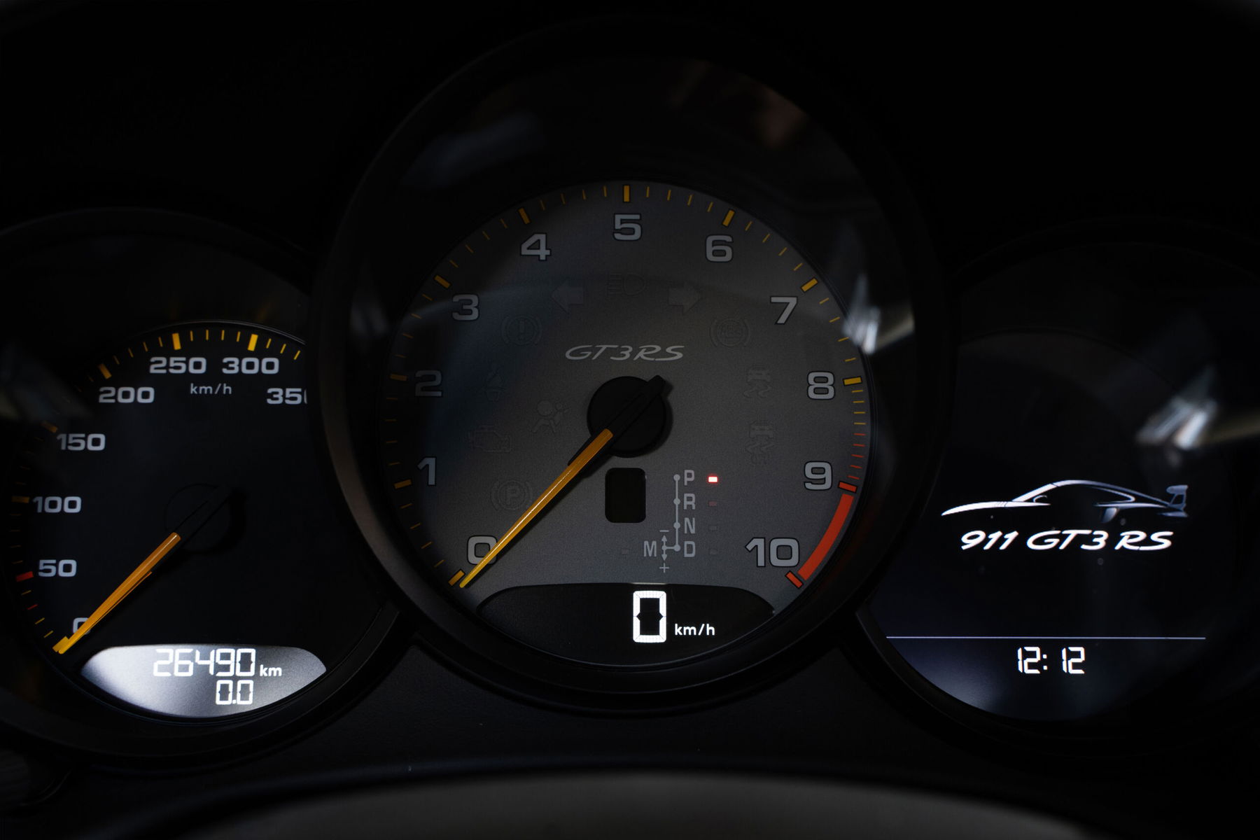 Powered by the 4.0-liter flat-six delivering 520 horsepower at a spine-tingling 9,000 rpm, the GT3 RS (991.2) combines relentless performance with the usability that defines the modern 911. The PDK transmission ensures lightning-fast shifts, while the aerodynamically optimized bodywork and rear wing contribute to exceptional downforce and stability.