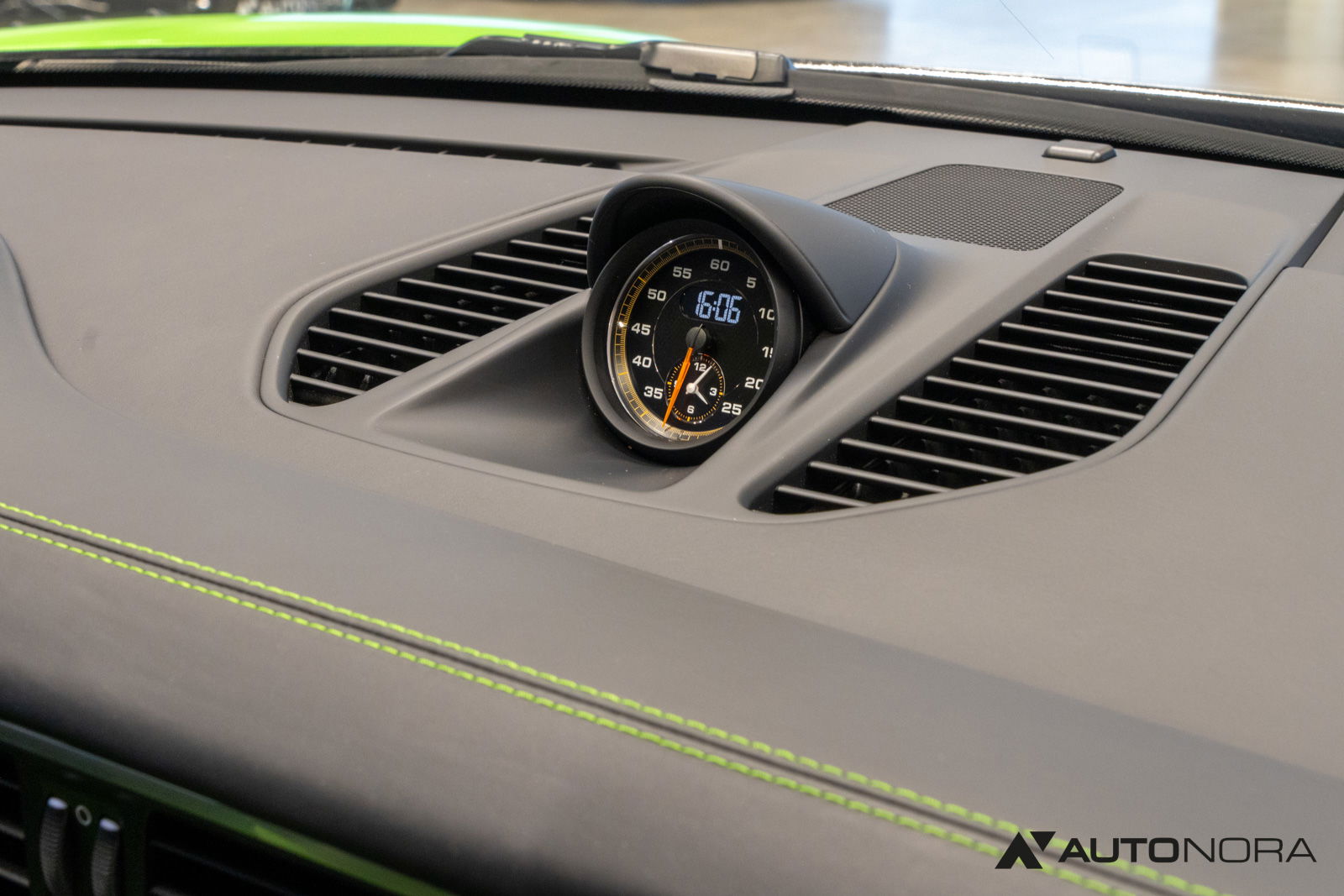 140 Dynamic engine mounts (PADM), 221 Porsche Torque Vectoring Plus (controlled differential lock), 250 7-speed Porsche dual-clutch transmission, 918 Spyder full bucket seats, 470 rear-axle steering, 475 Porsche Active Suspension Management PASM including 10 mm lowering, 534 alarm system with interior monitoring, 567 windshield with gray tint, 573 2-zone automatic climate control, 594 Alcantara headliner, 7I0 VTS Security Pack including Porsche Car Connect, 7UG navigation module for PCM, 887 steering wheel rim with 12 o'clock marking in yellow, 9WT Apple CarPlay including Siri voice control, 9ZC smartphone storage, I8L Porsche Communication Management (PCM) including online navigation, XGB carbon trim on the dashboard, XHM carbon trim on the center console, XJW SportDesign carbon exterior mirror caps, XWC carbon trim on the door panels, XXP darkened rear lights, XYB aluminum-look fuel filler cap