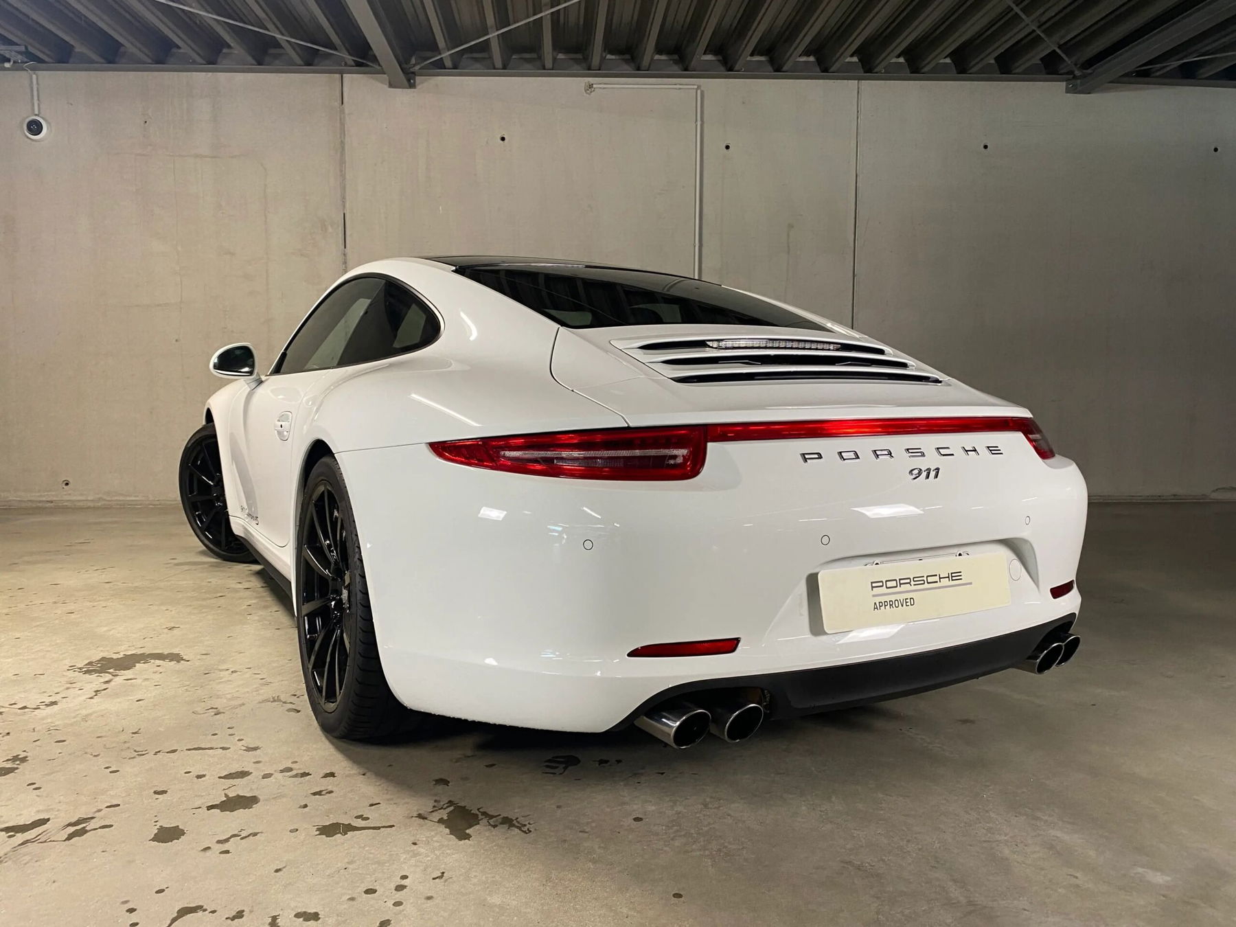 Exterior: Black bi-xenon headlights including Porsche Dynamic Light System (PDLS), Porsche Entry & Drive, "911" lettering, ParkAssist front and rear, exterior mirror housings painted, windshield with gray tint, privacy glazing (rear side windows and rear window), automatically dimming interior/exterior mirrors with integrated rain sensor, power folding exterior mirrors, electric sliding/tilting glass roof, model designation on doors in black
