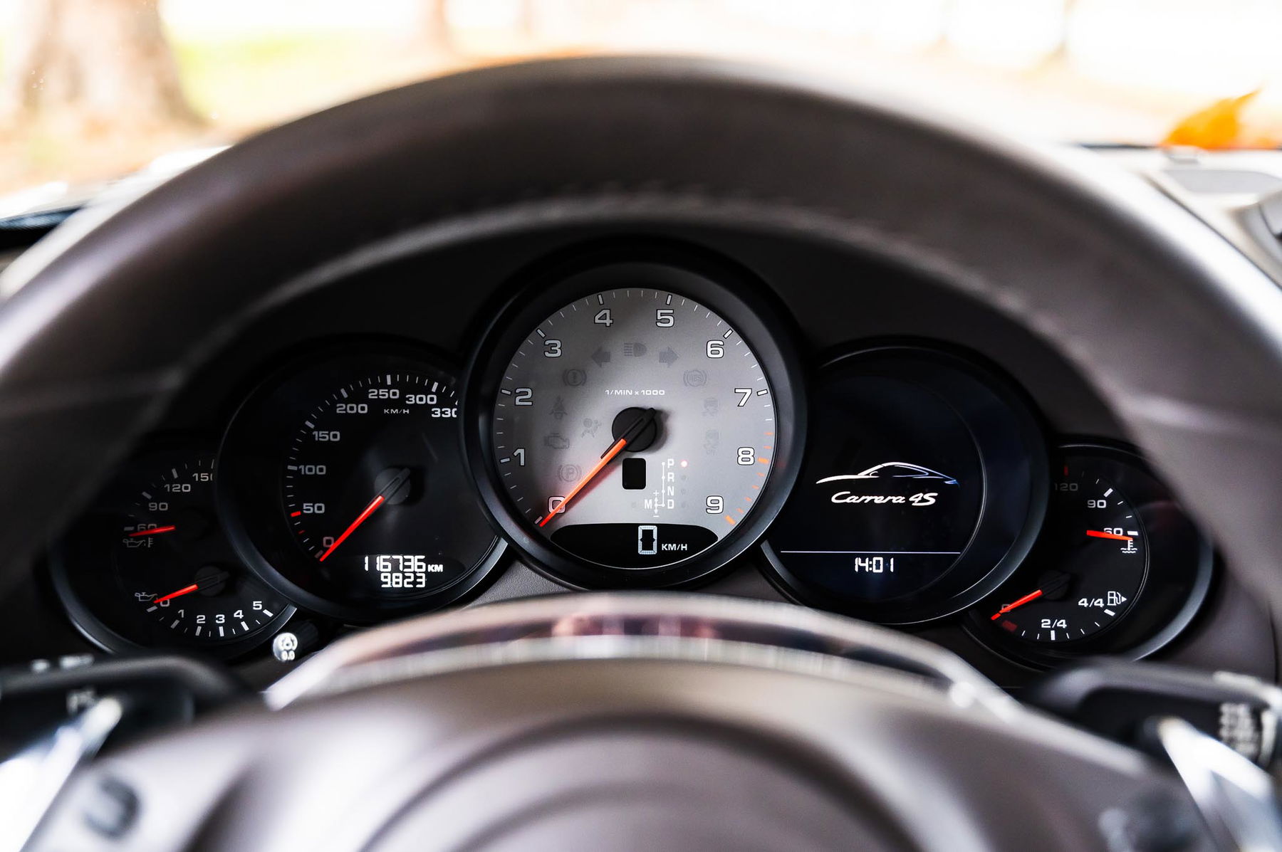 257 Manually folding exterior mirrors, automatically dimming and memory function – 636 Front and rear parking aid – 340 Alloy wheels painted in base colour – 674 Pre-installation for Vehicle Tracking System – 170 Acoustic package RDW – 454 Cruise control – 594 Alcantara headliner – 601 Xenon headlights – 276 Automatically dimming interior mirror – 844 Multifunctional steering wheel in smooth leather – 656 Steering column electrically adjustable for length and height with memory function – 672 -2008 PCM 2, 2009- PCM 3 navigation offroad. – 023 Instrument cluster dials in silver – 025 Stopwatch dials in black – 070 Pedestrian protection – 140 Dynamic Engine Mounting (PADM) – 176 Sports exhaust system – 221 PTV plus, controlled differential lock – 225 Belgium version – 250 PDK transmission (dual clutch) – 265 Interior mirror with automatic anti-glare function – 268 Rain sensor – 288 Headlight cleaning system – 321 Sports seat, left, electric, 14-way – 322 Sports seat, right, electric, 14-way – 335 Automatic 3-point seat belts, rear – 475 Electric damper control ‘PASM’ – 521 Tilt sensor – 534 Anti-theft system 433 MHz – 536 -07 Alarm siren and tilt sensor 08- Alarm siren – 555 Seat belts in black – 573 Air conditioning – 610 DVD navigation ‘Europe package’ – 619 Mobile phone preparation (BLUETOOTH) without console – 621 12 V socket, passenger side, footwell – 640 Sport Chrono Package Plus – 651 Extending sliding roof – 658 Servotronic – 665 -2008 PCM 2, 2009- PCM 3 basic module incl. radio. – 679 Immobiliser – 680 BOSE sound package 870 Universal multimedia interface – 936 Rear seat upholstery, leather – 981 Leather interior, without seat upholstery – 983 Front seat upholstery, leather – 991 Airbag module in leather – 342 Seat heating, left and right – 642 Start/Stop function – 523 Driveaway lock, 434 MHz