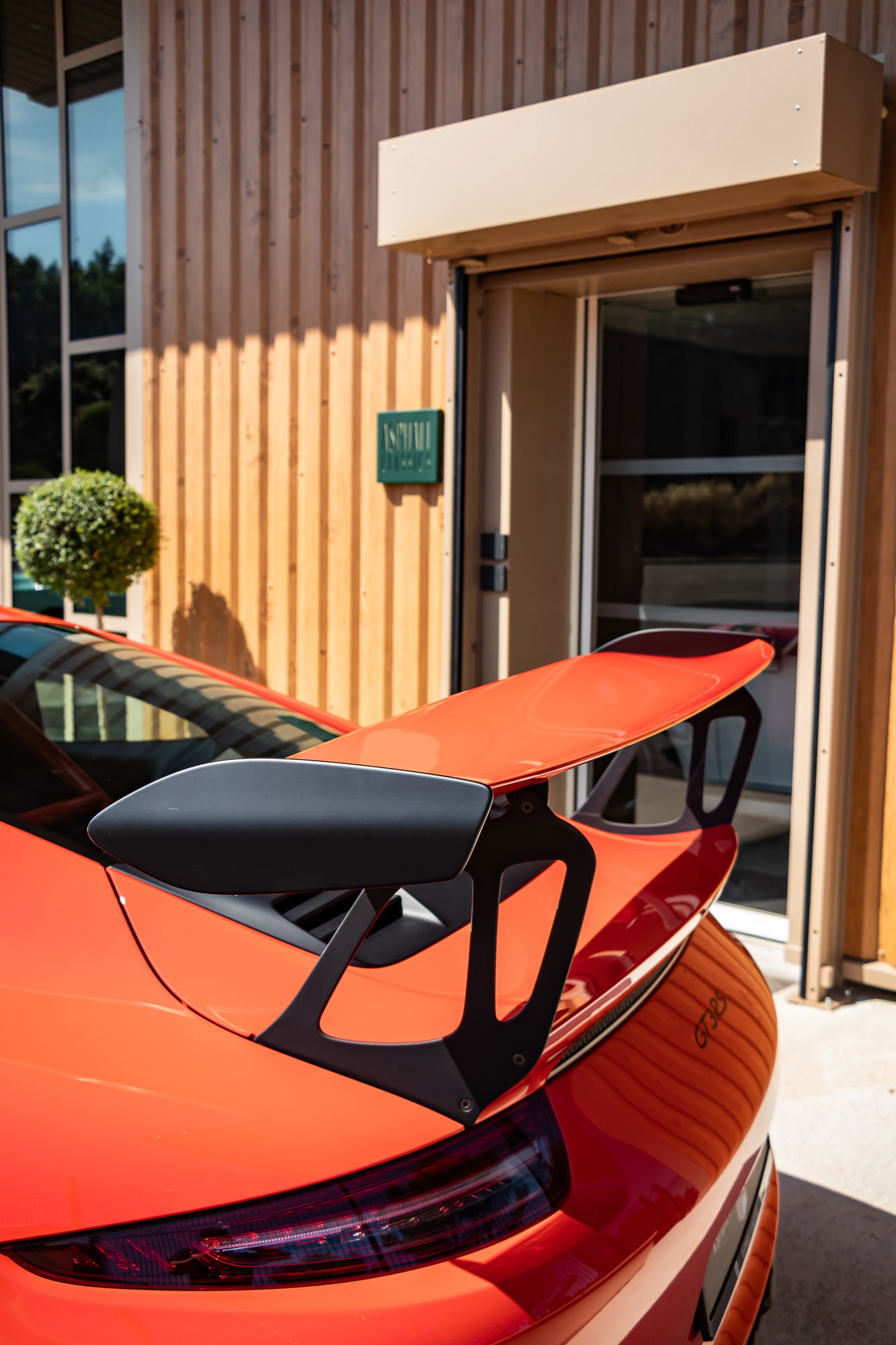 The Porsche 991.1 GT3 RS, produced between 2015 and 2016, embodies pure performance. Powered by a naturally aspirated 4.0-liter flat-six engine delivering 500 horsepower, it is exclusively paired with a PDK dual-clutch transmission, ensuring ultra-fast gear changes. Designed for the track yet homologated for the road, it stands out with its advanced aerodynamics, imposing fixed rear wing, and widened fenders. Thanks to a sharpened chassis, razor-sharp steering, and lightweight construction using materials such as magnesium and carbon, the 991.1 GT3 RS delivers a truly radical driving experience.