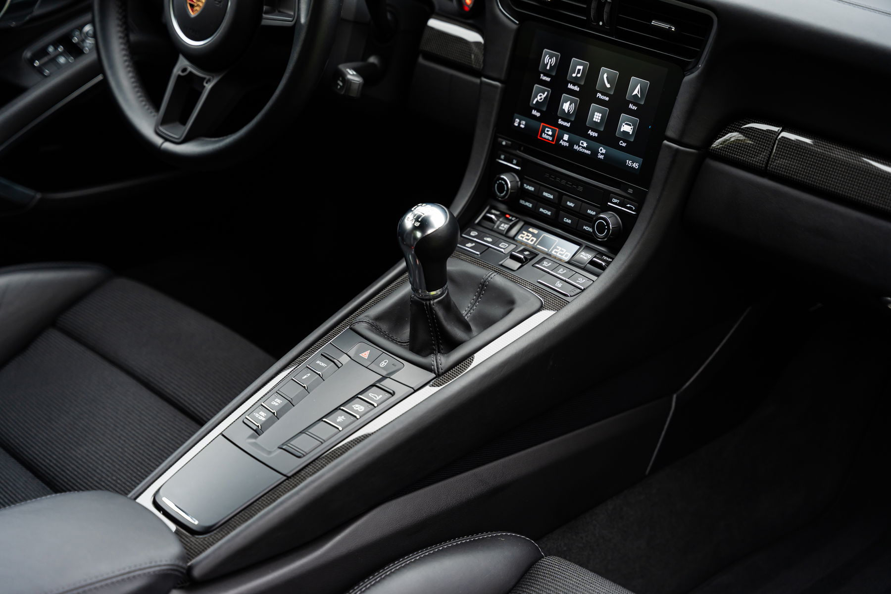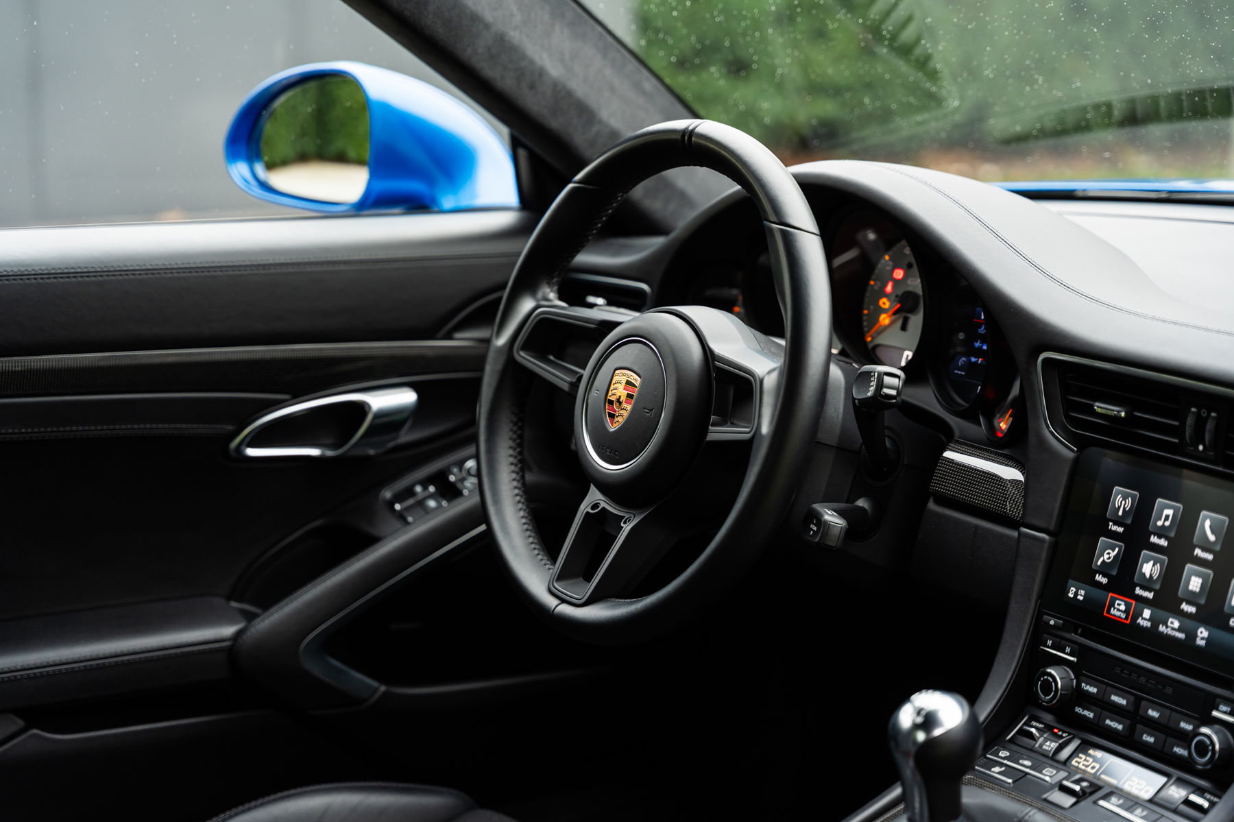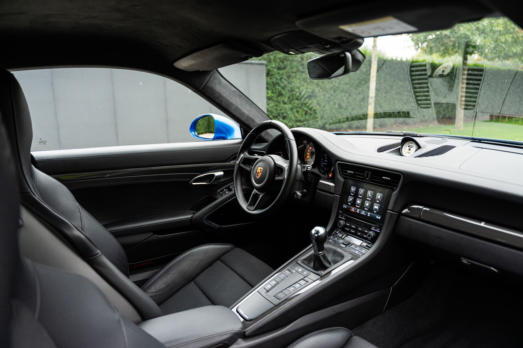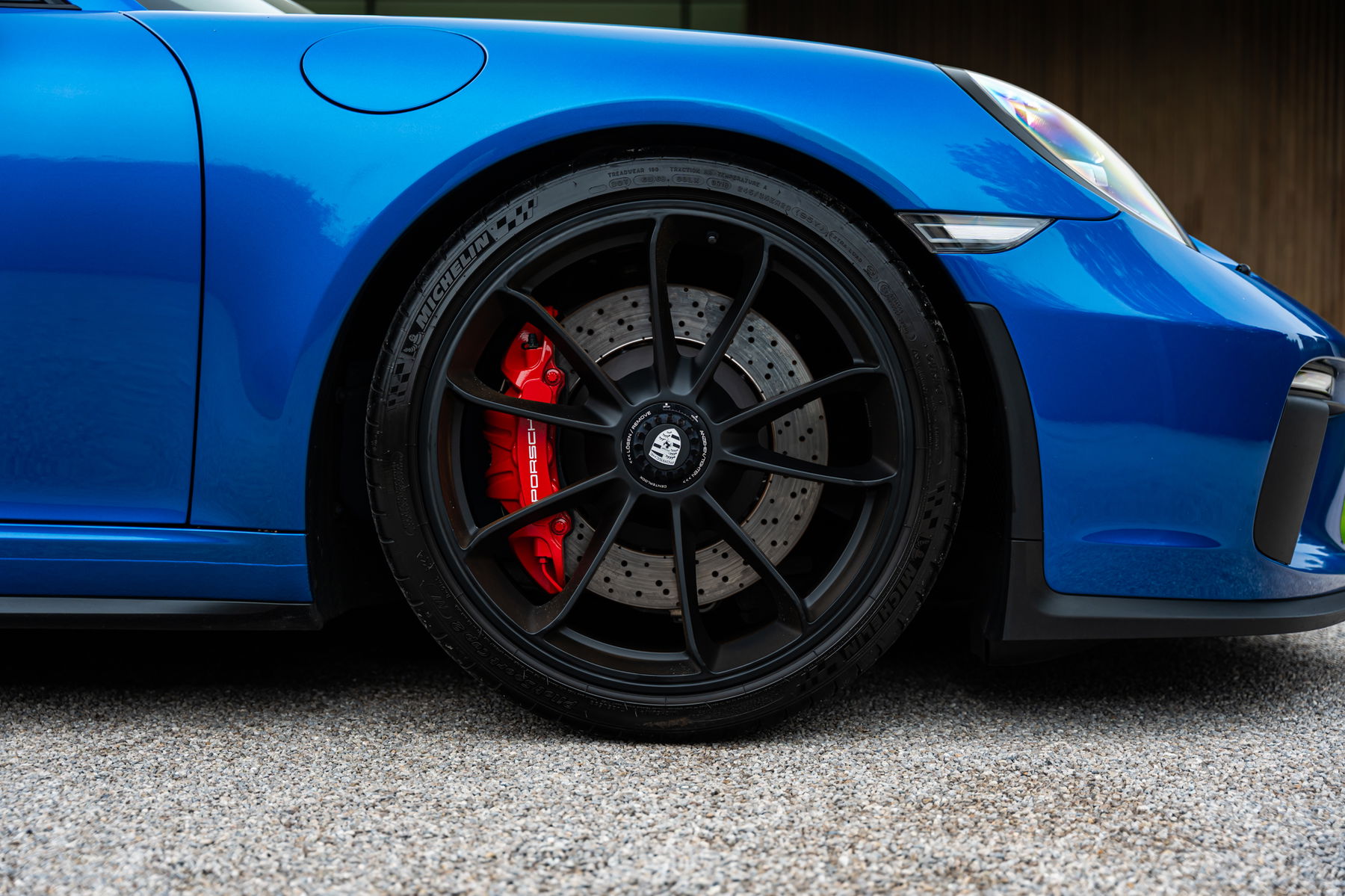 There are many people, especially designers and stylists, who don’t like the vulgar rear wing of the GT3 and prefer the classic side view of the 911 coupé as designer F.A. Porsche put it in the sixties. For the first time the GT3 is available without its huge rear wing. The 991 GT3 Touring version has the electrically erecting rear spoiler from the 991 Carrera, but with a Gurney flap on it to balance out the downforce created by the GT3 front spoiler.