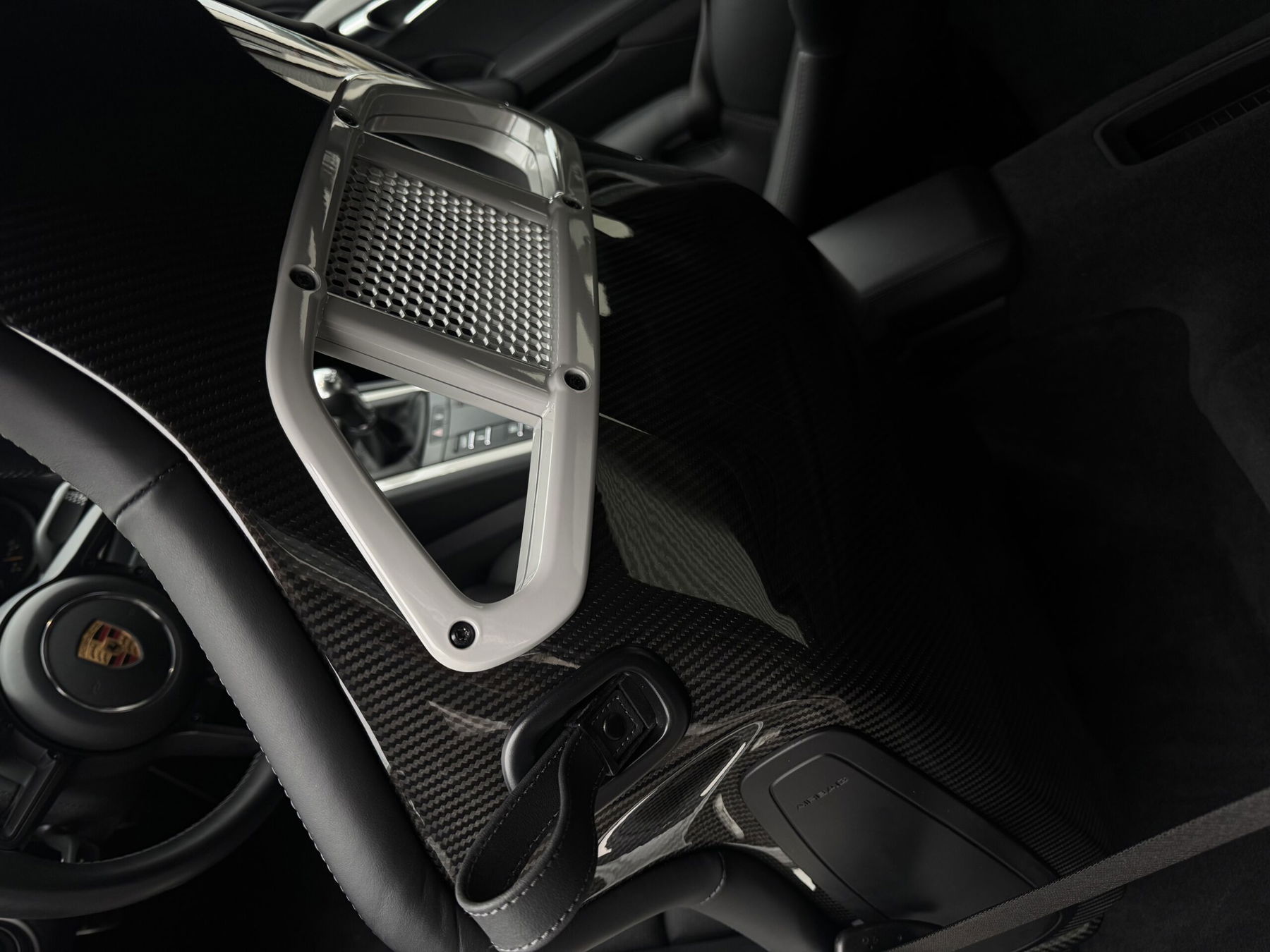 • CMT Painted chalk-colored sport seat belt guide