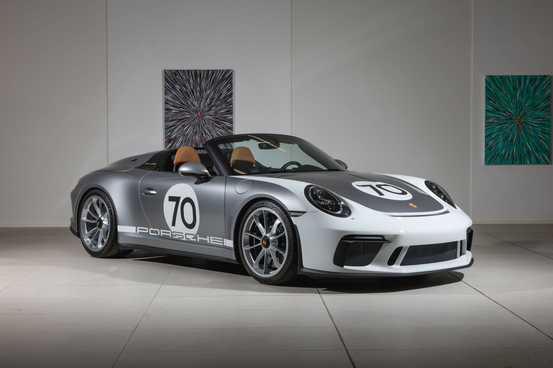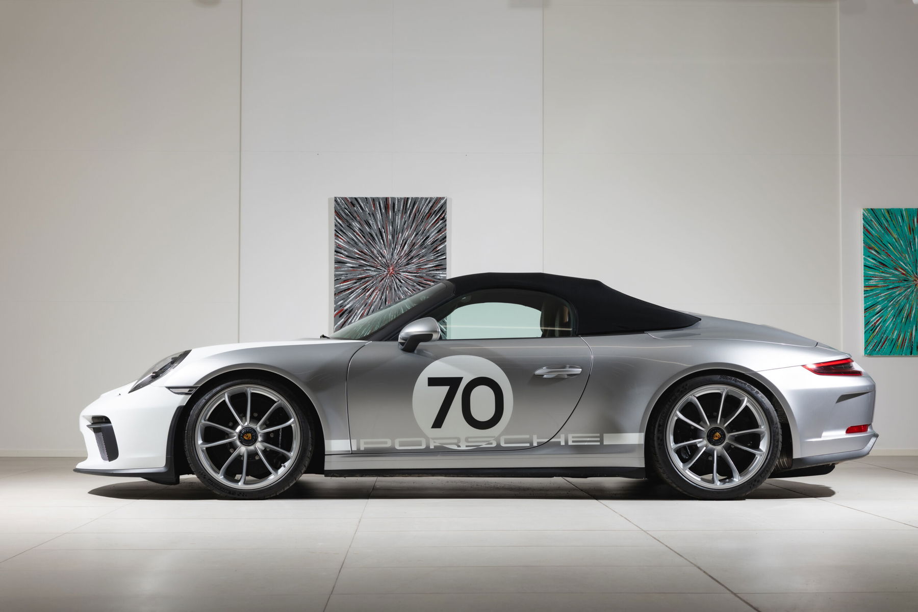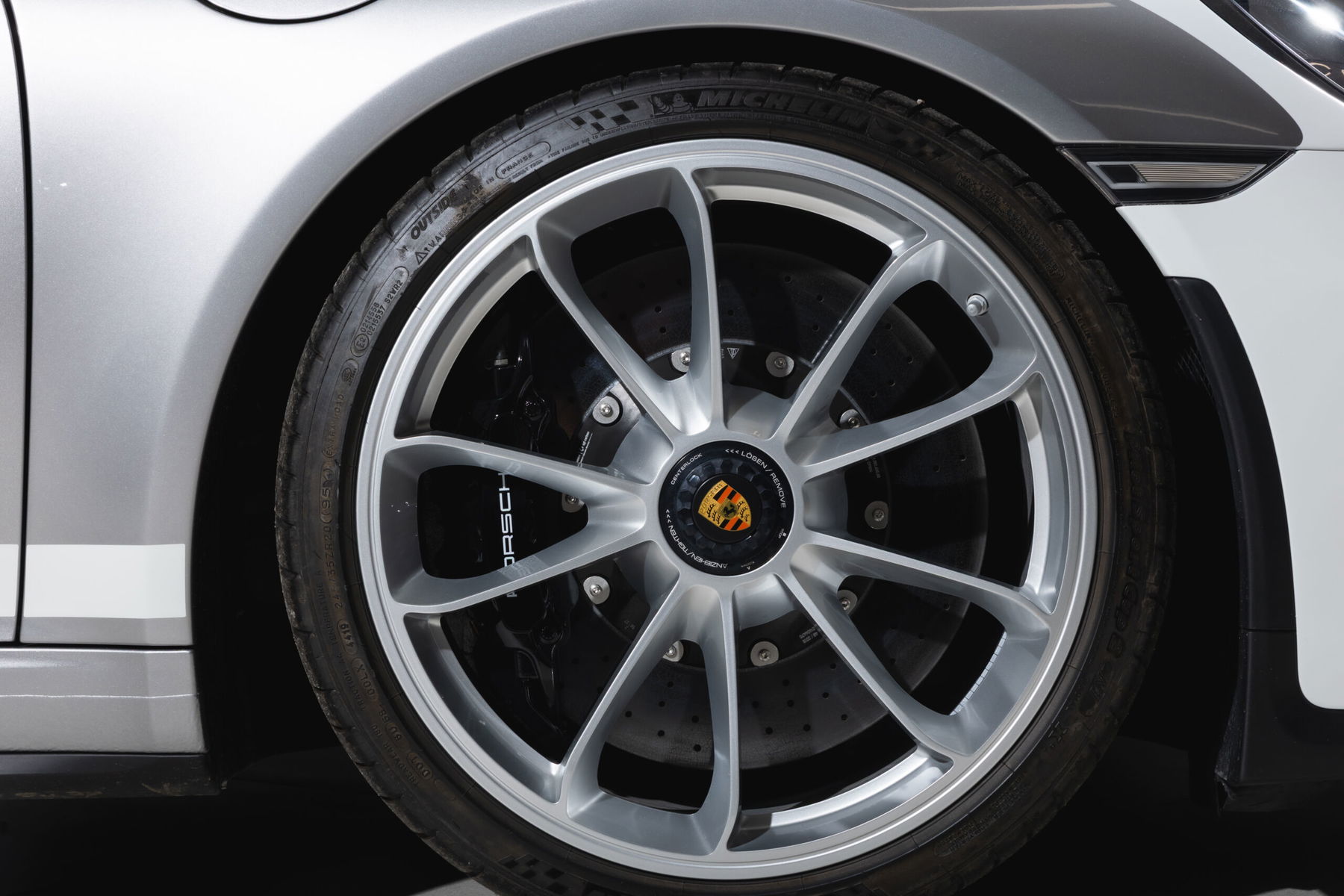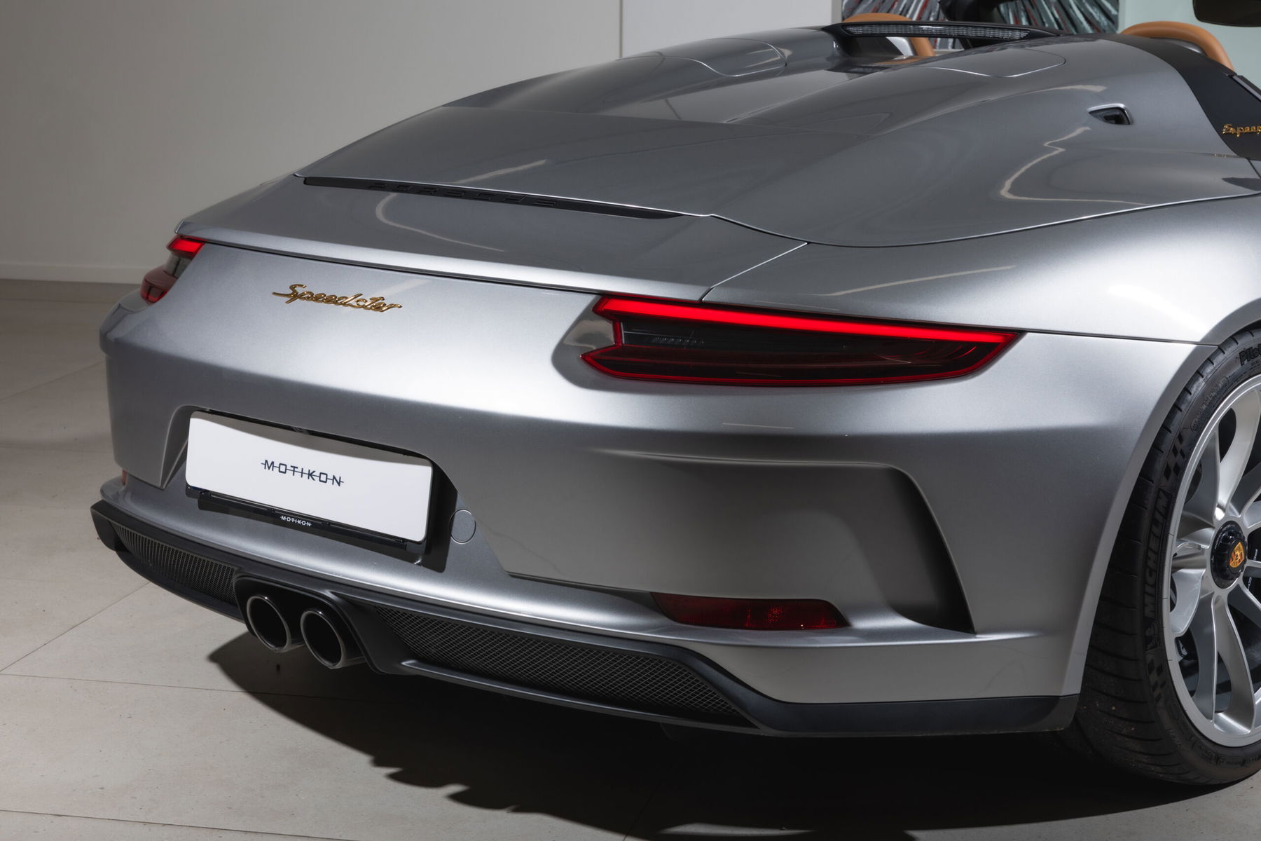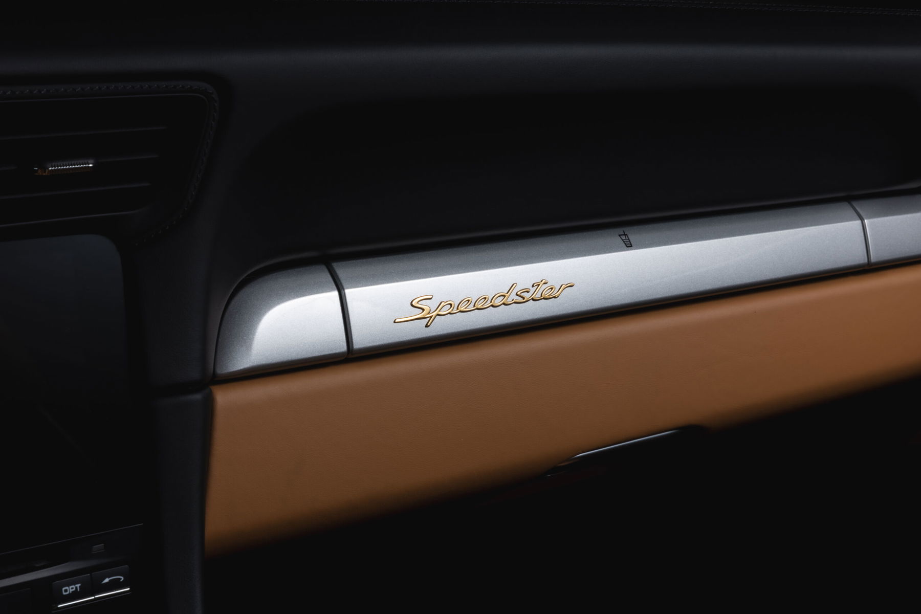 This example, number 1837 of the 1948 produced, was delivered new to the Swedish market via Porsche Center Helsingborg and has covered fewer than 1,900 km from new. It features the desirable Heritage Package, which includes GT Silver Metallic exterior paint with contrasting white front bumper and door roundels, historic Porsche crests and side scripts, gold “Speedster” badging, centre-lock wheels with classic crests, and black PCCB calipers with white “Porsche” lettering. Inside, it features the exclusive Black and Cognac leather Heritage interior with full bucket seats, embossed historic crests in the headrests, GT Silver interior trim, Cognac details on the steering wheel and centre console, plus the factory Heritage plaque denoting its place in the limited production run.