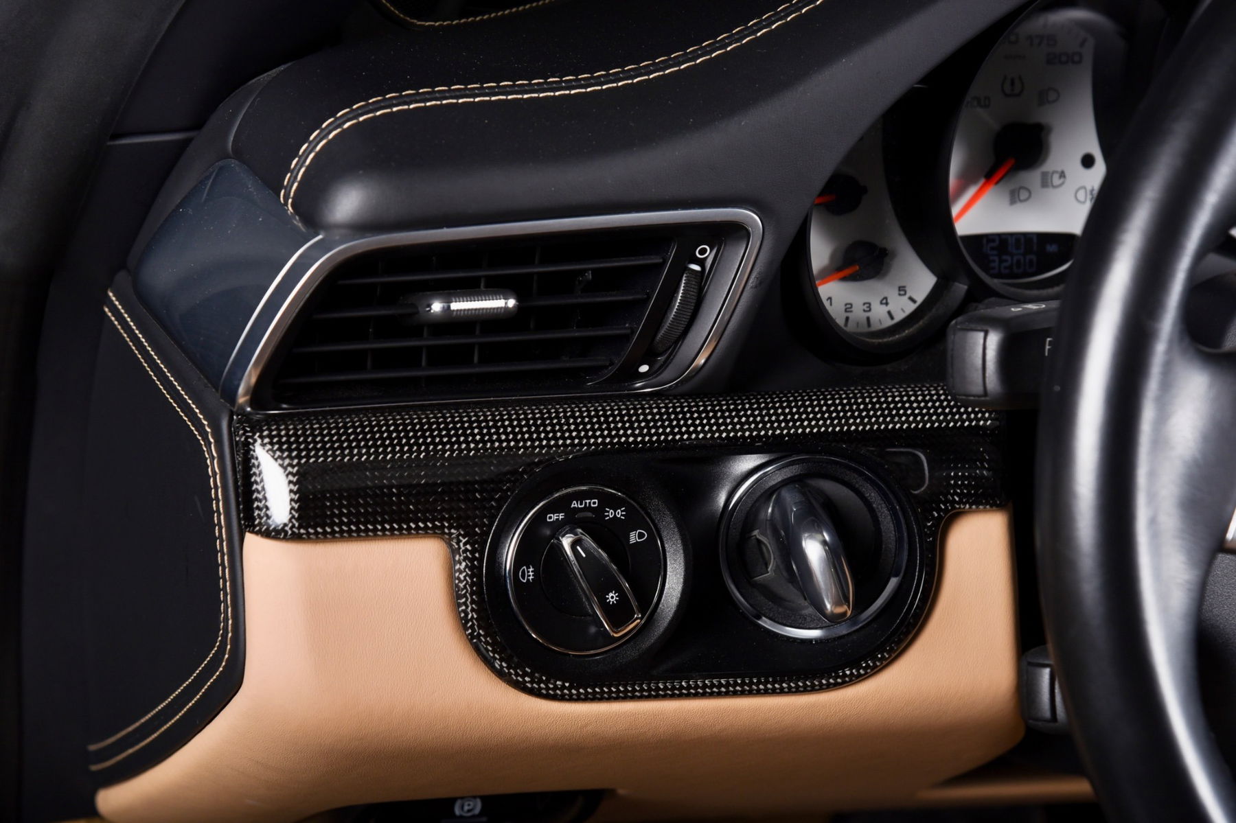 it exhibits an odometer reading of only 12,xxx miles and features the following equipment/factory-ordered options (original msrp of $174,895): sport exhaust system; porsche doppelkupplung (pdk); steering wheel heating; 20 carrera s wheels; wheel center caps with colored porsche crest; porsche ceramic composite brake (pccb); smoking package; led headlights incl. porsche dynamic light system plus (pdls plus); parkassist (front and rear) with reversing camera; sport chrono package; power steering plus; multifunction steering wheel; two-tone leather interior; leather interior in black/luxor beige; carbon fiber interior package i.c.w. leather interior & pdk; dark blue metallic; power sport seats (14-way) with memory package; premium package plus i.c.w. power sport seats (14-way); bose audio package; carrera s powerkit; instrument dials in white; center console trim in leather; seat belts in luxor beige; wheel spacers, 5 mm; headlight cleaning system covers in exterior color.