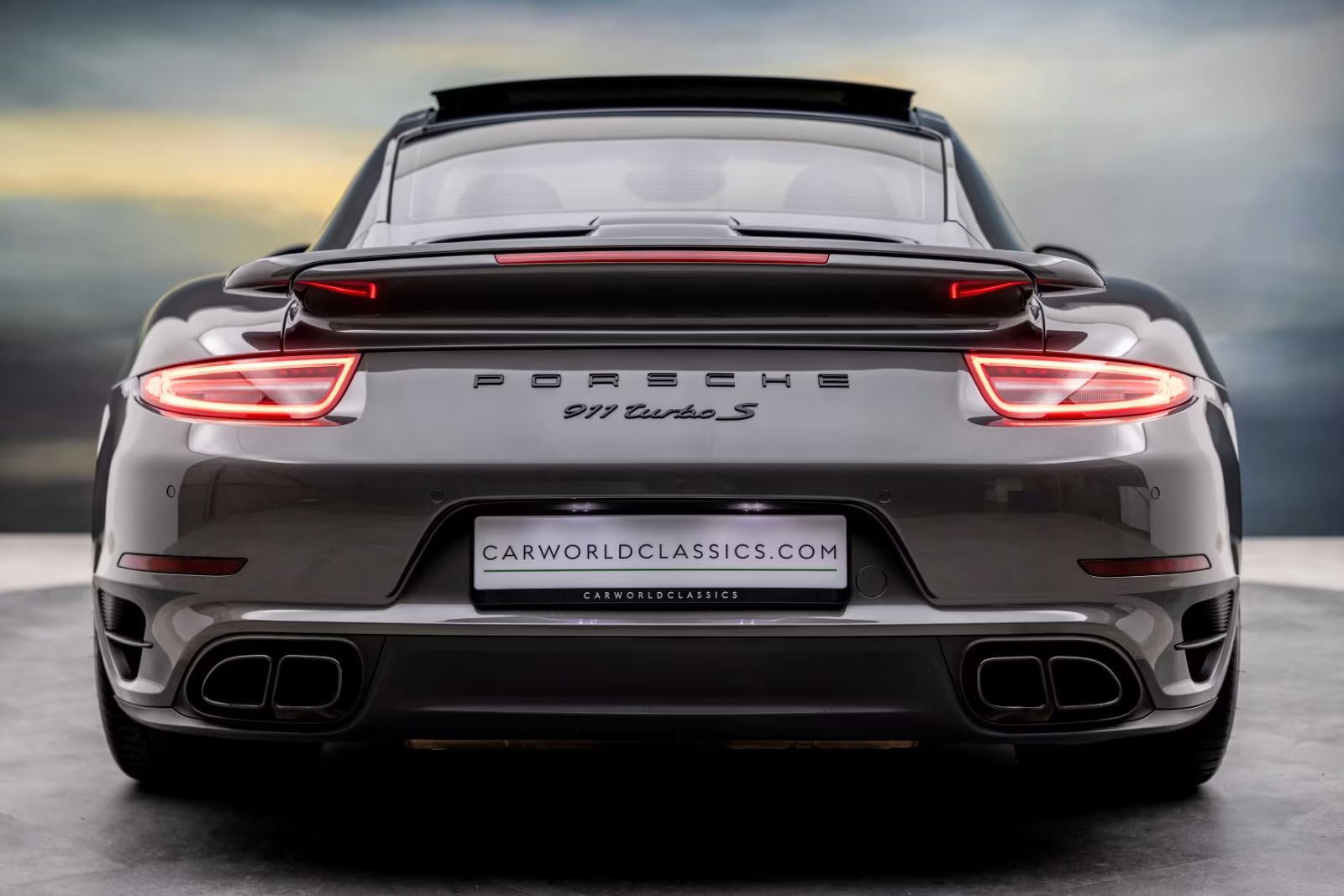 Very well-maintained Porsche 991 3.8 Turbo S Coupe PDK 560 hp in agate gray metallic with black full leather interior. Full service history from Porsche Center.