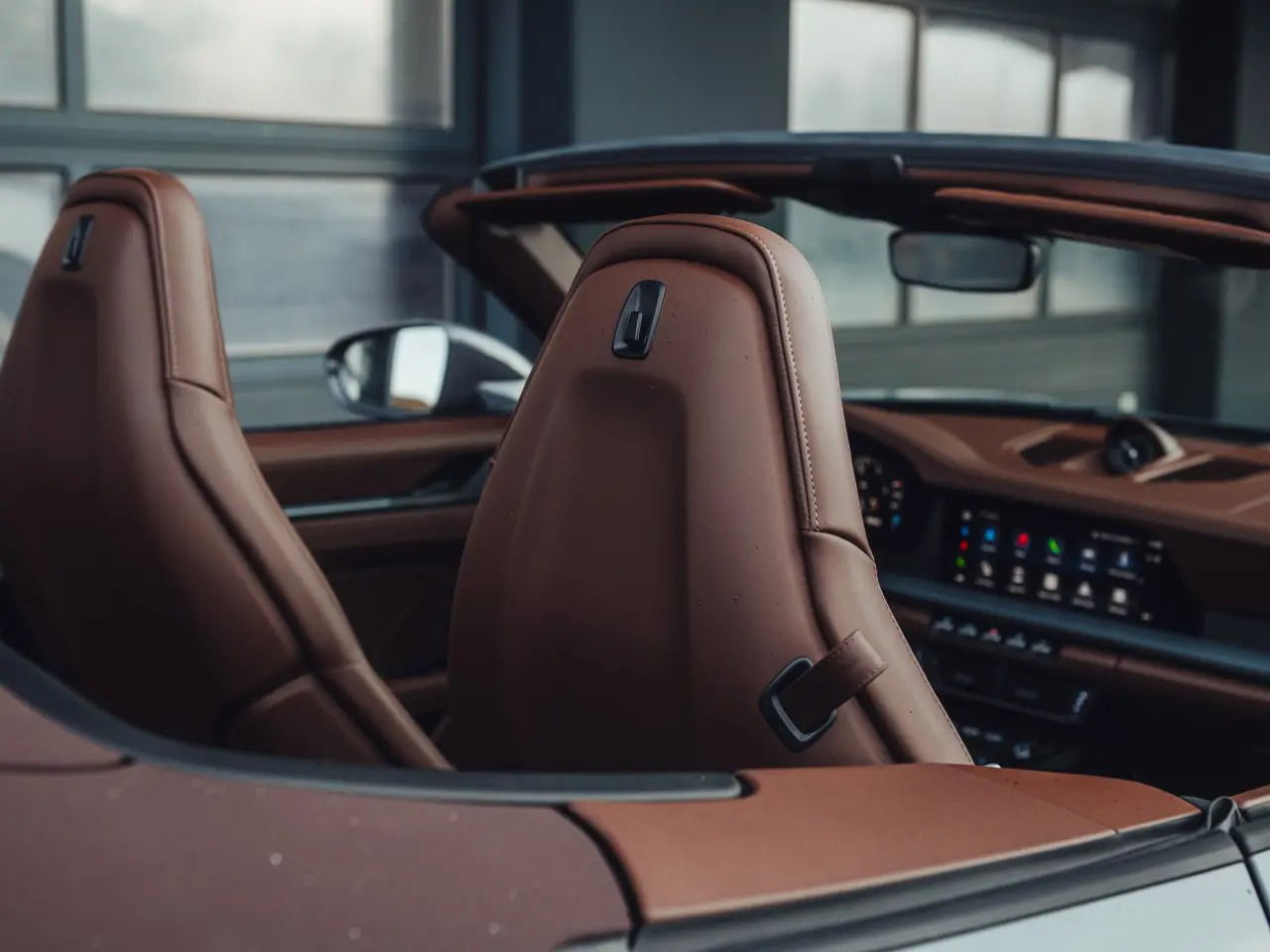 Interior: Sports seats (14-way, electric) with memory package, heated GT sports steering wheel in leather, front seat ventilation, interior package in vehicle color with black accents, Porsche crest on front headrests, leather steering wheel (in conjunction with memory package), storage net in front passenger footwell