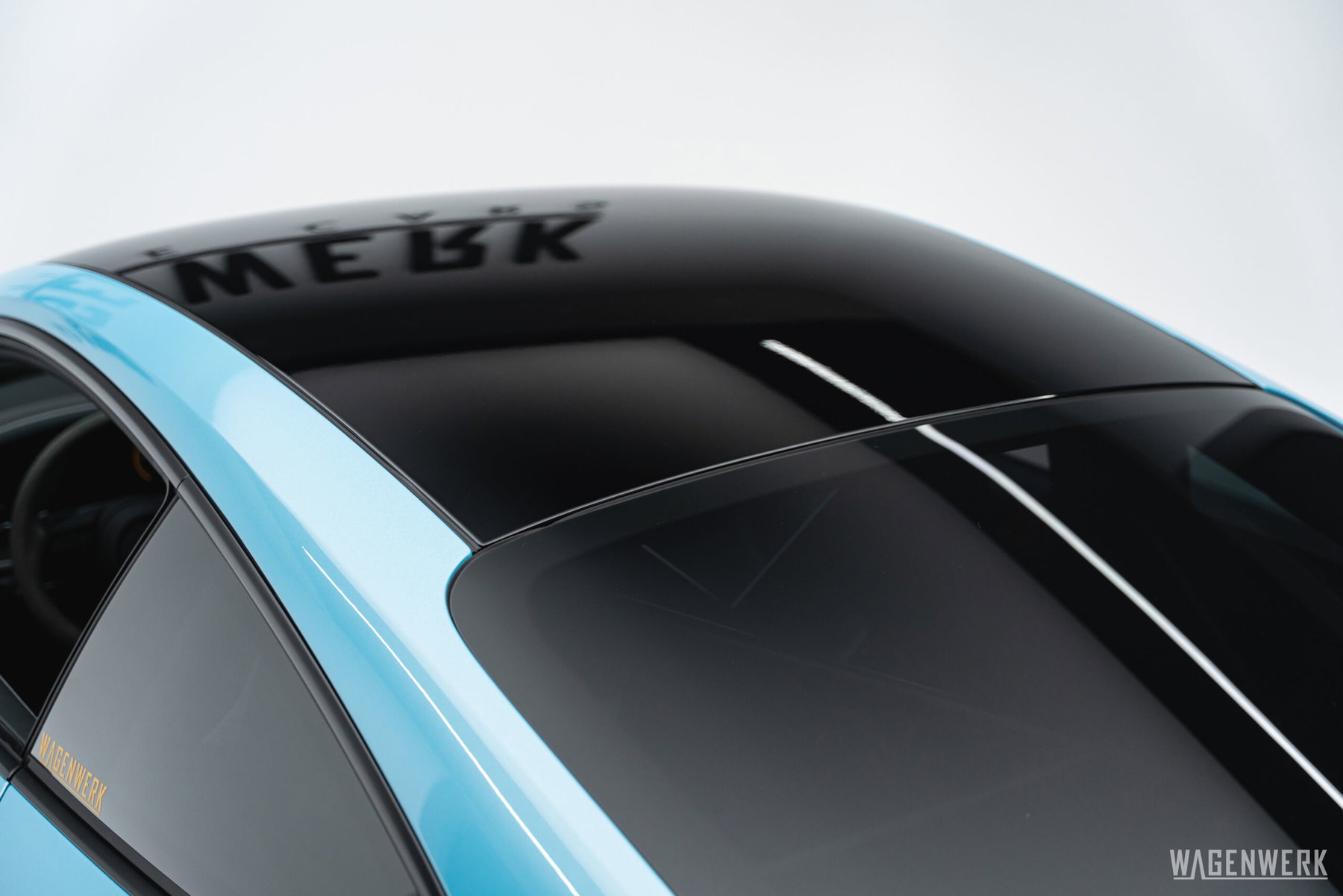 Visually: a statement. Original color black, currently wrapped in PTS Frozen Blue Metallic – spectacular in appearance, immaculate in new-car condition underneath.