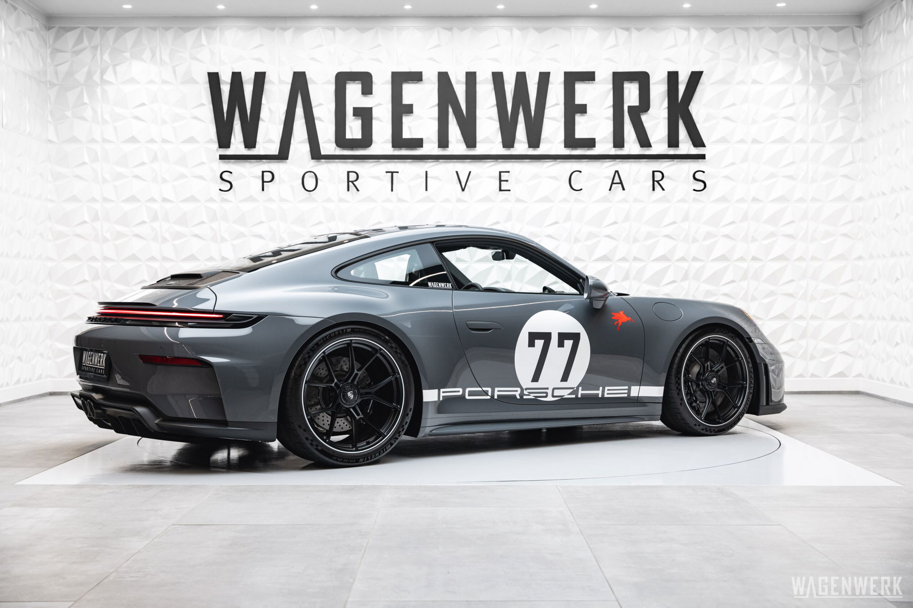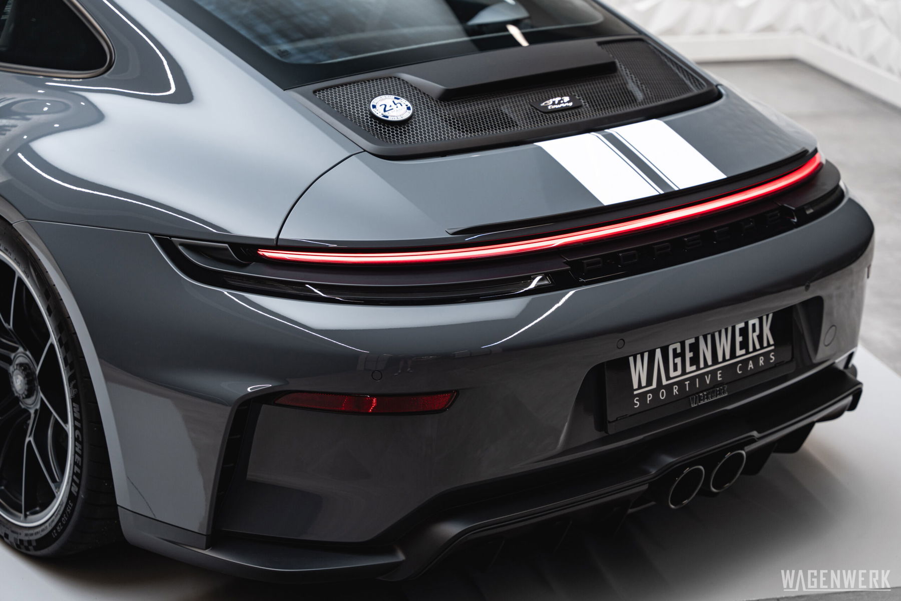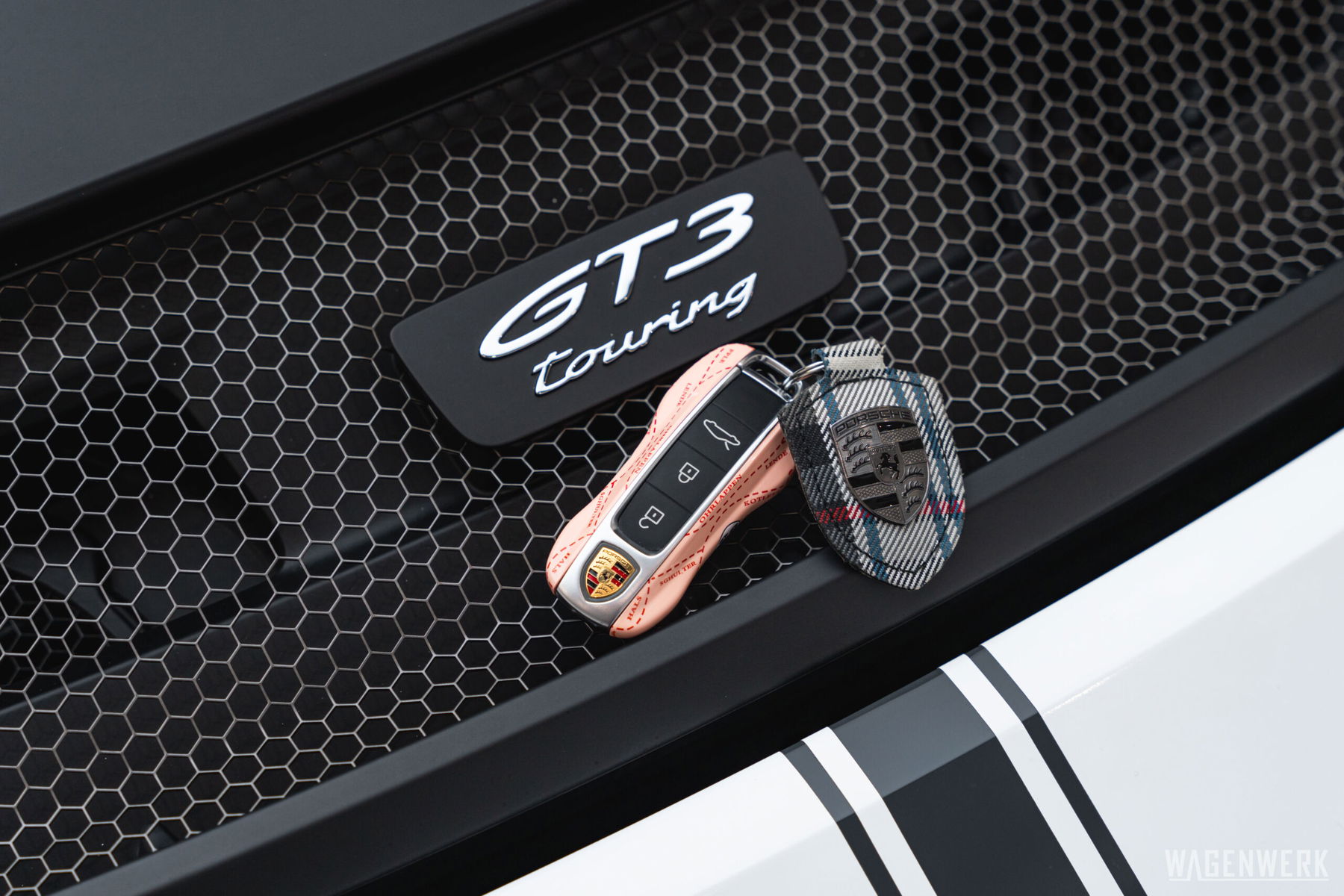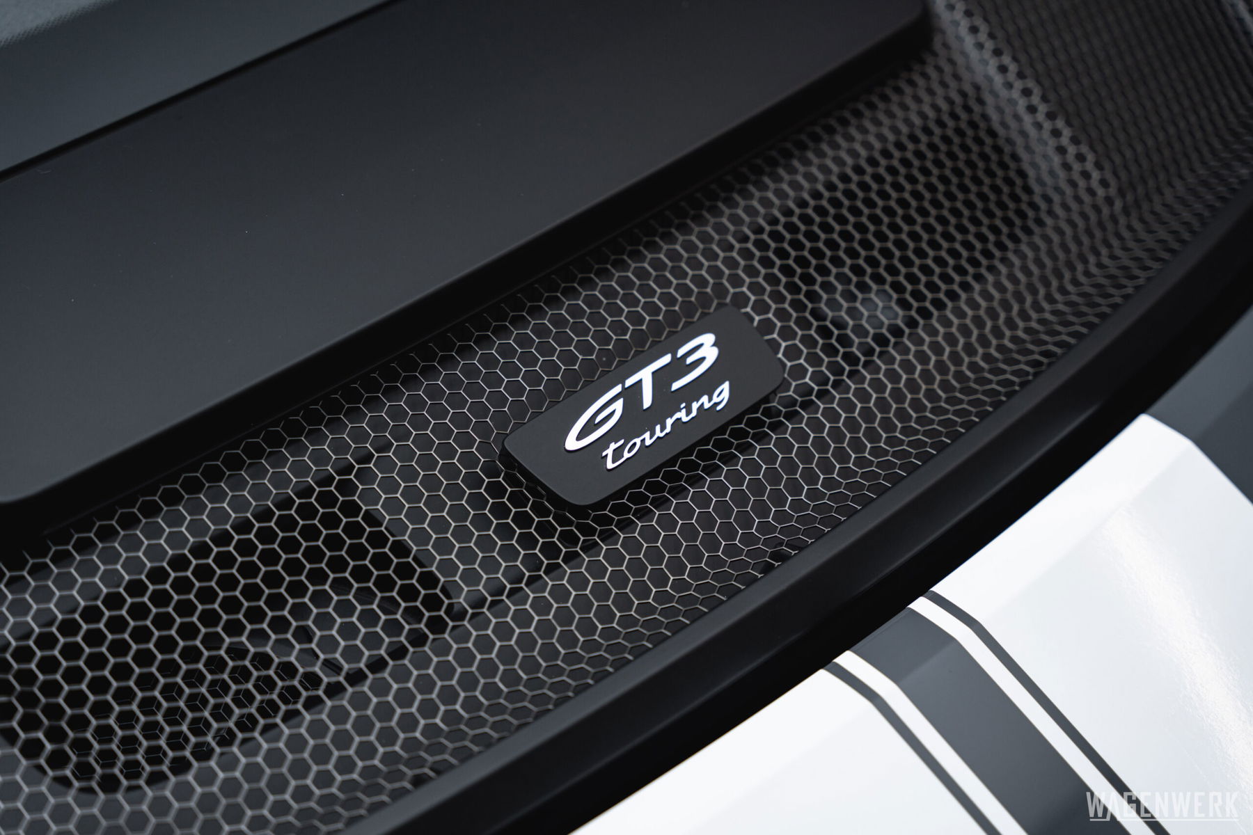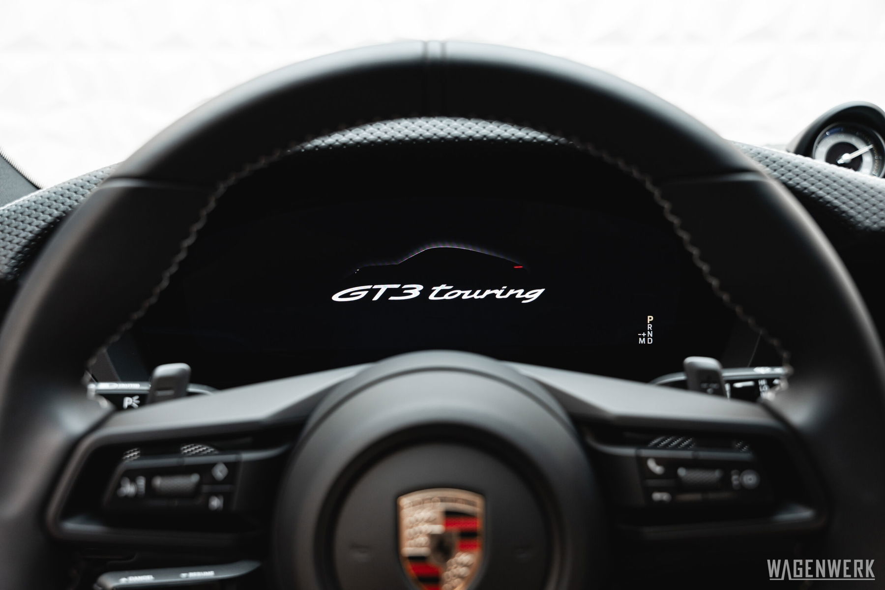 Our GT3 Touring is presented in the exclusive Slate Grey Neo color - a shade of grey with a history that combines perfection, elegance and sportiness in a unique way. Combined with subtle striping and white wheel accents, the result is a harmonious overall concept that redefines understatement.