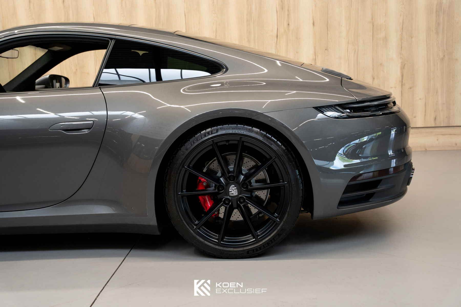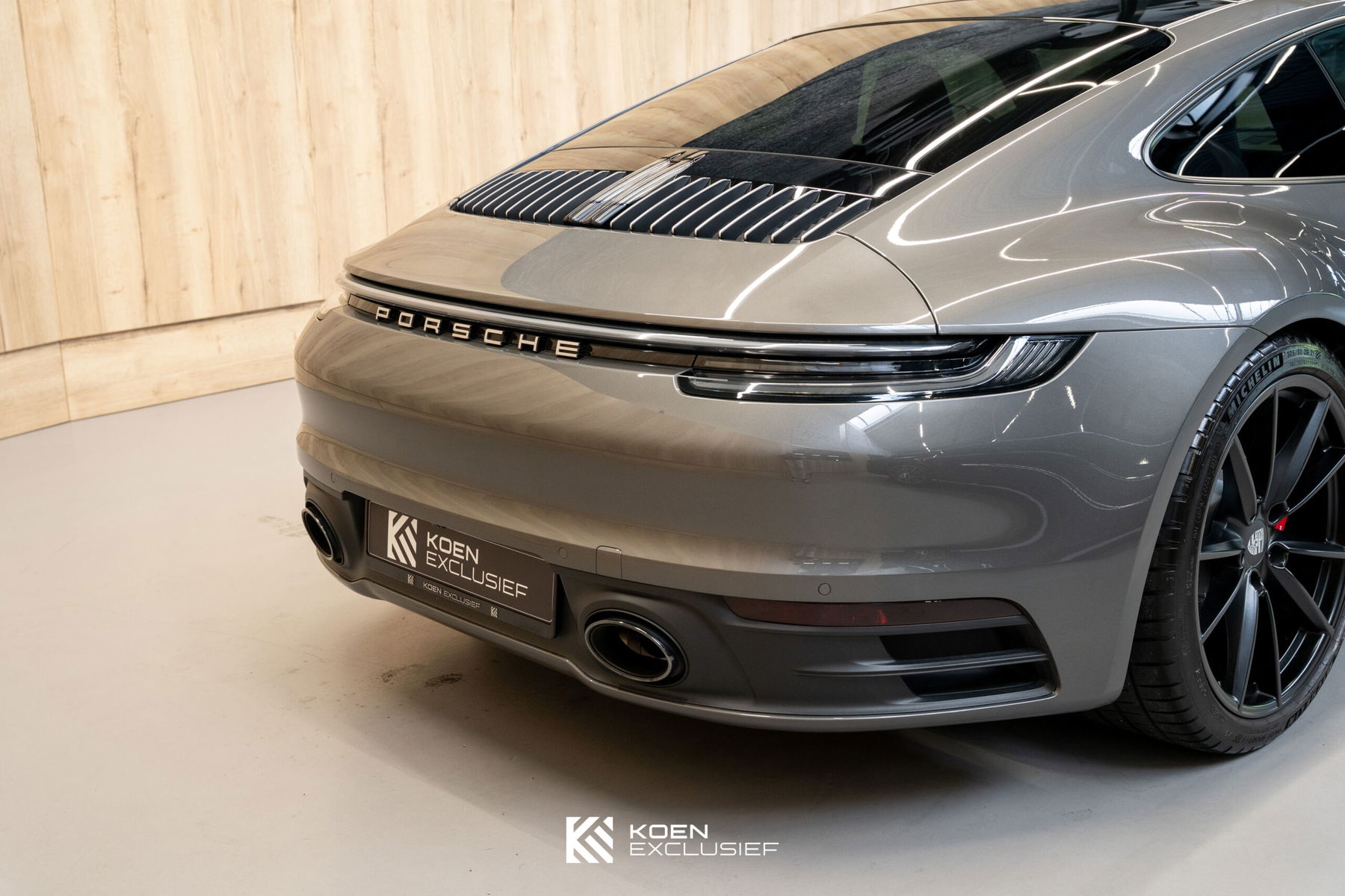 Equipment and options. The car is painted in the color agate gray metallic and is equipped with , rear axle steering sports exhaust system black, PASM sports suspension (-10 mm), power steering Plus wheels painted satin, GT sports steering wheel incl. Steering wheel heating, electric glass sunroof, Porsche emblem on headrests, heated and ventilated front seats, windscreen with gray band, side and rear window privacy glass, carbon interior, Alcantara headlining, electrically folding exterior mirrors, lane change assistant, LED matrix headlights incl. PDLS Plus, Sport Chrono package, adaptive cruise control, BOSE Surround Sound System, ParkAssist incl. Surround View, self-dimming interior and exterior mirrors with integrated rain sensor, lane departure warning incl. speed limit indicator, adaptive sports seats plus, Light Design package, digital radio, sills, brushed aluminum sills, Apple CarPlay.