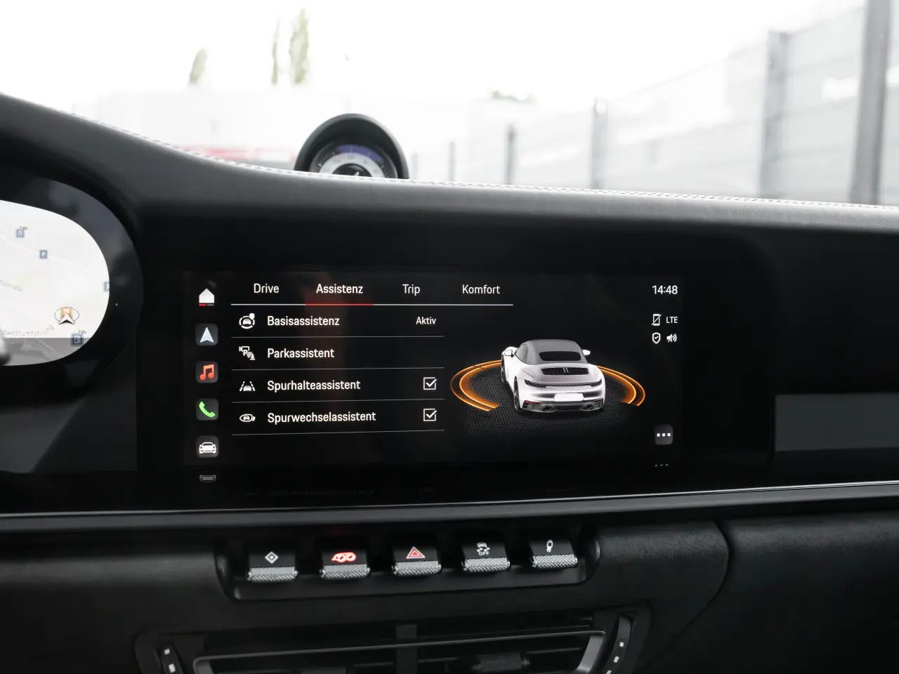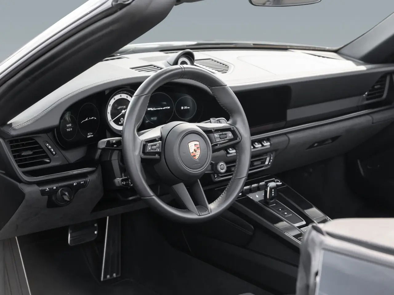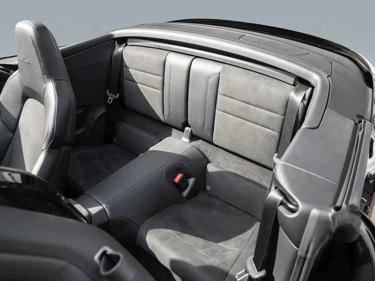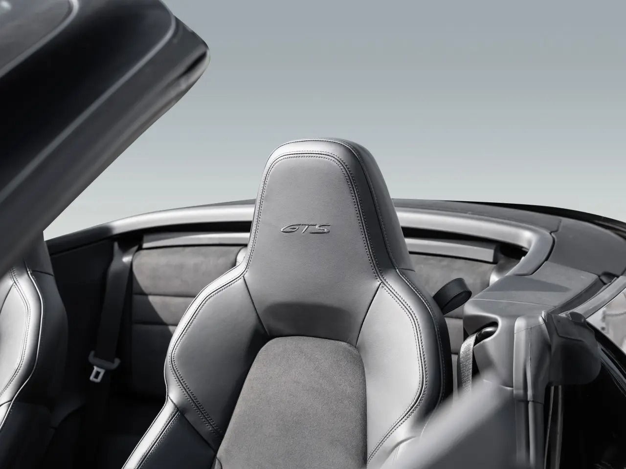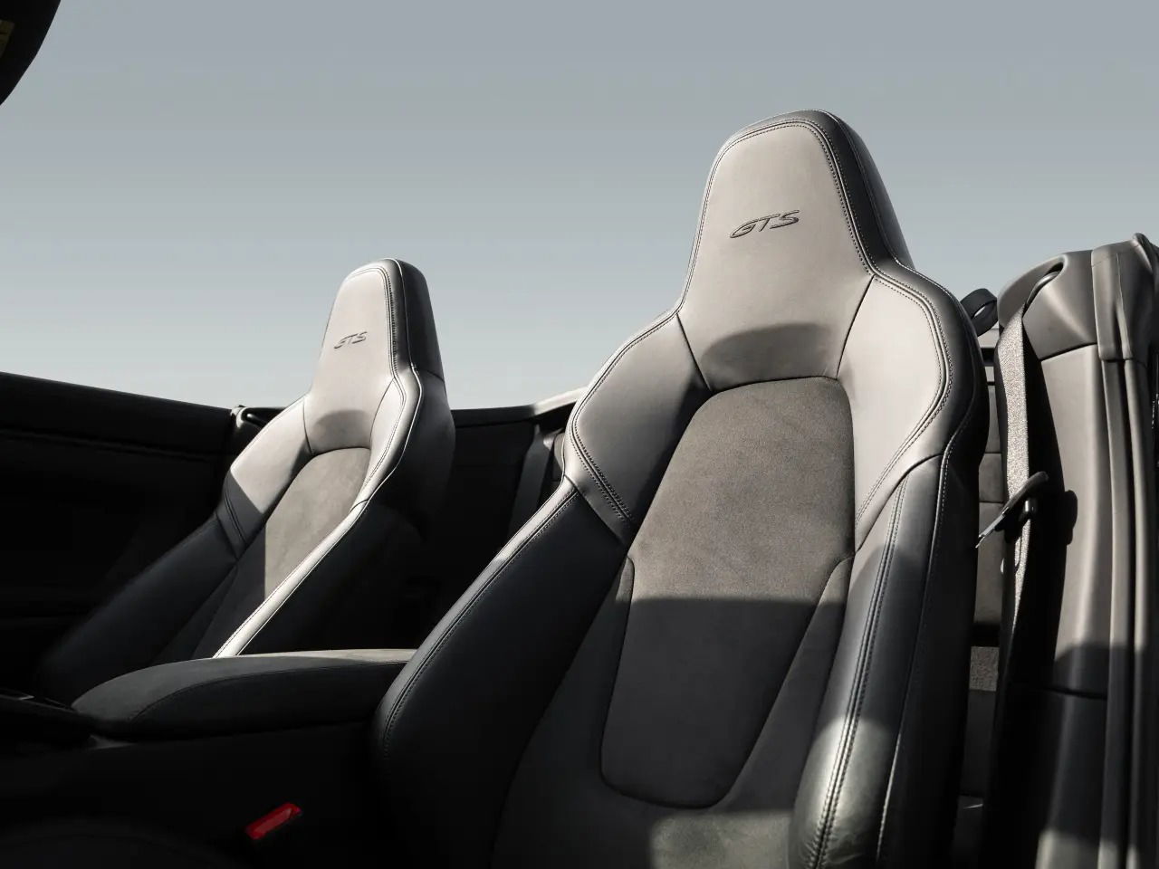 Interior: Adaptive Sports seats Plus (18-way, electric) with memory package, Sports seat Plus leather backrest with decorative element painted in exterior color, heated front seats, GT sports steering wheel, heated, white rev counter dial, white Sport Chrono stopwatch dial, interior package painted in exterior color, storage package, Race-Tex sun visors, Porsche crest on Race-Tex storage compartment lid