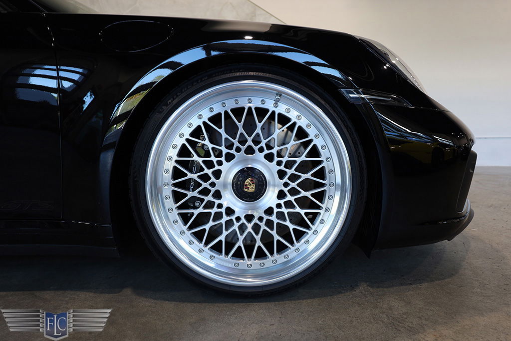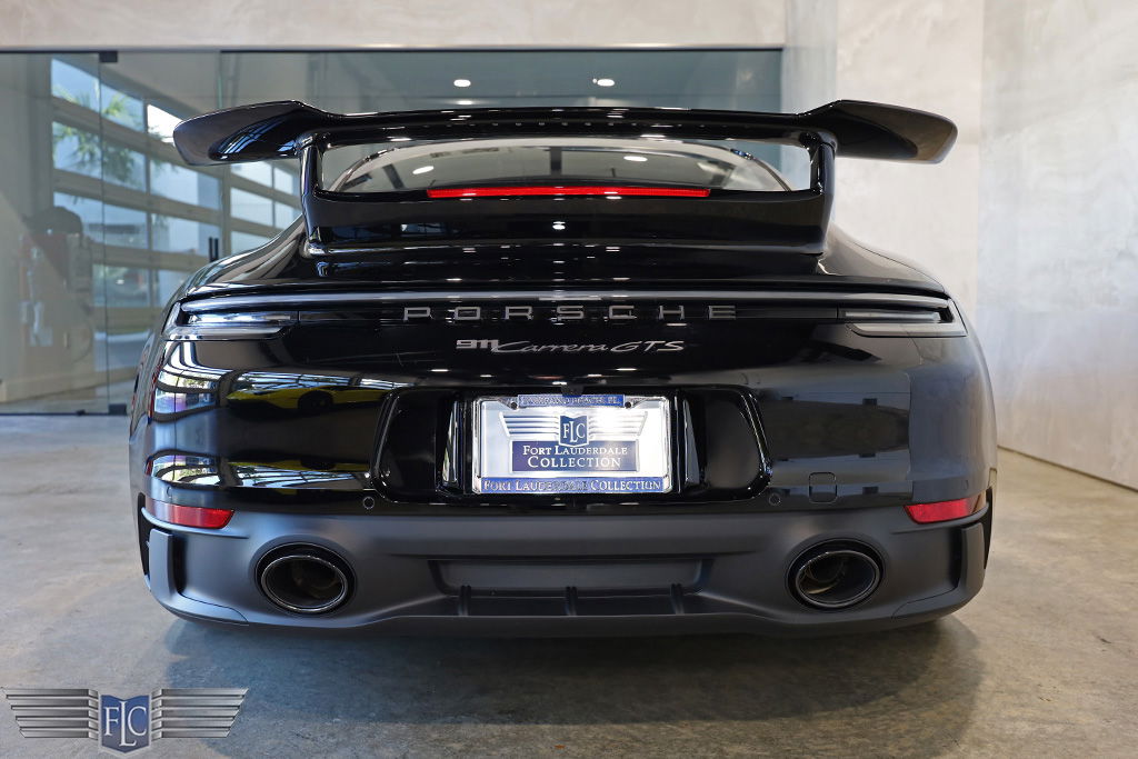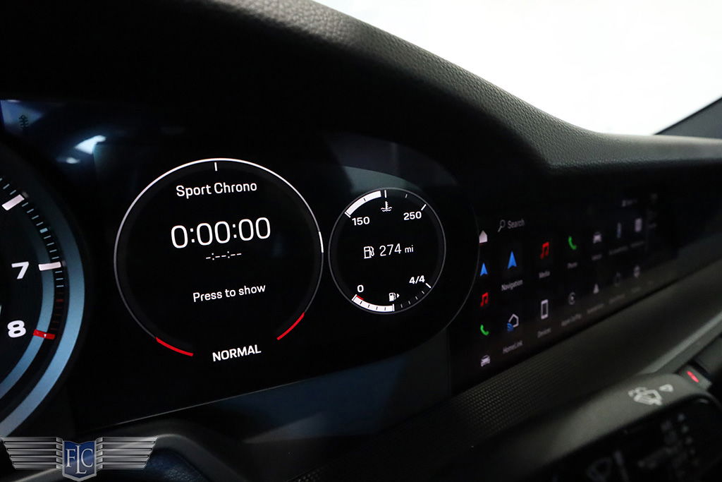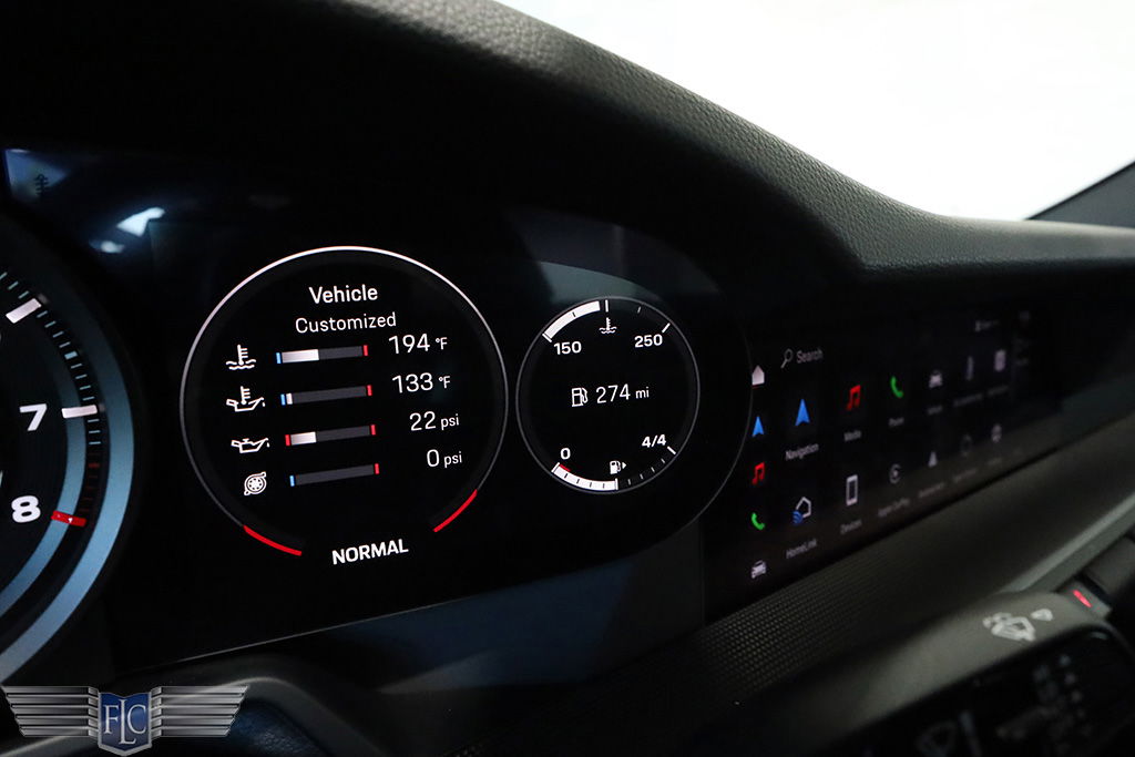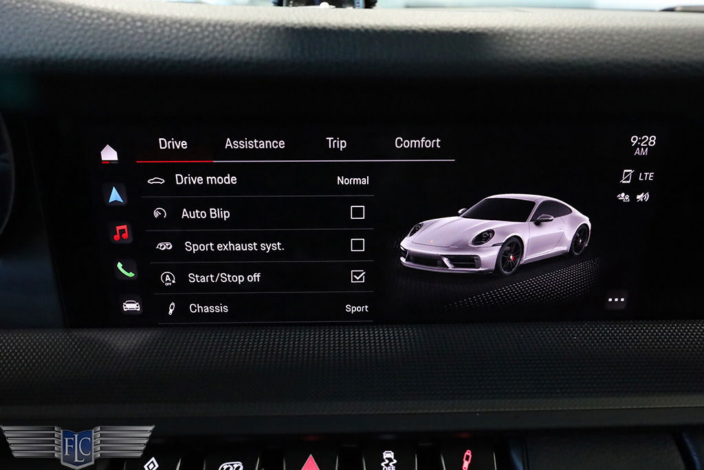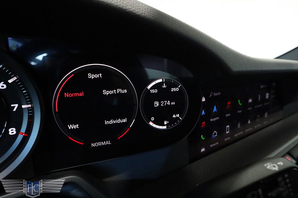 Inside the cabin, the GTS remains unmistakably 911, but with thoughtful upgrades. You’ll find a modern, driver-focused layout with high-quality materials, Carbon Fiber Bucket Seats with Houndstooth Seat Inserts, and optional carbon fiber trim. Standard features typically include Porsche’s adaptive sport suspension (PASM) with a 10mm lower ride height compared to the standard Carrera, and rear-axle steering becomes standard on the GTS, enhancing high-speed stability and low-speed maneuverability. This being a 2024, it is the last year you could get a Manual Transmission which this car has!