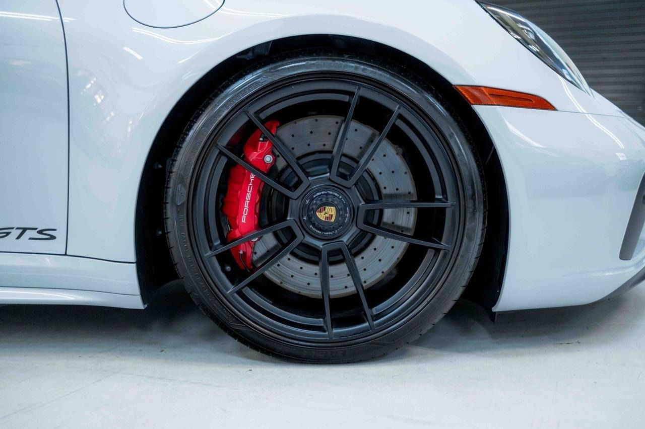 new arrival!! under 2000 mile example of a 2024 porsche 911 carrera gts, practically brand new. still covered under factory warranty (as of 02/09/26) qualifies for certified extended warranty, please inquire for more details! needs nothing! car is ready to go! runs and drives beautifully. has bose surround sound system, front axle lift, porsche crest on headrests, adaptive sport seats, heated and ventilated seats, heated gt sport steering wheel, and more! comes with books and manuals. original msrp: $180,430.00! exterior is finished in ice grey metallic over black leather interior with chalk contrast stitching and chalk seat belts.