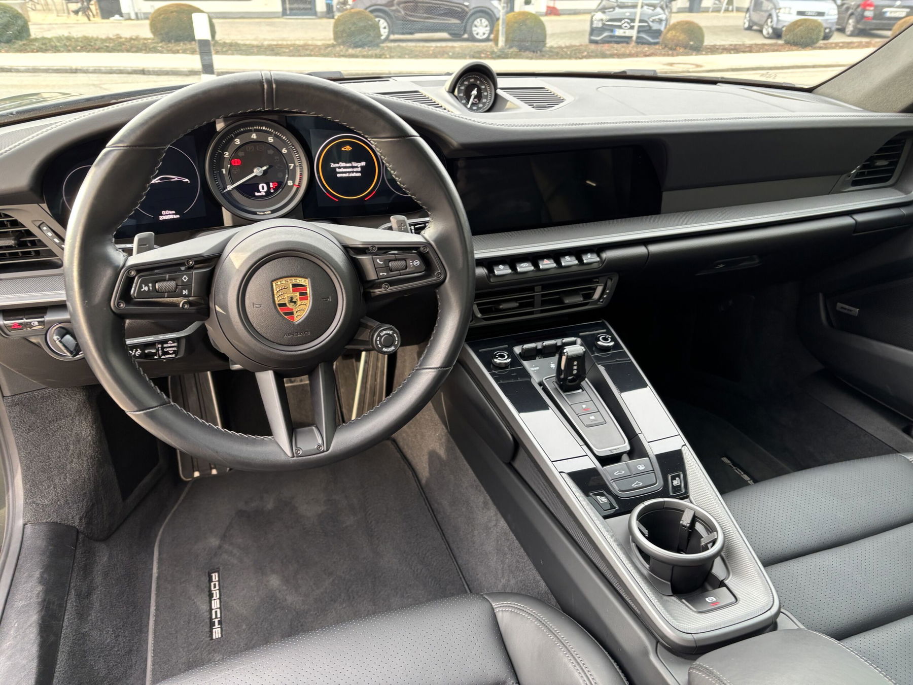 Driver/passenger airbags, drive type: rear-wheel drive, aspherical exterior mirror, left, electrically adjustable and heated exterior mirrors, both, LED turn signals, Red painted brake calipers, Connect Plus (Bluetooth, Apple CarPlay, Wi-Fi, vehicle tracking system), fabric headliner, anti-theft alarm system with interior monitoring, tachometer, automatic headlight activation, door sill plates with model name (aluminum), driver assistance system: Hill start assist (Hill Holder), Driver assistance system: Collision warning system with brake intervention and pedestrian detection, Floor mats, 8-speed transmission – dual-clutch transmission (PDK), Cup holders, LED headlights, LED taillights, Heated rear window, Rear spoiler, Interior: leather, standard leather color, cabin filter: activated carbon filter (odor filter), interior package: Diamar Dark Silver, Isofix mountings for child seat on front passenger seat, body: 2-door, Keyless Drive, coat hook on leather seat backrest, 2-zone automatic climate control, head airbag system Porsche Side Impact Protection System (POSIP), front head-shoulder airbag (thorax bag), alloy wheels, 3.0-liter engine – 331 kW catalytic converter, gasoline particulate filter (OPF), electric parking brake, Porsche Active Suspension Management (PASM), Porsche Communications Management (PCM) incl. online navigation module, Porsche Torque Vectoring Plus (PTV Plus), Digital radio reception (DAB+), tire pressure monitoring system, low emissions in accordance with Euro 6d emissions standard, model series lettering, painted sill covers/trim, Sport button, start/stop system, turbo, vehicle tracking system (PVTS), tinted windows