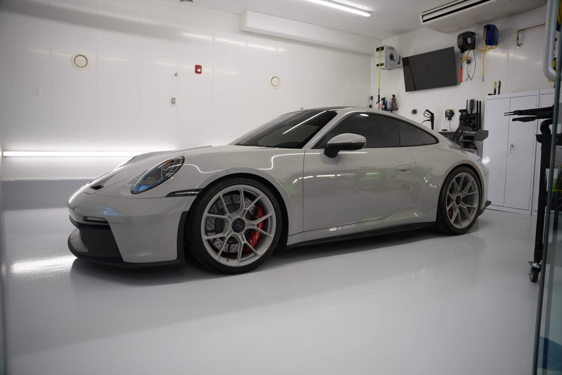 2022 Porsche 911 GT3 | Chalk | PDK | 7,433 Miles | Fully Loaded Chalk over Black/Guards Red Race-Tex interior. Paint-matched Chalk center-lock wheels. One of the most heavily optioned 992 GT3s available. Full-body PPF with double-layer rear fender stone guards. Carbon fiber roof. Front axle lift. Full carbon bucket seats. LED Matrix headlights in black w/ PDLS+. Sport Chrono w/ lap trigger prep. Exclusive design taillights. Extended dashboard in leather. Bose surround sound. Ambient lighting. Auto-dimming mirrors w/ rain sensor. Extended 23.7 gal. fuel tank. Rear park assist. Garage-kept in a climate-controlled, humidity-regulated facility, on a battery tender. Routinely serviced at Porsche. Never tracked, never modified, never seen weather. Clean Carfax. VIN: WP0AC2A96NS268339