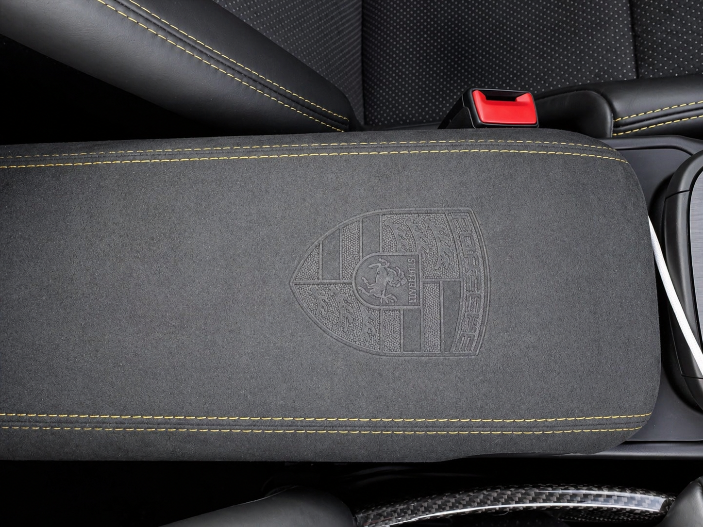 The special PTS “Alex Grey” paint color, combined with extensive carbon fiber exterior components (carbon fiber roof, carbon fiber mirrors) and the Clubsport package, gives the vehicle a particularly sporty yet high-quality appearance. Inside, yellow contrast details (roll cage, seat belts, decorative stitching, clock, tachometer) add striking accents.