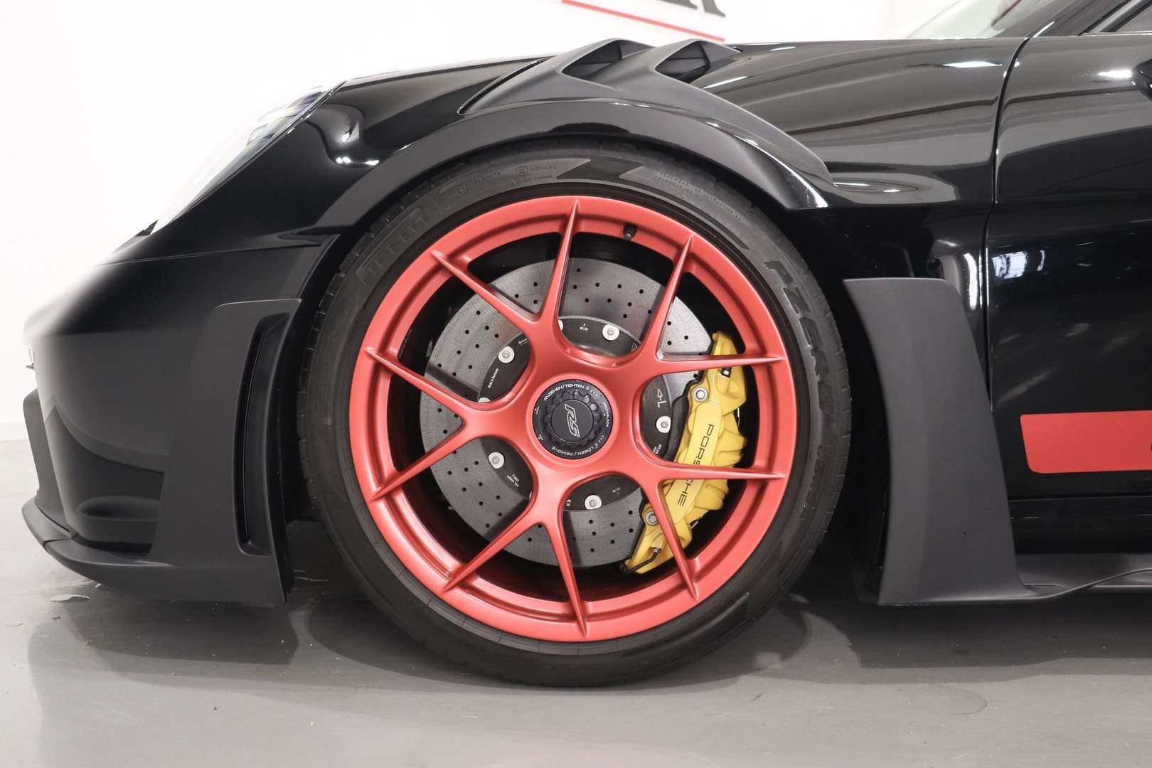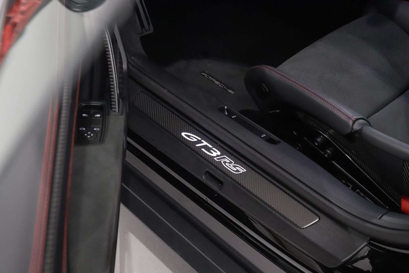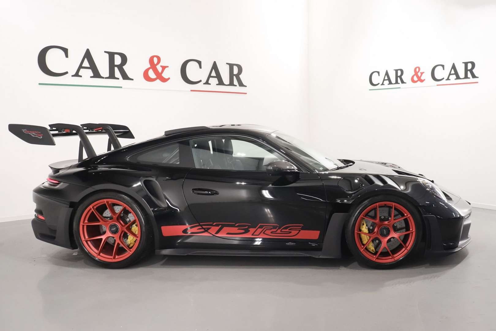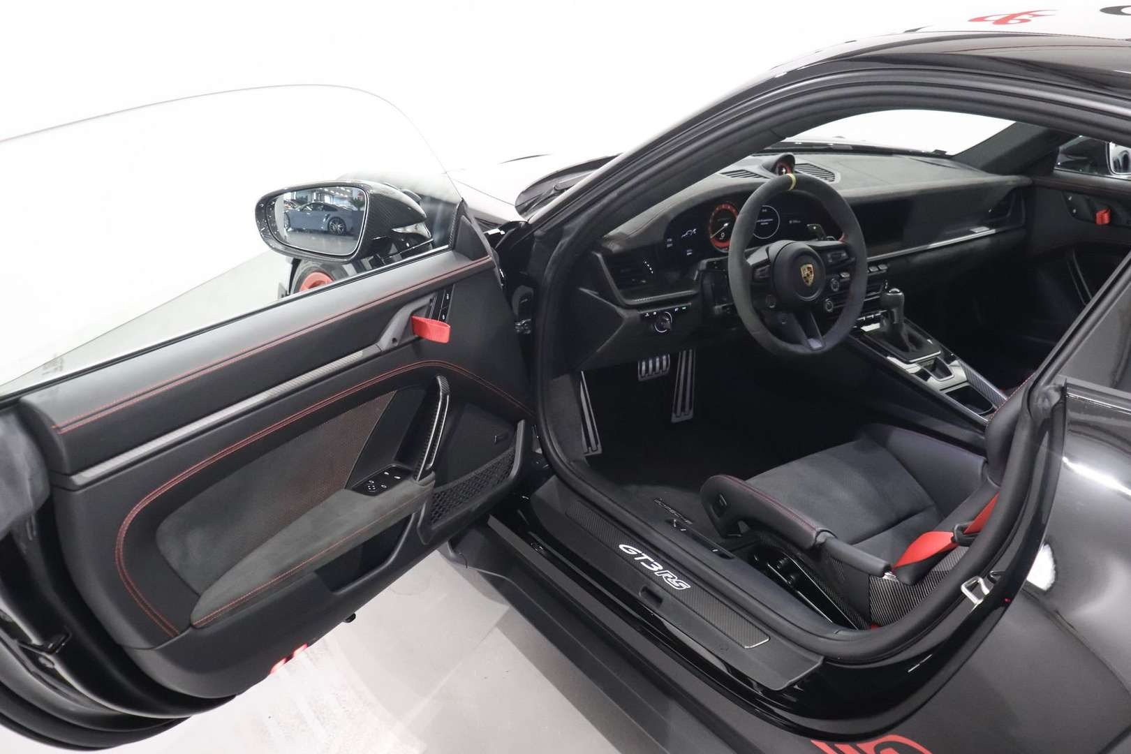 90-liter fuel tank – Porsche Ceramic Composite Brake (PCCB) – Wheels painted in Pyro Red – Front axle lift system – 20/21-inch lightweight forged magnesium wheels GT3 RS – Club Sport package with 1 kg road-approved fire extinguisher. -Preparation for trim logo package – Door sill trims in matt carbon, illuminated – LED main headlights with Matrix technology, dark-tinted, incl. Porsche Dynamic Light System Plus – Red speedometer – dial Porsche Dashcam preparation – BOSE Surround Sound System – Logo package – Weissach RS side logo on the colored rear