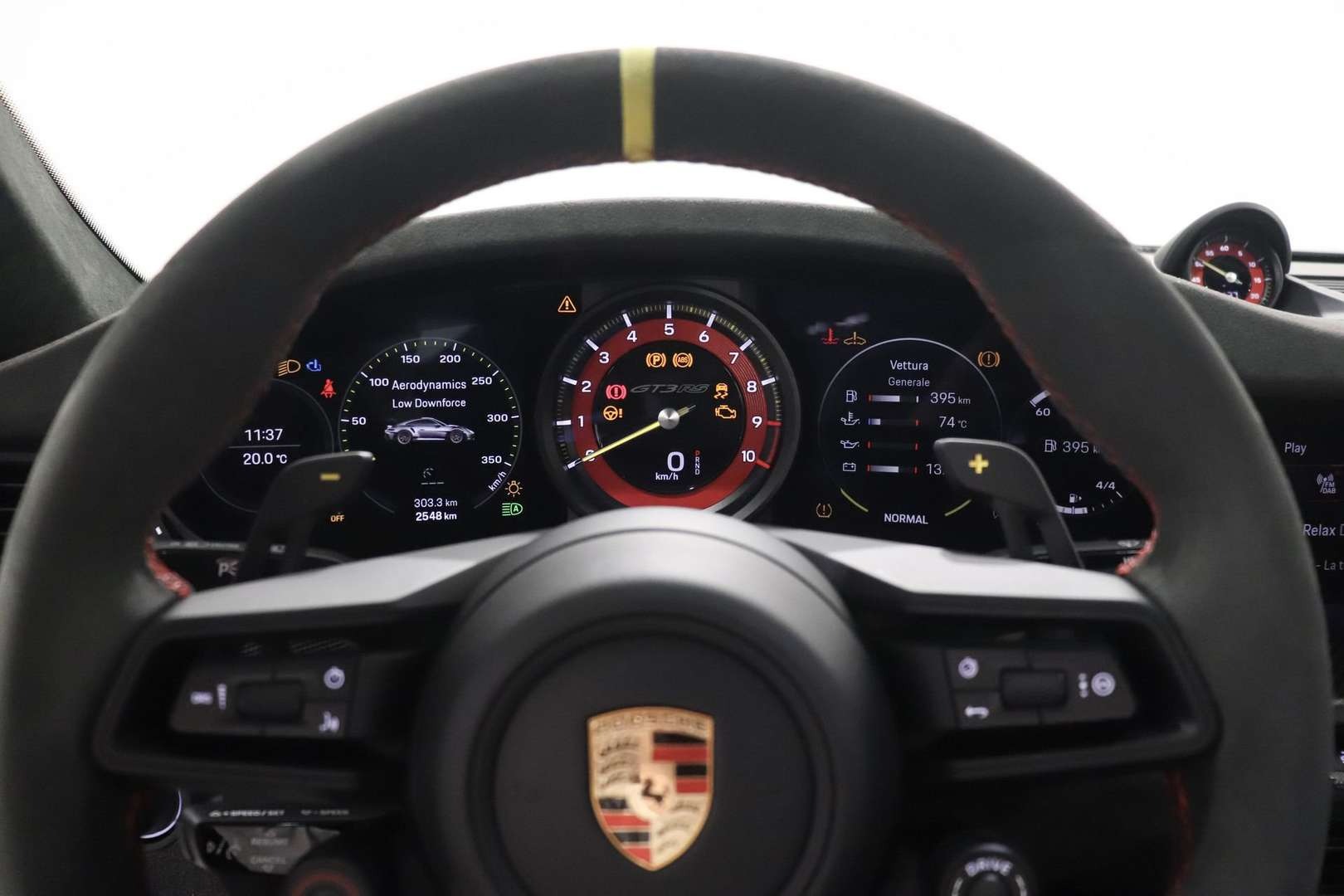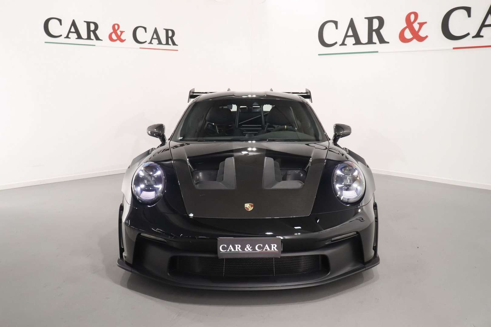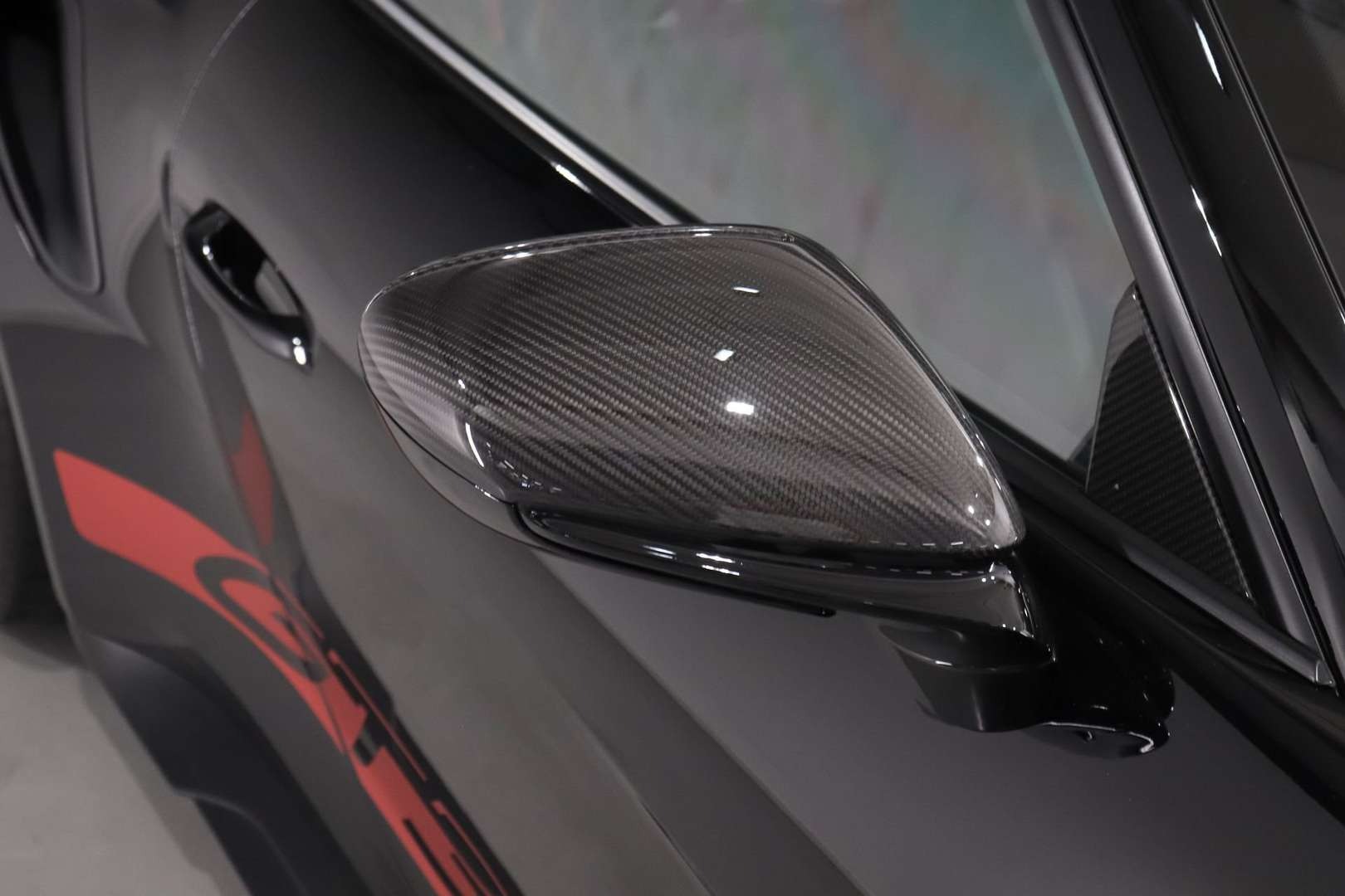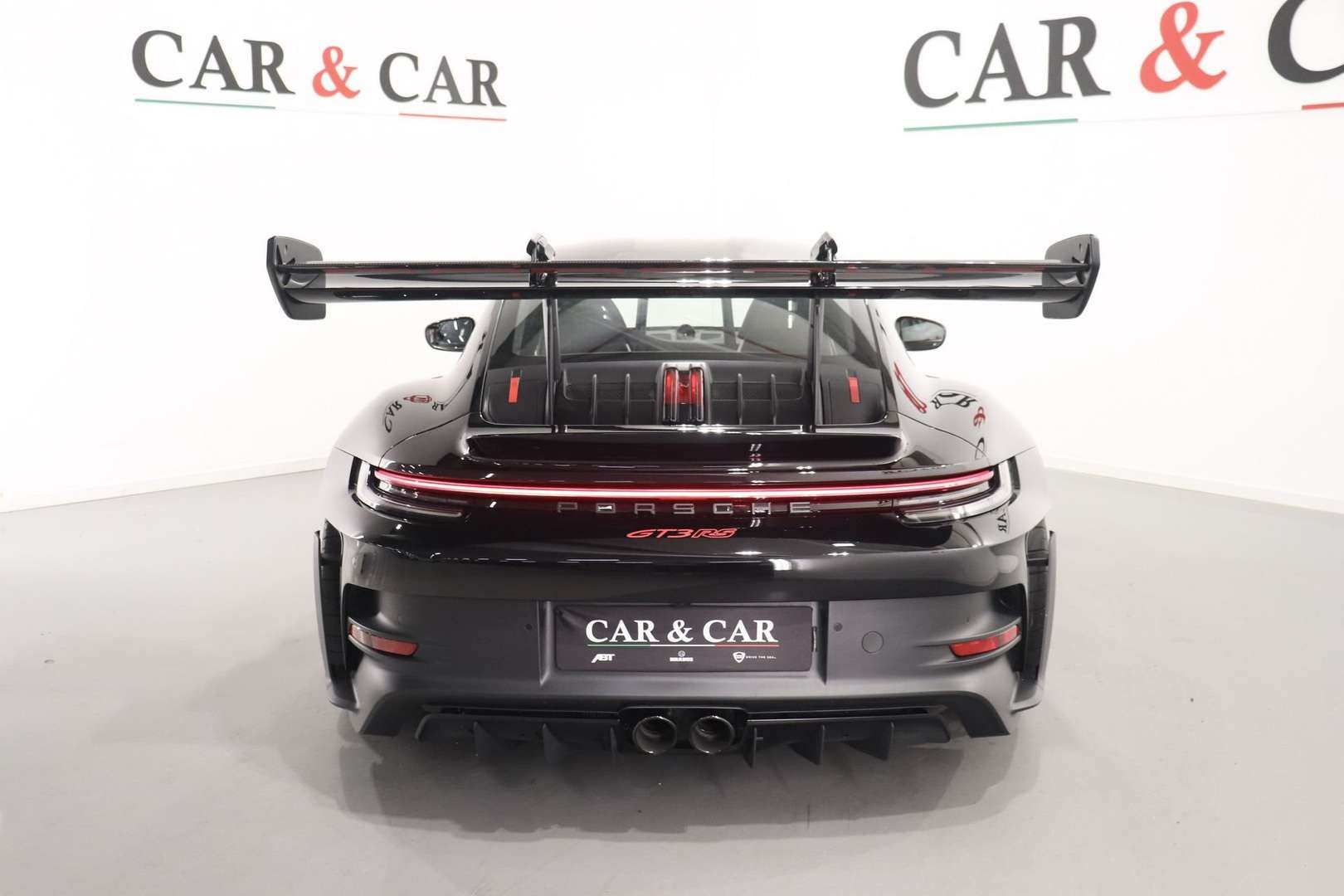 90-liter fuel tank – Porsche Ceramic Composite Brake (PCCB) – Wheels painted in Pyro Red – Front axle lift system – 20/21-inch lightweight forged magnesium wheels GT3 RS – Club Sport package with 1 kg road-approved fire extinguisher. -Preparation for trim logo package – Door sill trims in matt carbon, illuminated – LED main headlights with Matrix technology, dark-tinted, incl. Porsche Dynamic Light System Plus – Red speedometer – dial Porsche Dashcam preparation – BOSE Surround Sound System – Logo package – Weissach RS side logo on the colored rear
