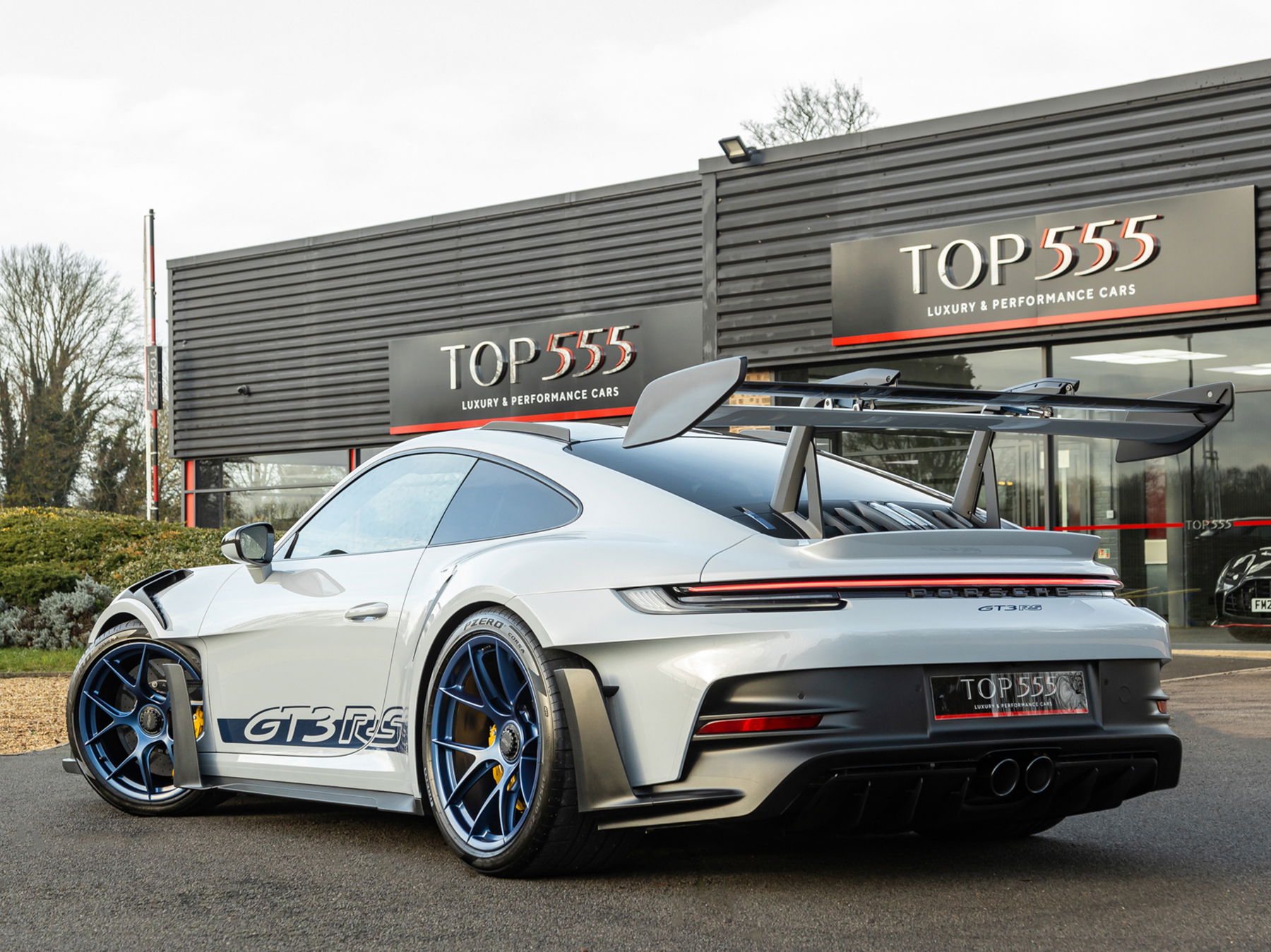 20/21 Inch GT3 RS Forged Magnesium Lightweight Wheels Painted in Indigo Blue | Porsche Ceramic Composite Brake (PCCB) | Lifting System Front Axle | Tinted LED Main Headlights with Matrix Beam Including Porsche Dynamic Light System Plus (PDLS Plus) | ParkAssist (rear) with Reversing Camera | Light Design Pack | PORSCHE Logo LED Door Courtesy Lights | Rev Counter Dial in Racing Yellow | Chrono Stopwatch Instrument Dial in Racing Yellow | Exclusive Design Taillights | BOSE Surround Sound System | Privacy Glass | Seat Belts in Racing Yellow | Door Opening Loops in Black | Storage Compartment Lid in Race-Tex with PORSCHE Logo | Door Sill Guards Carbon Matt, Illuminated | Sun Visors in Race Tex | Steering Column Casing in Leather | Accent Package Logos in Indigo Blue