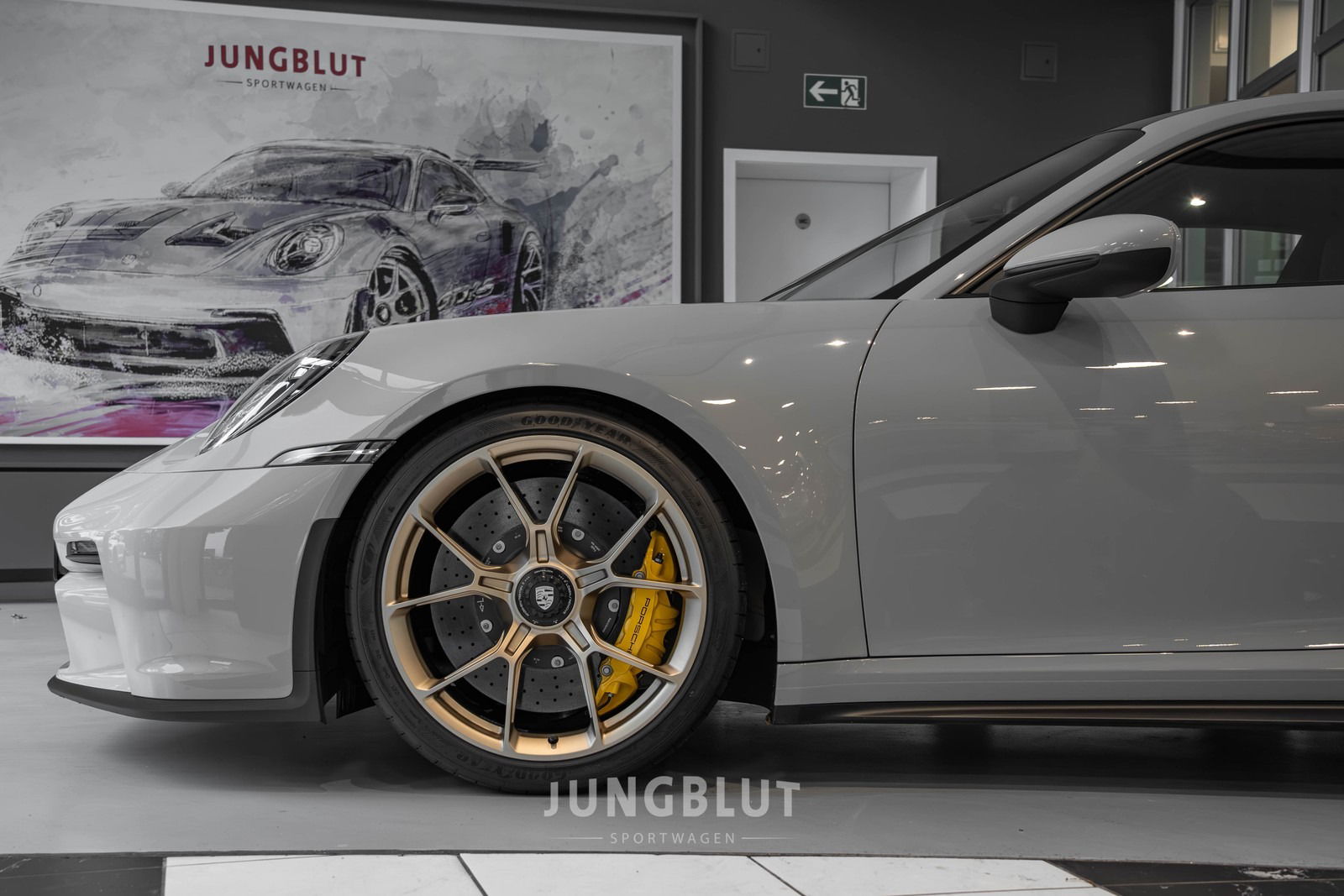 Special equipment: Touring package exterior in black, 90-liter fuel tank, tire repair kit, Porsche Ceramic Composite Brake (PCCB), wheels painted in Neodyme (satin finish), Front axle lift system, Race-Tex belt exit covers, lightweight carbon roof, front seat heating, extended interior package in matt carbon, Race-Tex sun visor, fire extinguisher, Race-Tex black headliner, LED matrix headlights, darkened, including PDLS Plus, Chrono Package, Porsche Dashcam pre-installation, exclusive design rear lights, BOSE surround sound system, Race-Tex interior mirror console, 7-speed PDK, rear parking assist including rear view camera, automatic dimming Interior/exterior mirrors with integrated rain sensor, adaptive sports seats Plus (18-way, electric), light design package, traffic sign recognition, privacy glazing
