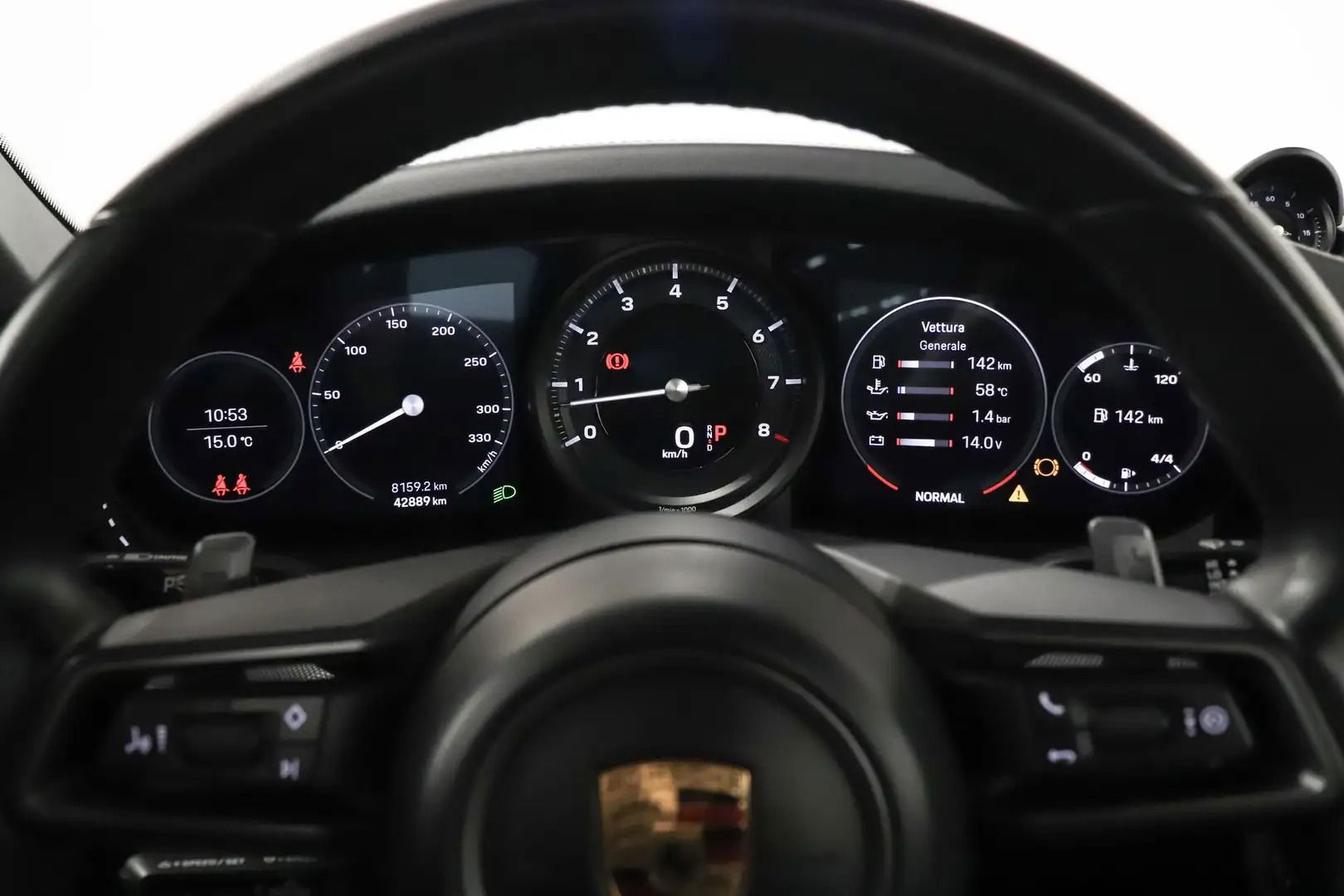 Black leather interior, SportDesign package, Electrically folding exterior mirrors, 8-speed Porsche Doppelkupplung (PDK), Sport Chrono package with mode switch, Porsche Track Precision app and temperature display, Sports exhaust system with silver tailpipes, Power steering Plus, 20/21 Carrera Exclusive Design wheels Wheels painted in high-gloss black, LED main headlights with Porsche Dynamic Light System (PDLS), Automatically dipping exterior and interior mirrors with integrated rain sensor, Grey stripe on the upper part of the windscreen, Adaptive Cruise Control, 14-way electric comfort seats for the front with memory package, Heated front seats, Ventilated front seats, Luggage retention package, Smoking package