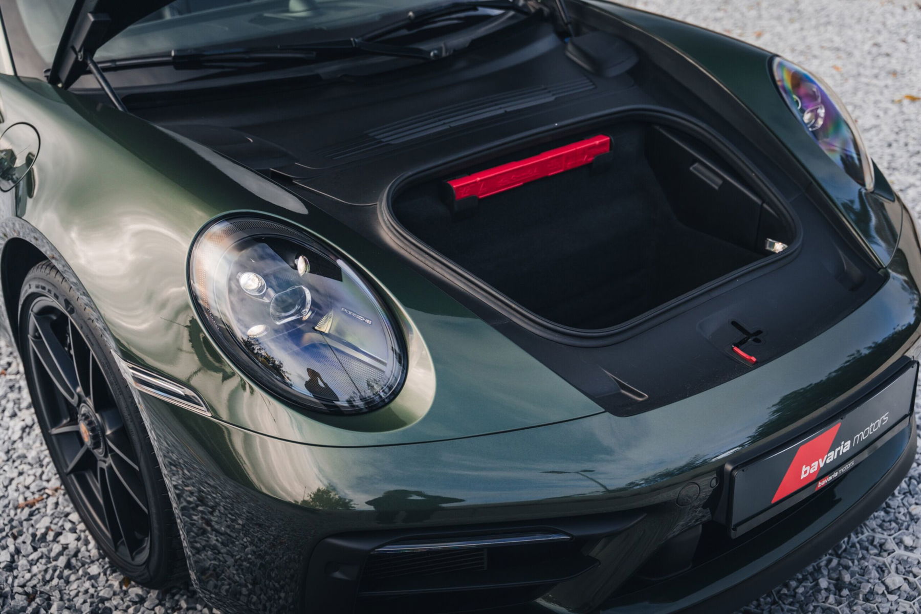 The Porsche 911 Targa 4 GTS is a sports car powered by a 3.0-litre flat-six engine producing 480 hp. It feels both powerful and precise, with the distinctive open-roof concept that makes the Targa unique. The GTS version appears more muscular, thanks to black accents and specific details that distinguish it from standard models. Inside, it features sport seats, a leather steering wheel and subtle aluminium trim. A nice detail: the Targa 4 GTS received lighter glass and aluminium panels, making it noticeably more agile than the standard Targa.