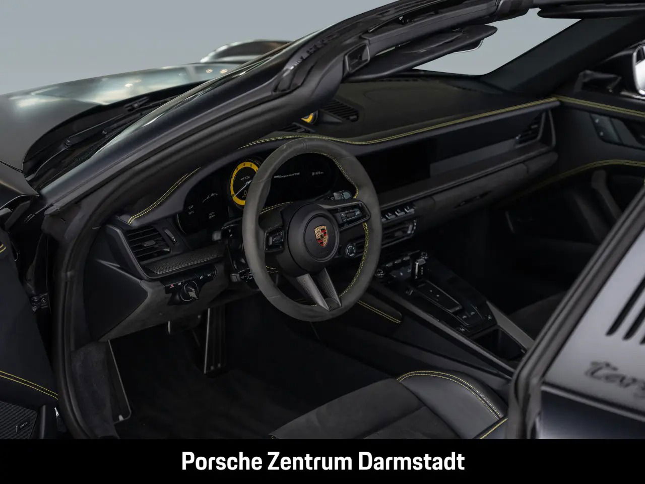 Interior: Interior package with contrasting stitching, GT sports steering wheel in Race-Tex with matte carbon steering wheel trim including steering wheel heating, racing yellow seat belts, front seat heating, matte carbon interior package, leather-wrapped steering column, racing yellow tachometer dial, racing yellow Sport Chrono stopwatch dial, storage package