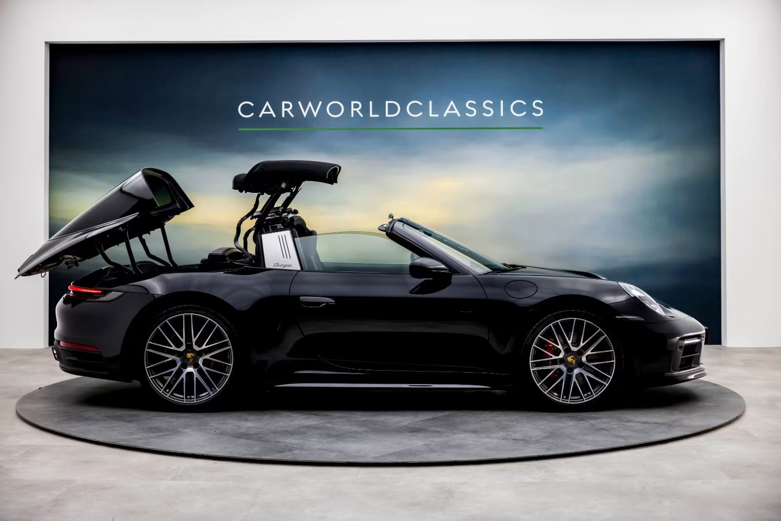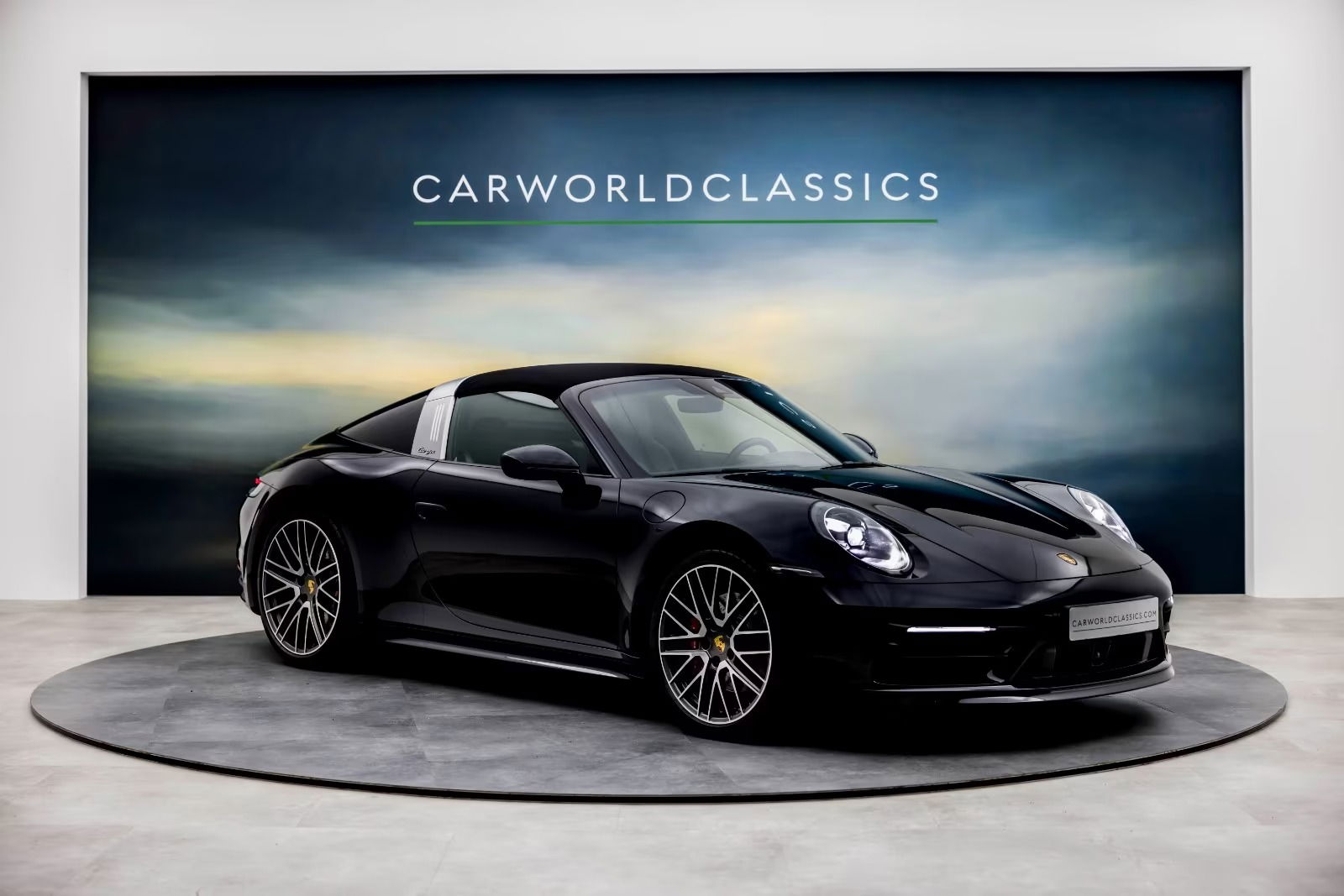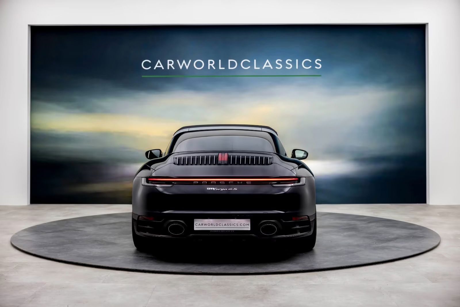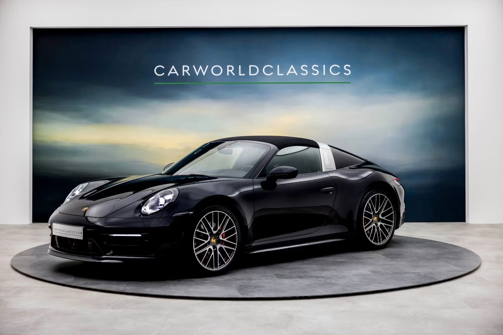 Unique and very well-maintained Porsche 992 3.0 Targa 4S PDK 450 hp in deep black metallic with black full leather interior. Full service history from Porsche Center.