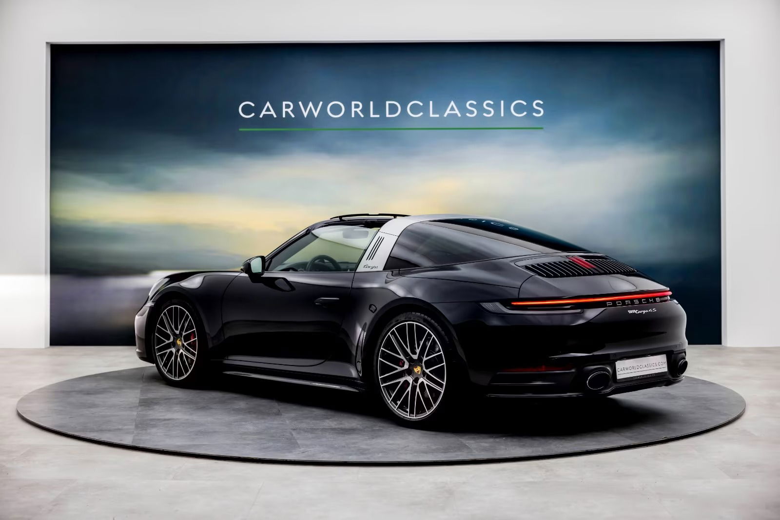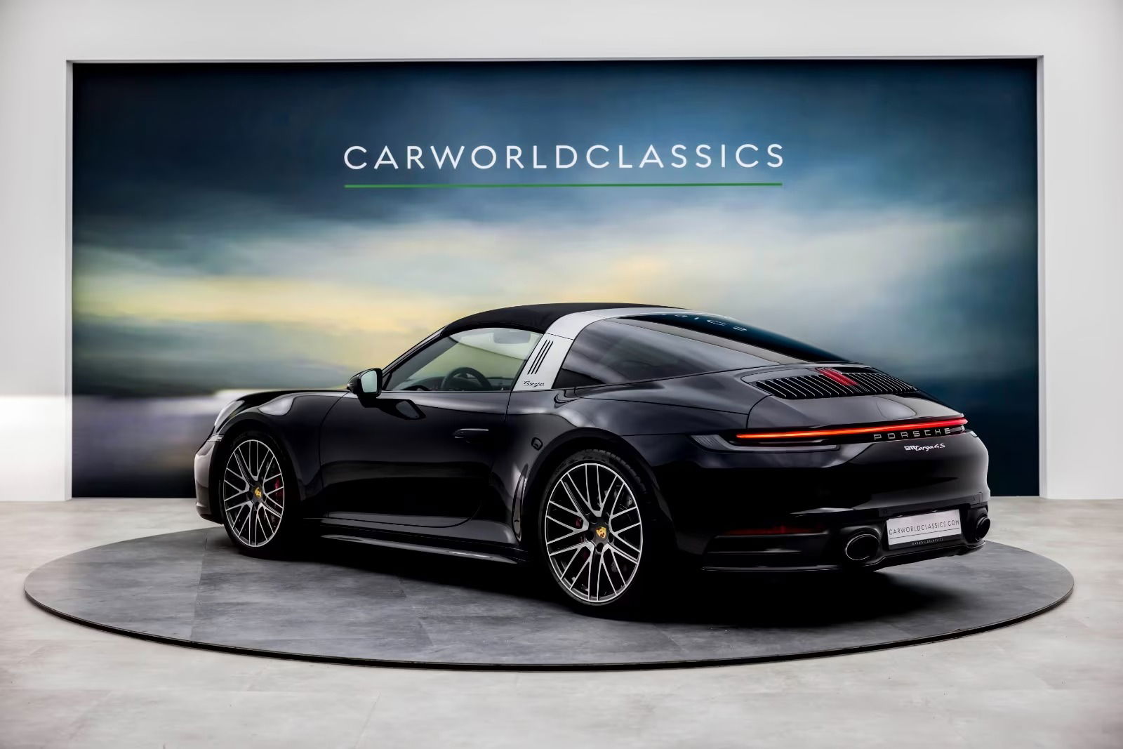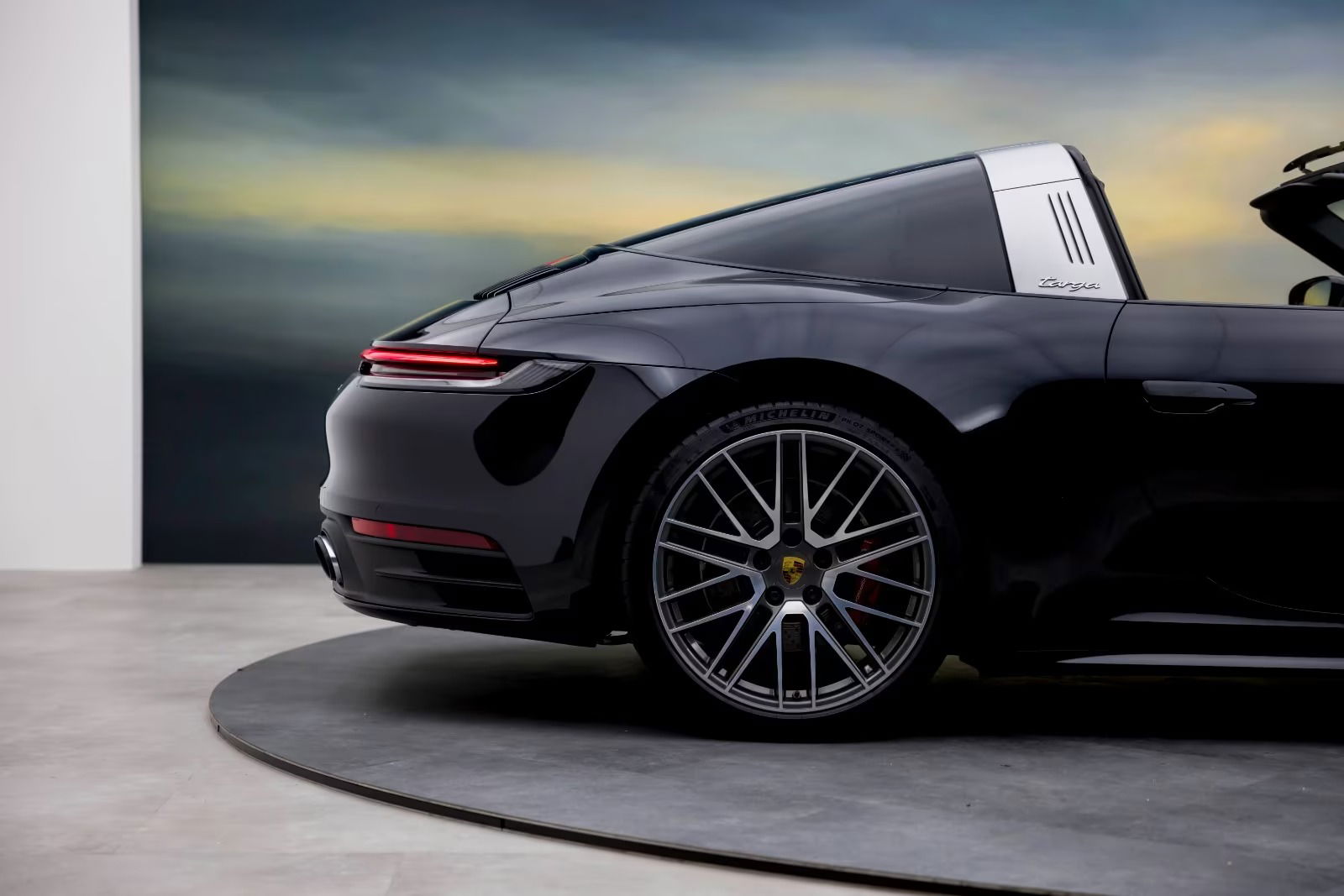 Unique and very well-maintained Porsche 992 3.0 Targa 4S PDK 450 hp in deep black metallic with black full leather interior. Full service history from Porsche Center.