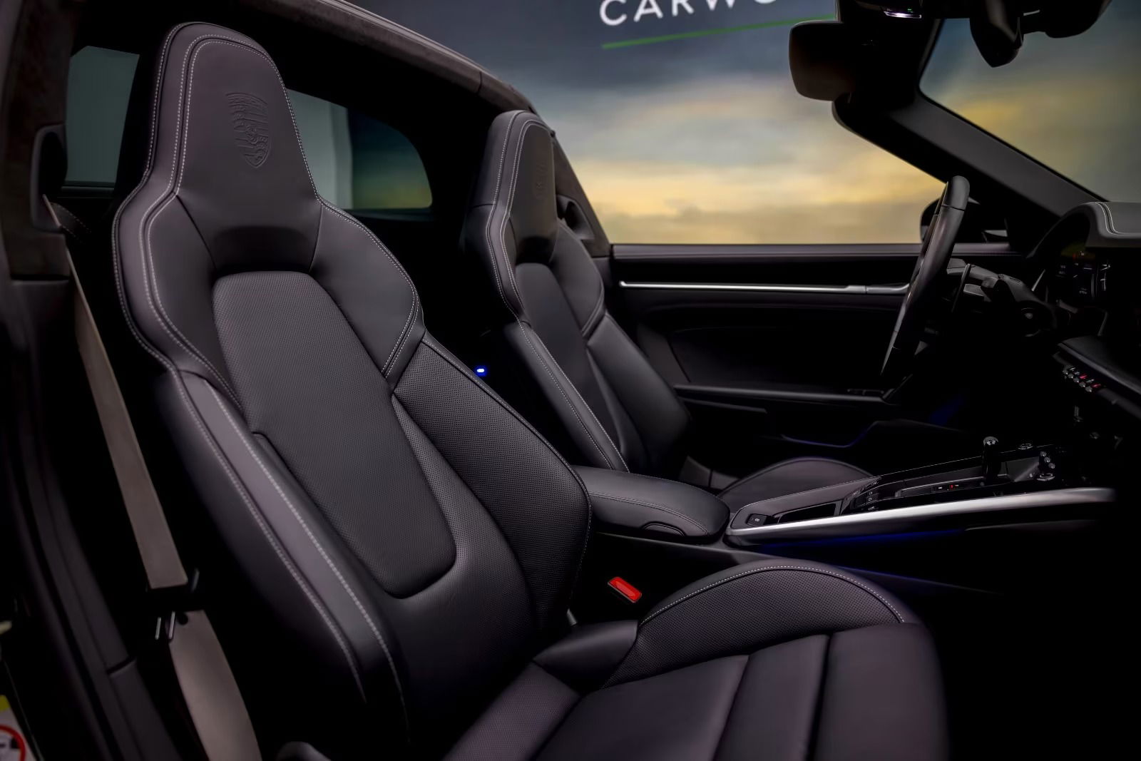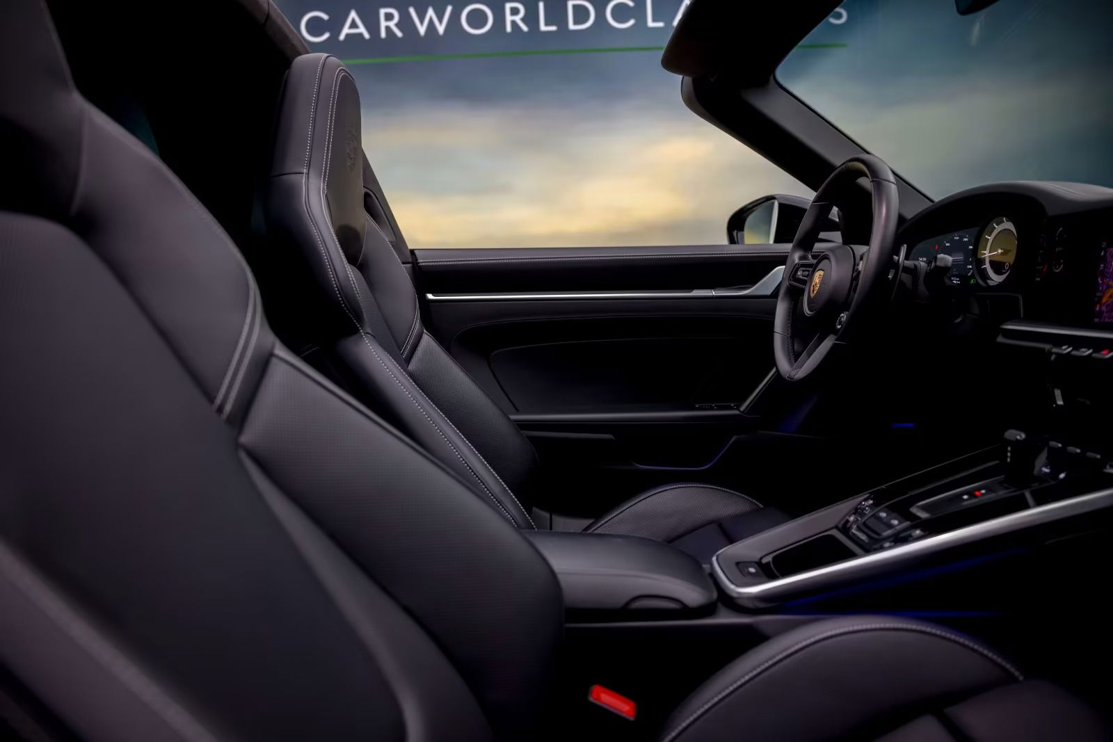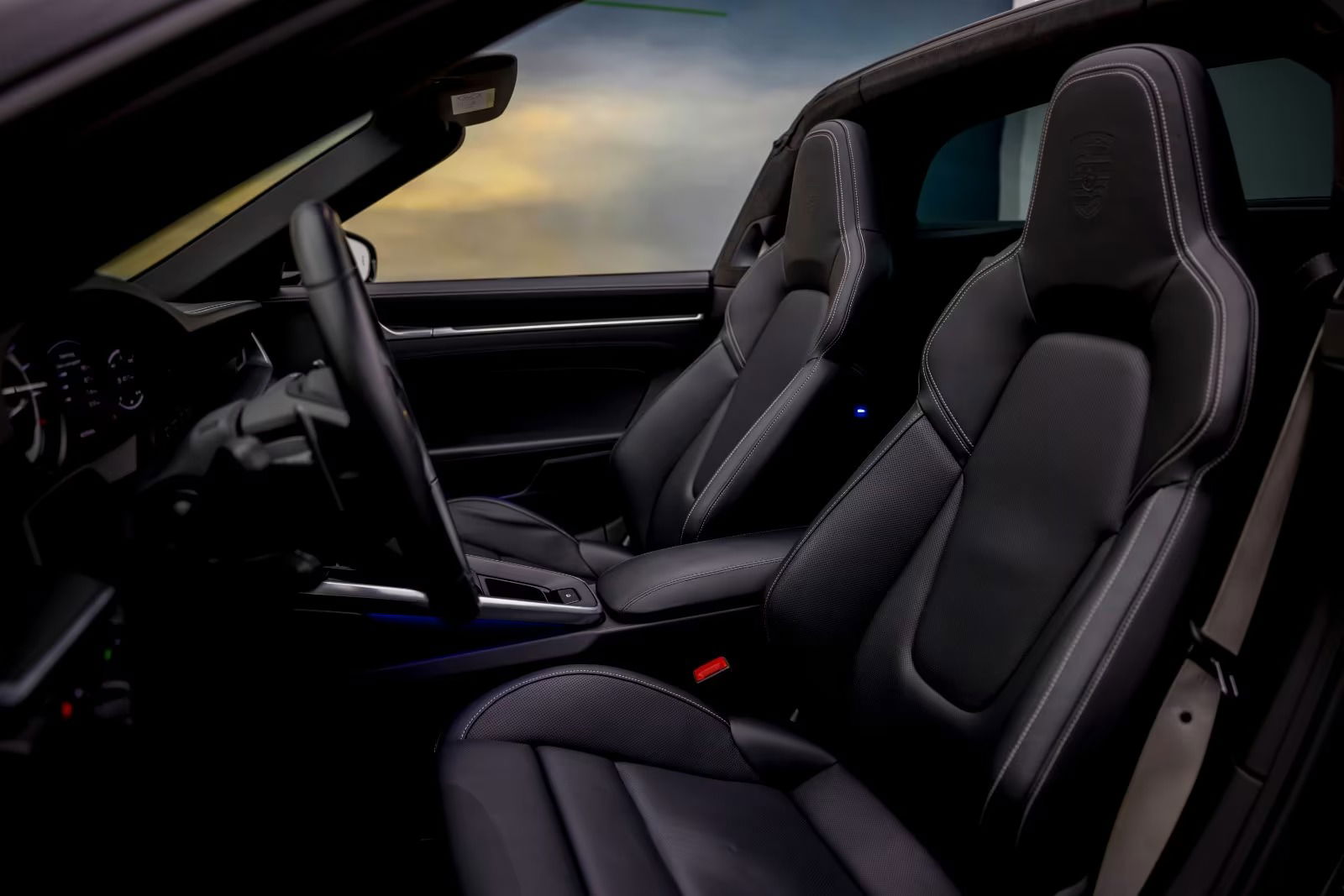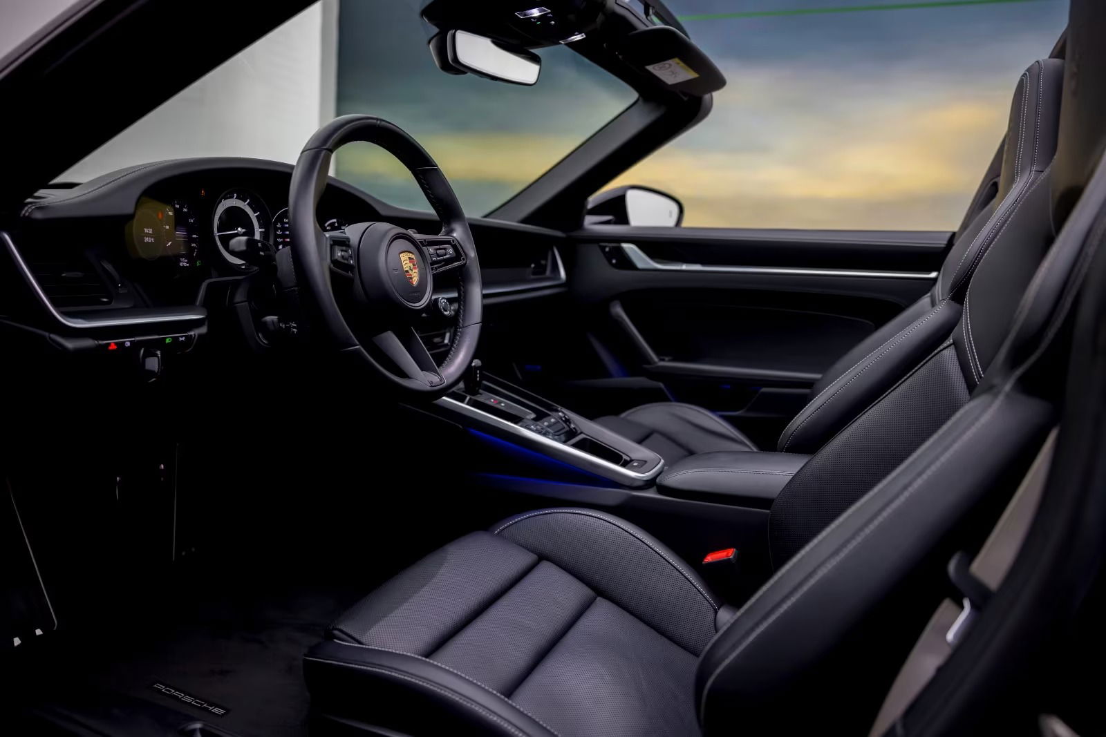 Unique and very well-maintained Porsche 992 3.0 Targa 4S PDK 450 hp in deep black metallic with black full leather interior. Full service history from Porsche Center.
