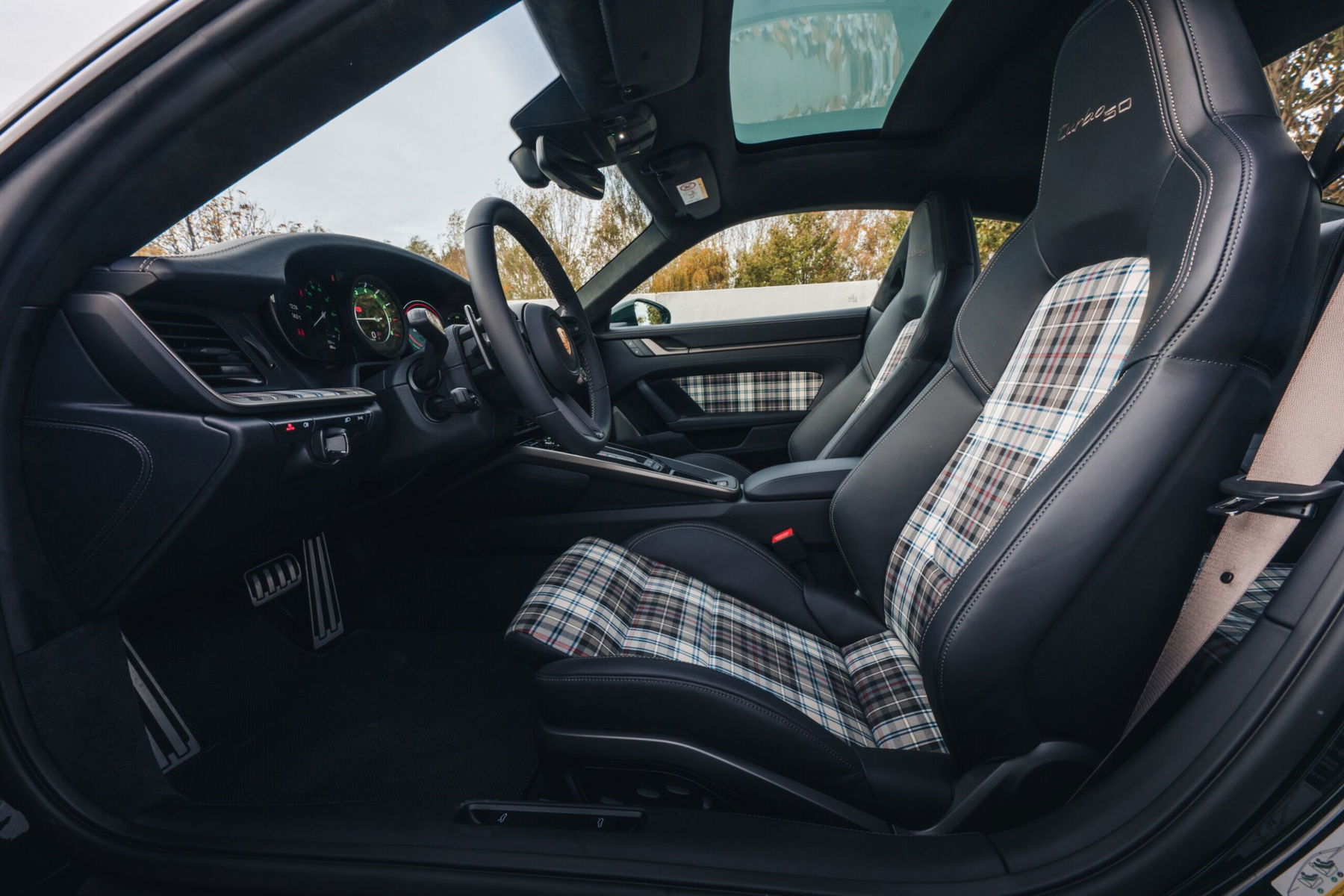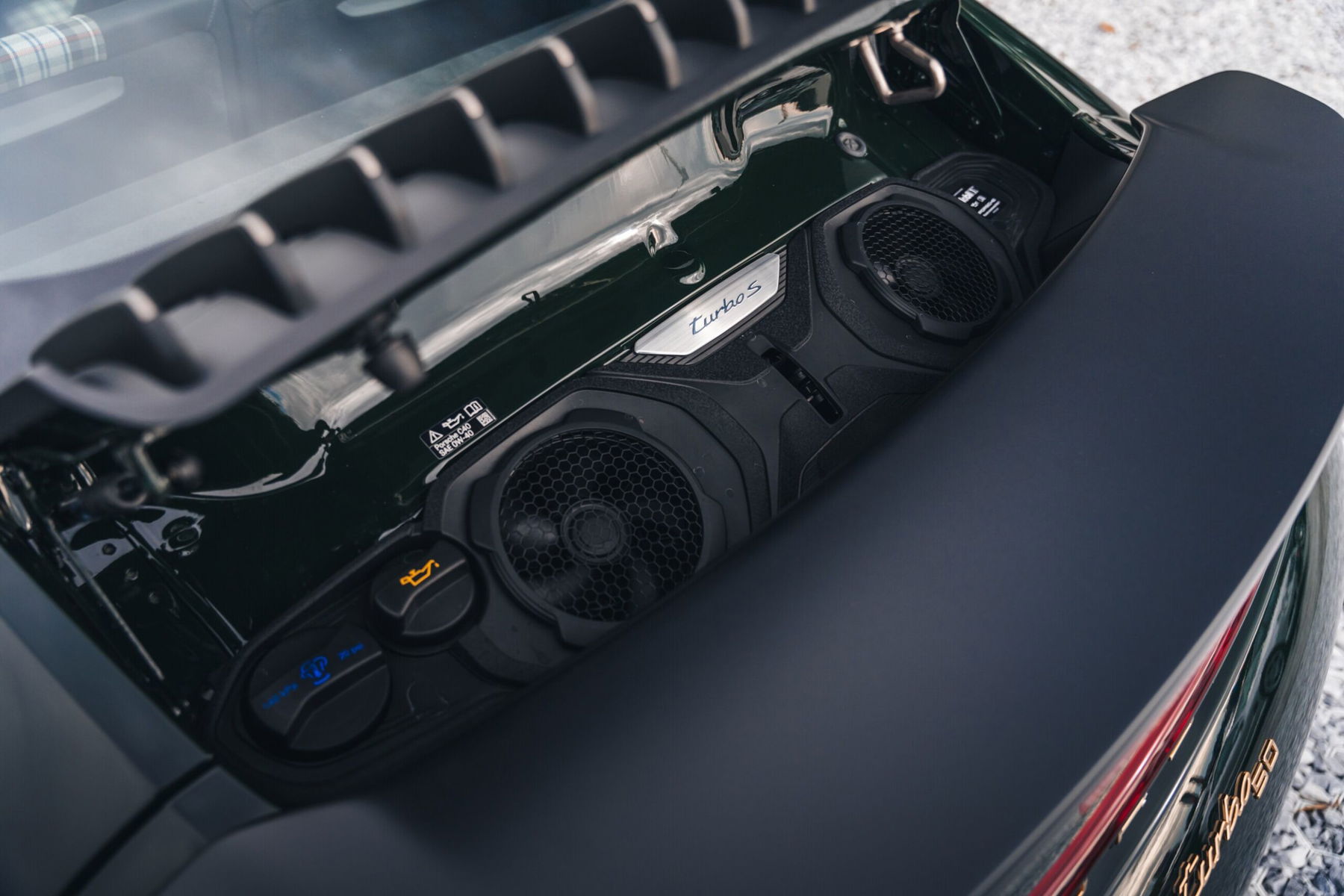 0UB PTS Brewstergreen Exterior – TP Leather interior in Black with Tartan inserts – 6XV Electrically folding and adjustable exterior mirrors – 9WT Mirror Link – A8H High-performance sports equipment – 6K8 Pre sense city without pre-care function – QJ6 Aluminium Interior Package – JE3 Connect Package Plus (Generation 13) – 3FE Electric slide/tilt glass sunroof with sunblind – 7AK Anti-theft alarm system with interior monitoring and tow-away protection – 8K8 Auxiliary lighting with Coming Home function – 7I2 Vehicle tracking system – 8T3 Adaptive cruise control – VC2 Garage door opener (HomeLink®) – 6Y2 Speed limiter – 6NN Alcantara headliner – 8JU LED headlights with variable light distribution, tinted – QK1 With multifunction camera – KA6 Surround View (front, rear, and side cameras) – 8G4 Matrix LED headlights – 2PJ Leather-wrapped sport steering wheel – 9VJ Burmester® High-End Surround Sound System – 3L4 Electrically adjustable front seats, driver’s seat with memory function – 4F2 Porsche Entry (central locking system) – 8LH Sport Chrono Package Plus – VN6 Digital clock – 56D 20/21″ 911 Turbo S Exclusive Design wheels in Turbonite – Q1J Adaptive Sports Seats Plus (front), electrically adjustable (18-way) with Memory Package – 04T Heritage Design Package “50 Years Turbo” – 3FE Electrically slide/tilt glass sunroof – ATB ’50 Years Turbo’ and ‘PORSCHE’ decorative side logo – 5XH Sun visors in leather – KA6 ParkAssist including Surround View – P60 Lane Keep Assist including Traffic Sign Recognition