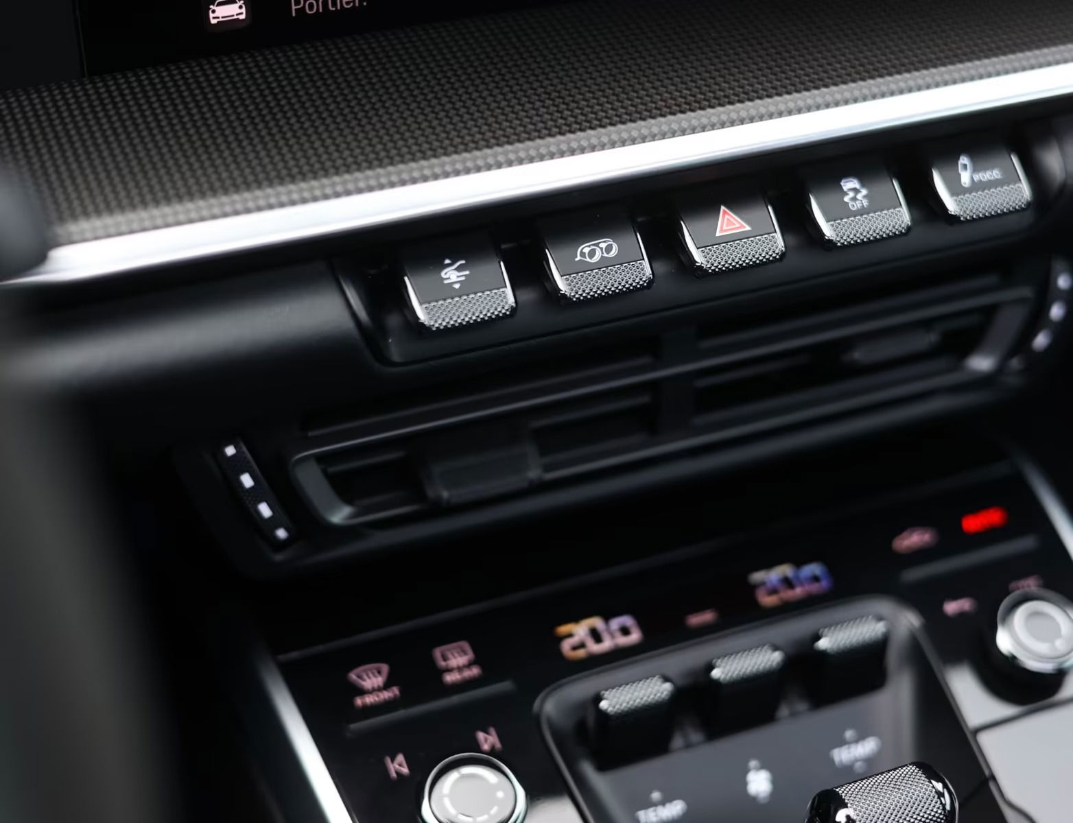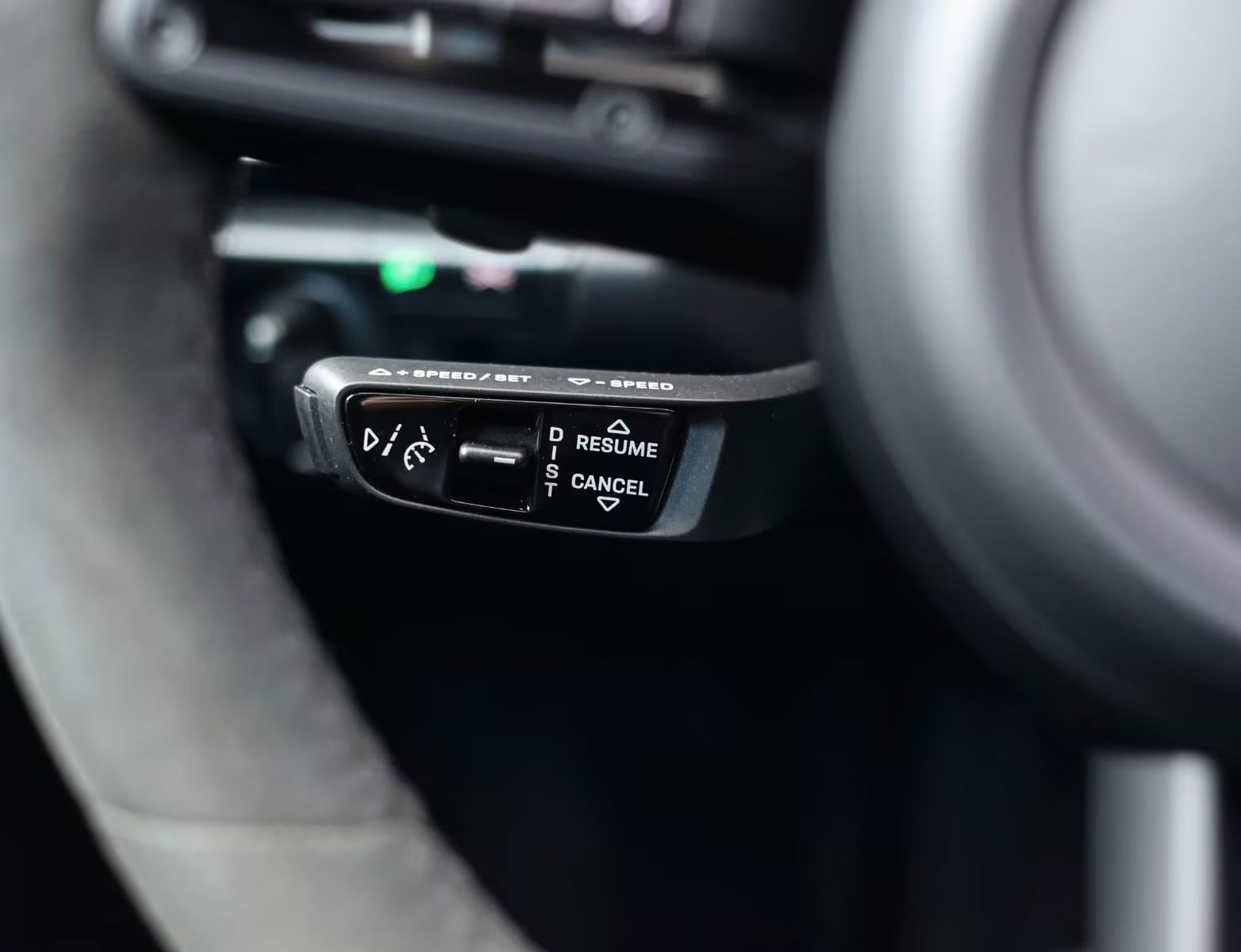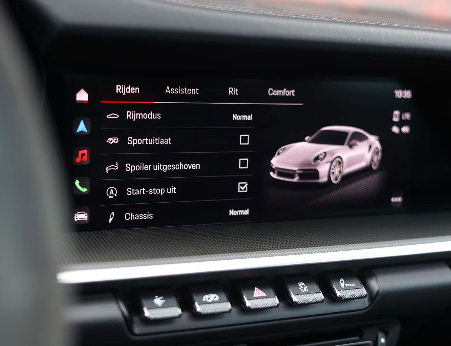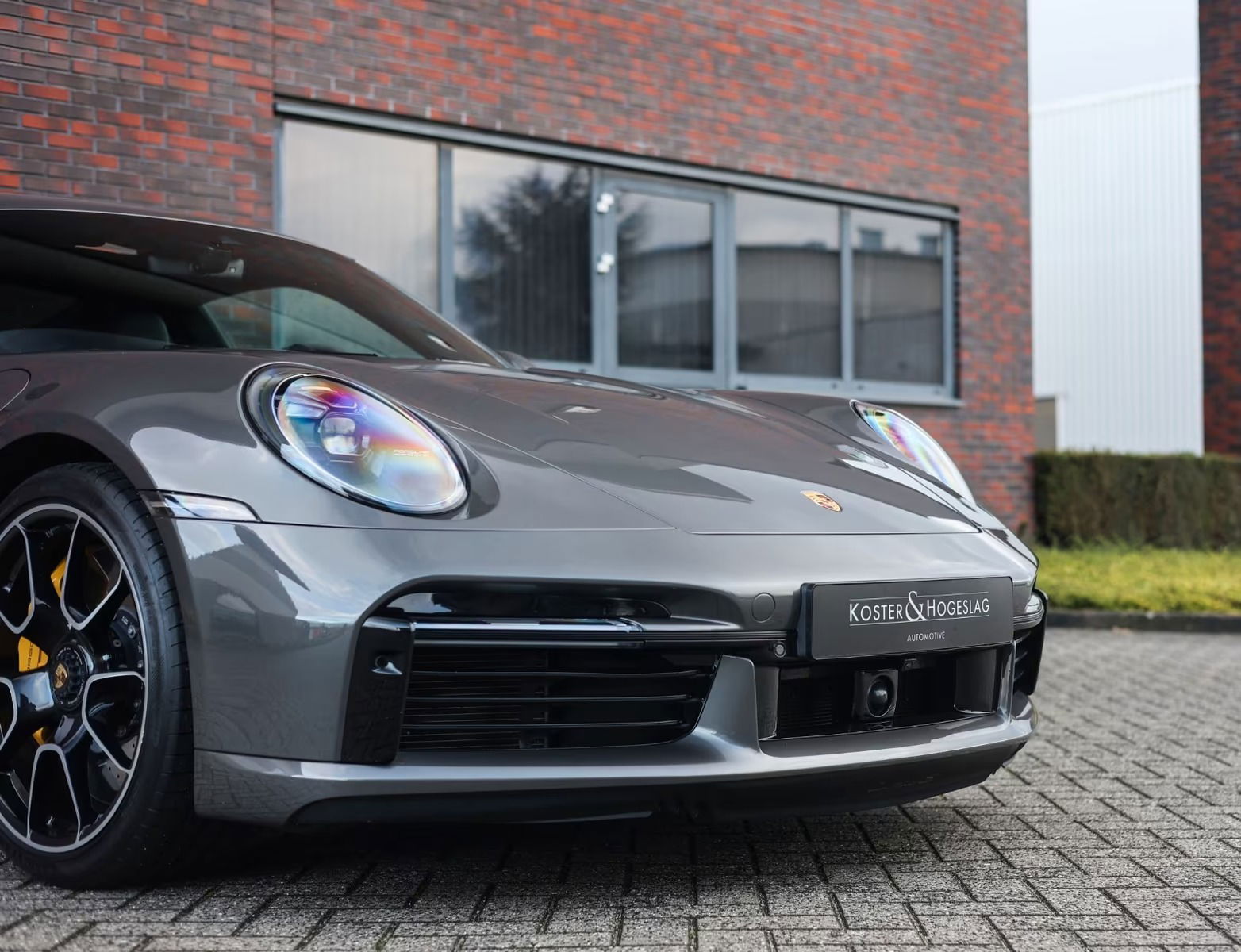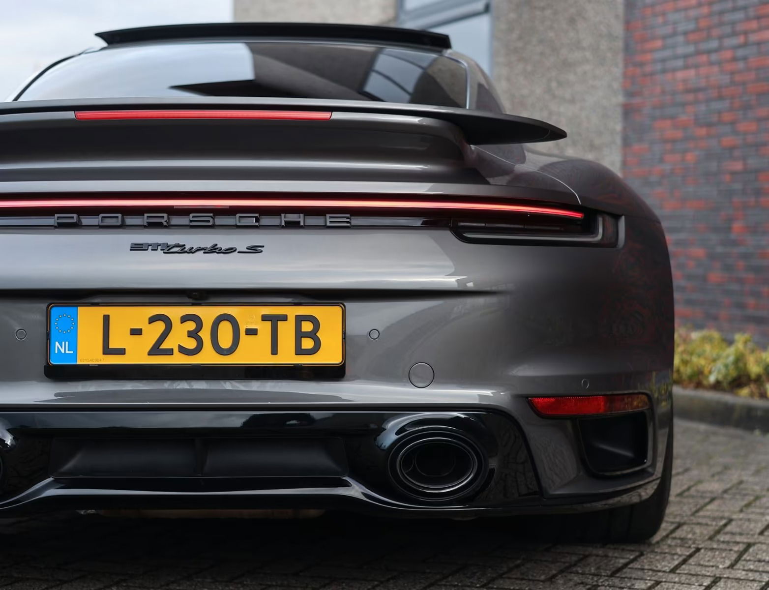 In Agate Grey Metallic it looks understated, yet nothing about this car is modest. Behind the wheel, every meter feels intense, every acceleration an event. With 650 hp of pure power, this 911 pushes boundaries. Blisteringly fast, yet with the precision only Porsche can deliver. The wide rear arches, air intakes and adjustable spoiler leave no doubt this is a true Turbo S. Exclusive Design wheels fill the arches perfectly, while dark Matrix LED headlights and high-gloss black details give it a muscular elegance. Even at rest, it radiates speed. Inside, calm and craftsmanship reign. The full black leather interior, carbon trim, Race-Tex headliner and illuminated carbon door sills create an atmosphere of exclusivity. Adaptive sports seats adjust perfectly to your posture, and every surface feels solid, exact, unmistakably Porsche.