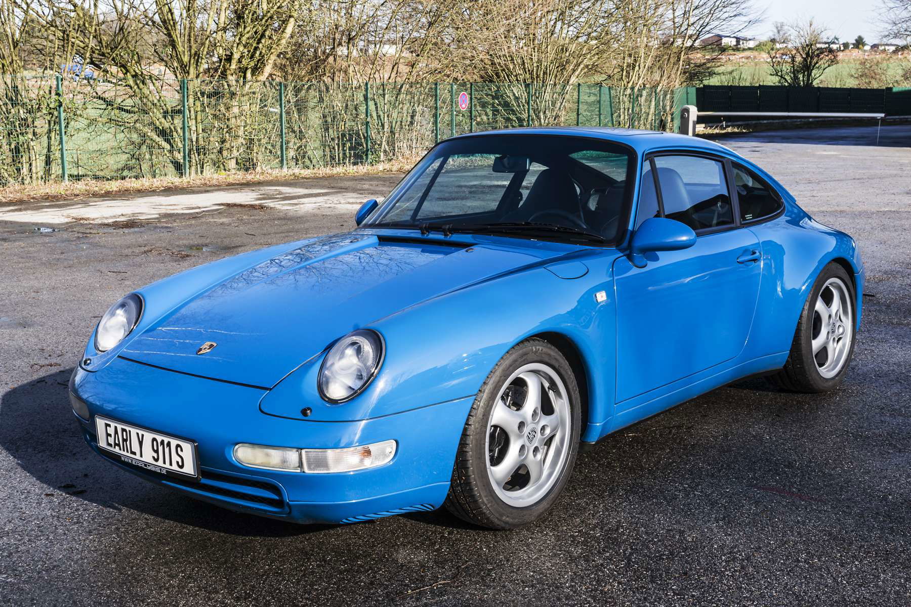 This Porsche 993 Carrera 2 Coupé was delivered to Gottfried Schulz in Düsseldorf in October 1996. Its history is fully traceable, including mileage, and it is a second-hand vehicle. The vehicle comes in a special color combination of blue turquoise J1J1 and black leather with sports seats.