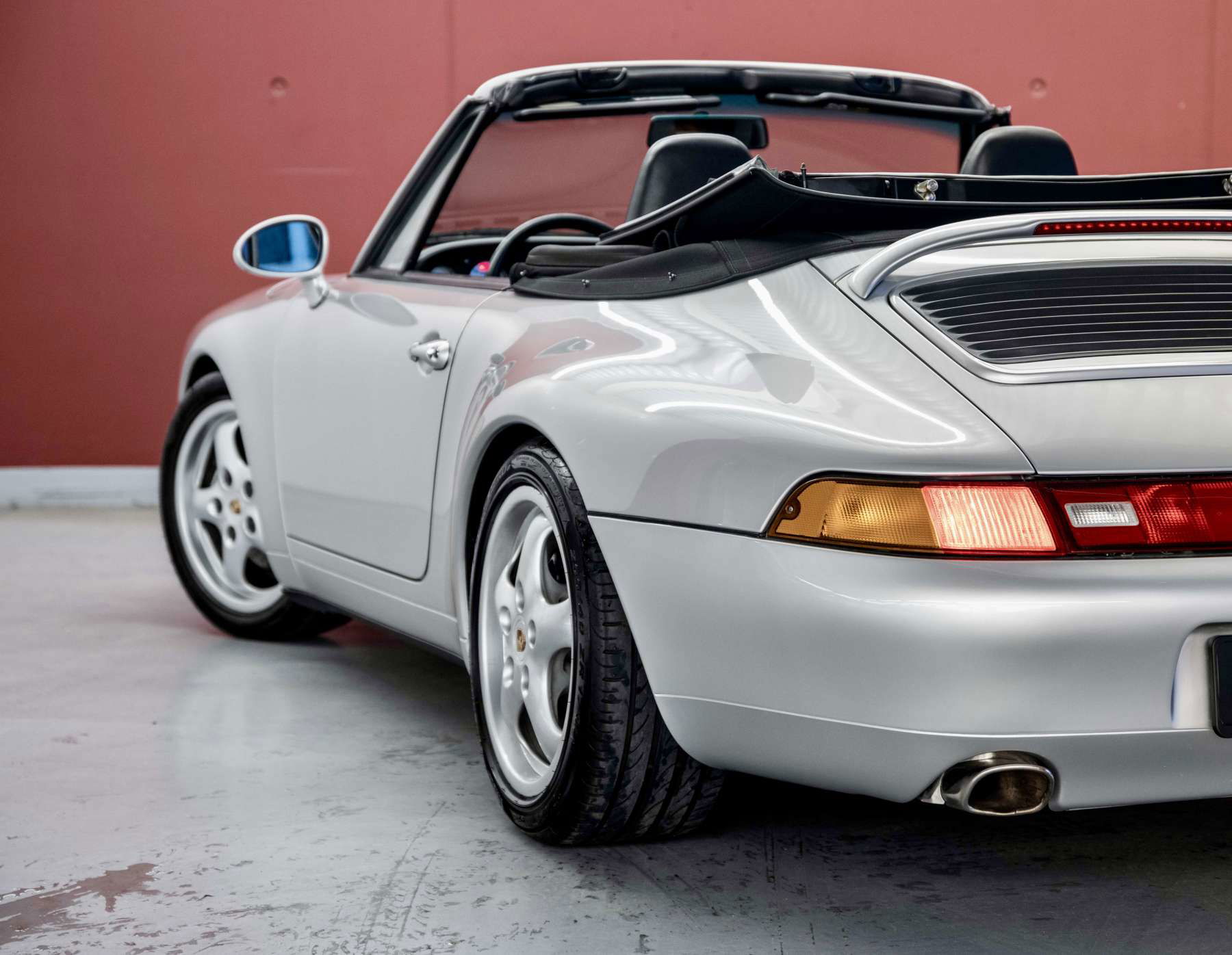 The interior is well preserved and has options from the Porsche Exclusiv department. The black leather upholstery does not show any tear, hole or pronounced wear, proof of the care taken by the different owners. A treatment of the leather was done by a professional in March 2023 after the photo shoot. The steering wheel, dashboard are in very good condition. However, there are some minor defects such as the left door trim which is starting to tear as well as the left door armrest which does not hold properly when opened. The on-board instrumentation as well as the electrical equipment including the soft top work normally. The vehicle is also fully matching number inside.