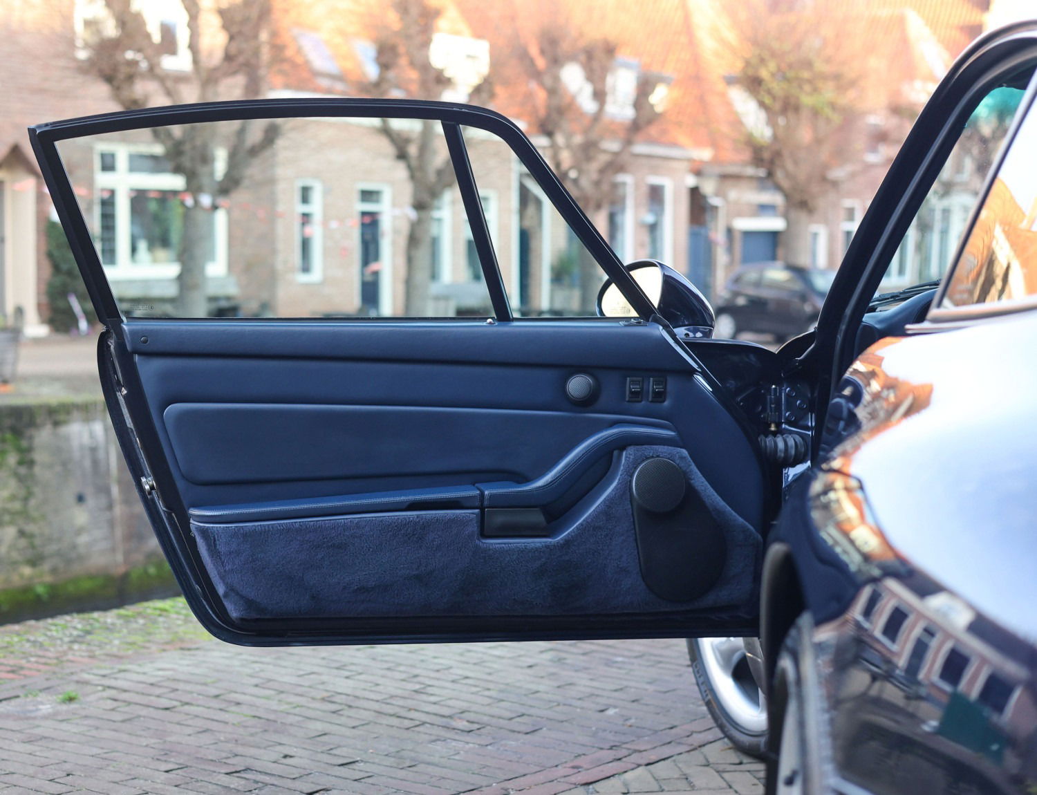 The interior matches the exterior perfectly. You will find blue leather seats that can be adjusted electrically, something that is common today but was exceptional in the 1990s. The door panels, dashboard and headliner are also trimmed in blue leather, creating a harmonious atmosphere. The interior is in immaculate condition, free from damage and wear, and everything functions exactly as it did when the car was new. It is a testament to Porsche’s exceptional build quality. Even the original Becker radio is still present, and the sliding/tilting sunroof operates flawlessly.