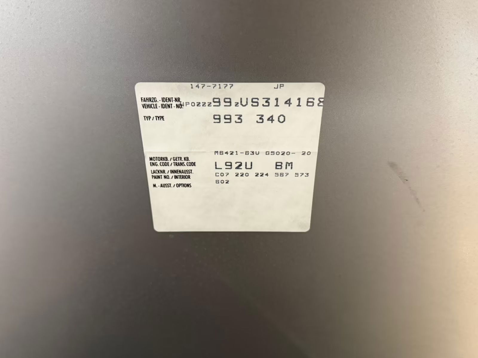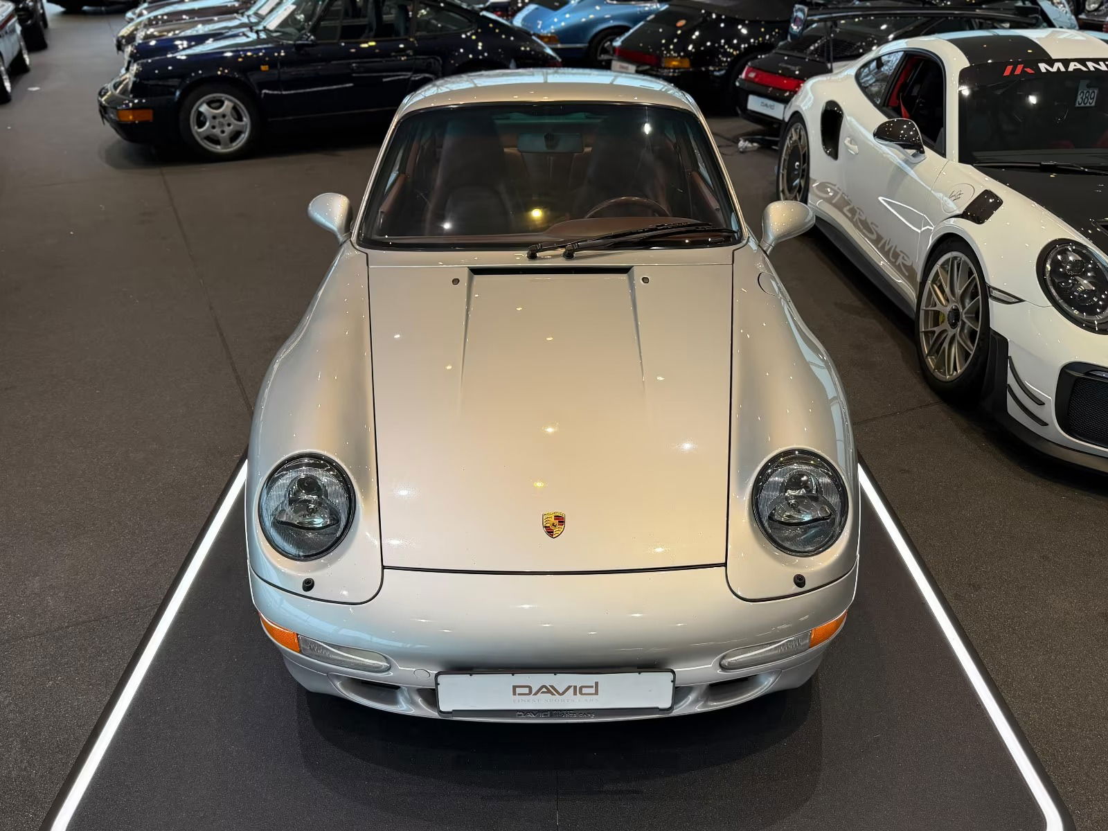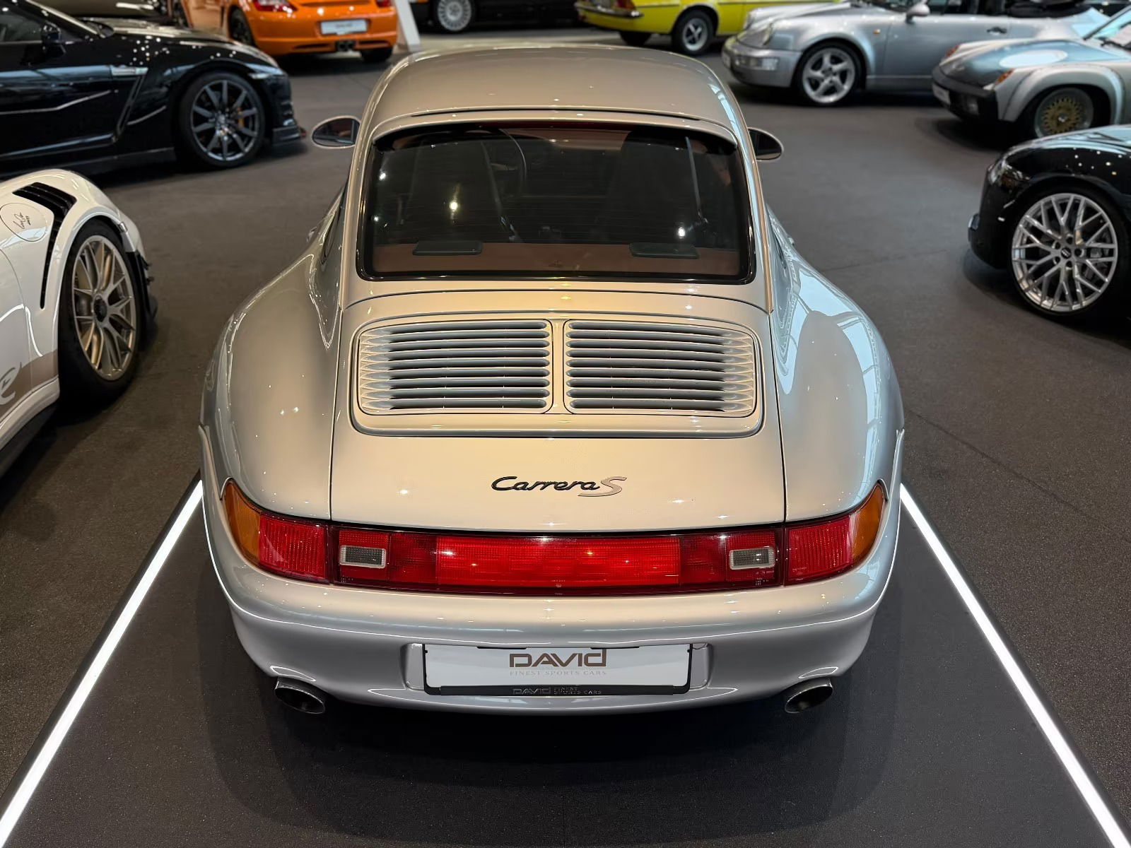 Very well-maintained Porsche 993 Carrera S Coupé without sunroof in the rare color combination of Arctic Silver Metallic and Chestnut Brown. The vehicle is in its original paintwork except for the lower window frame and two cosmetic repainted areas on the rear left and rear right fenders. A total of 21 service book entries, most recently at a Porsche specialist in November 2025 at 104,401 km.