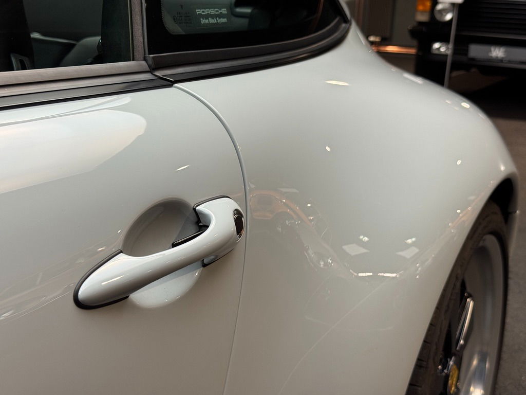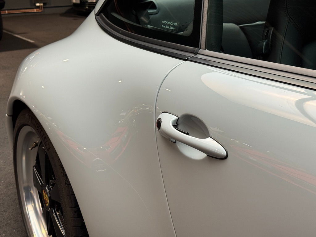 The basis of this car is a 993 Targa with a VarioRam engine, which is already a highly sought-after vehicle, and has been completely rebuilt by Ap Car Design on the wide body shell, with great attention to detail. Today's manufacturing costs are around €280,000 including the vehicle. Due to its perfect condition and details such as the delivery sticker under the trunk lid and the color code sticker, you would think that the car had just rolled off the production line. Everything is in mint condition, inside, outside, and even in the engine compartment.