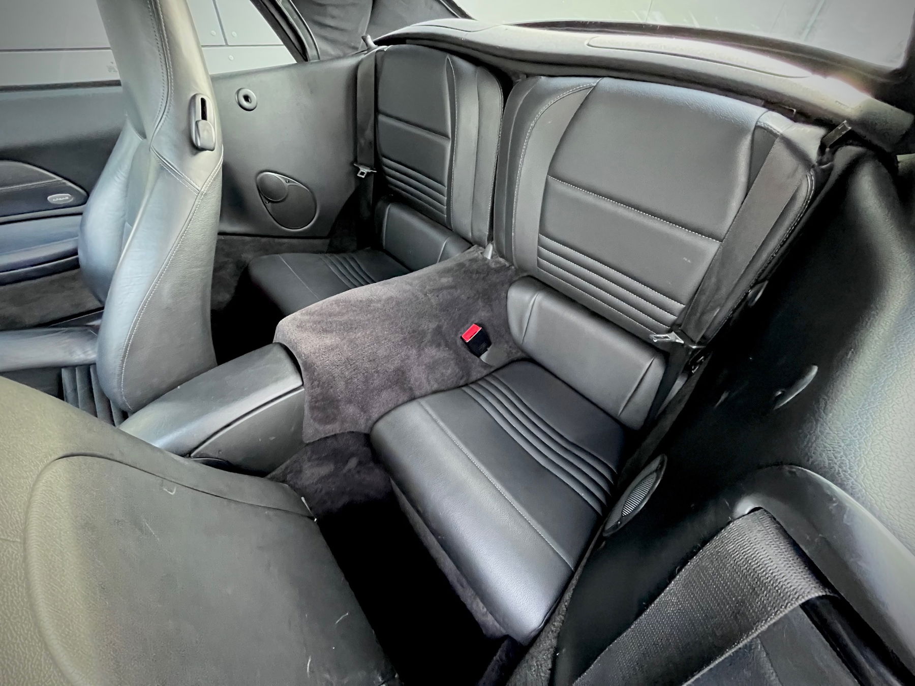 Included in the scope of delivery are a wind deflector and the original hardtop, including stands and protective cover.