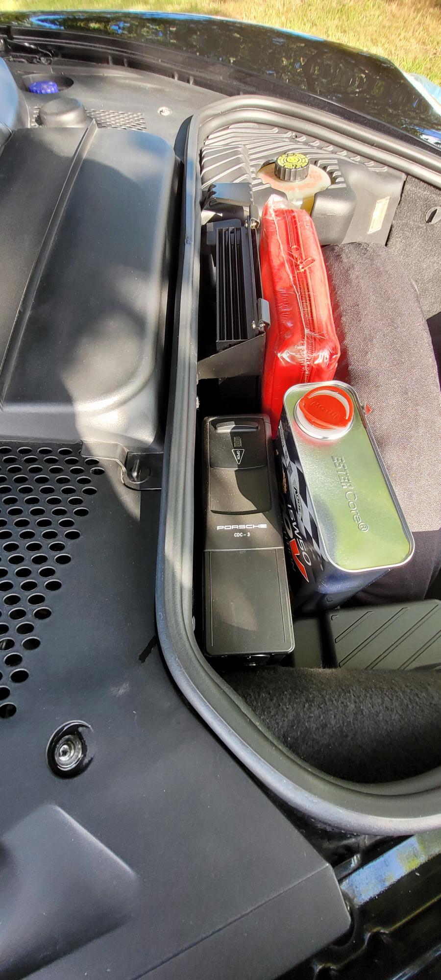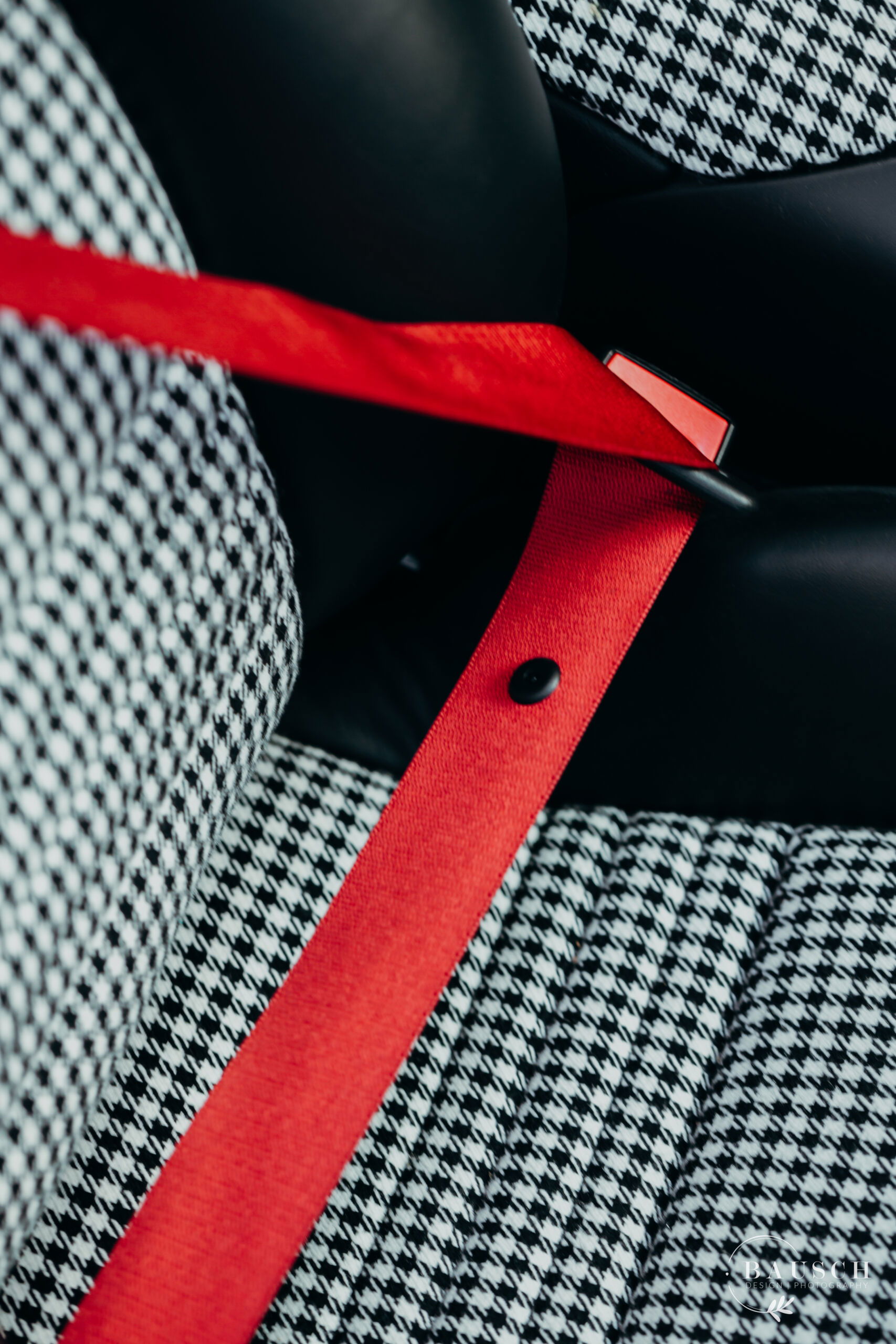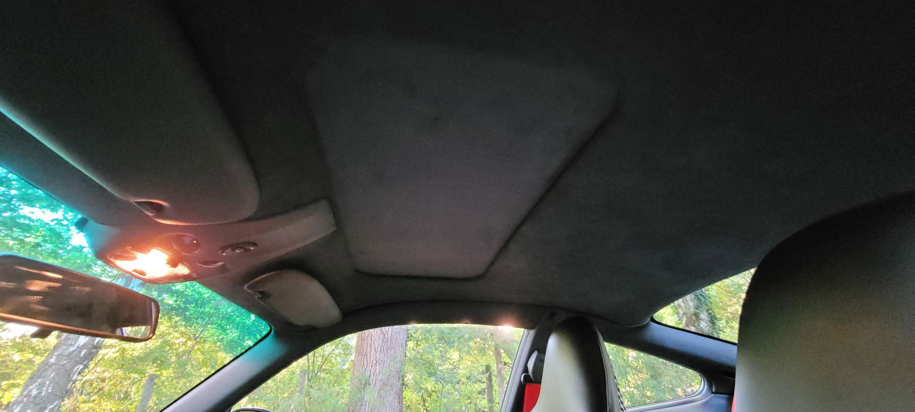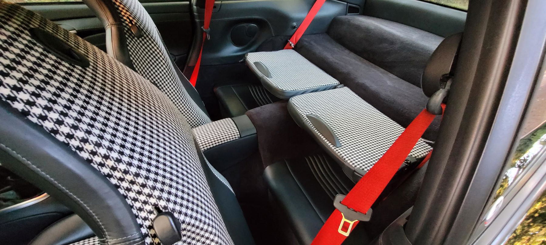 In reminiscence of the old 911s, 4 brand new 18-inch Fuchs rims with colored hub caps were added in 2021, as well as 4 new Michelin tires. I also had the seat center panels and backs of the sports seats covered with typical 911 "houndstooth pepita fabric", a rare feature for this model generation, and incredibly stylish, in my opinion. The Guards Red seat belts are a nice color contrast to the car's original aluminum stainless steel package, and the Porsche umbrella in the passenger side storage compartment is a very rare extra. In the interior, too, there is no longer any sign of the former frugality of the first 996 generation.