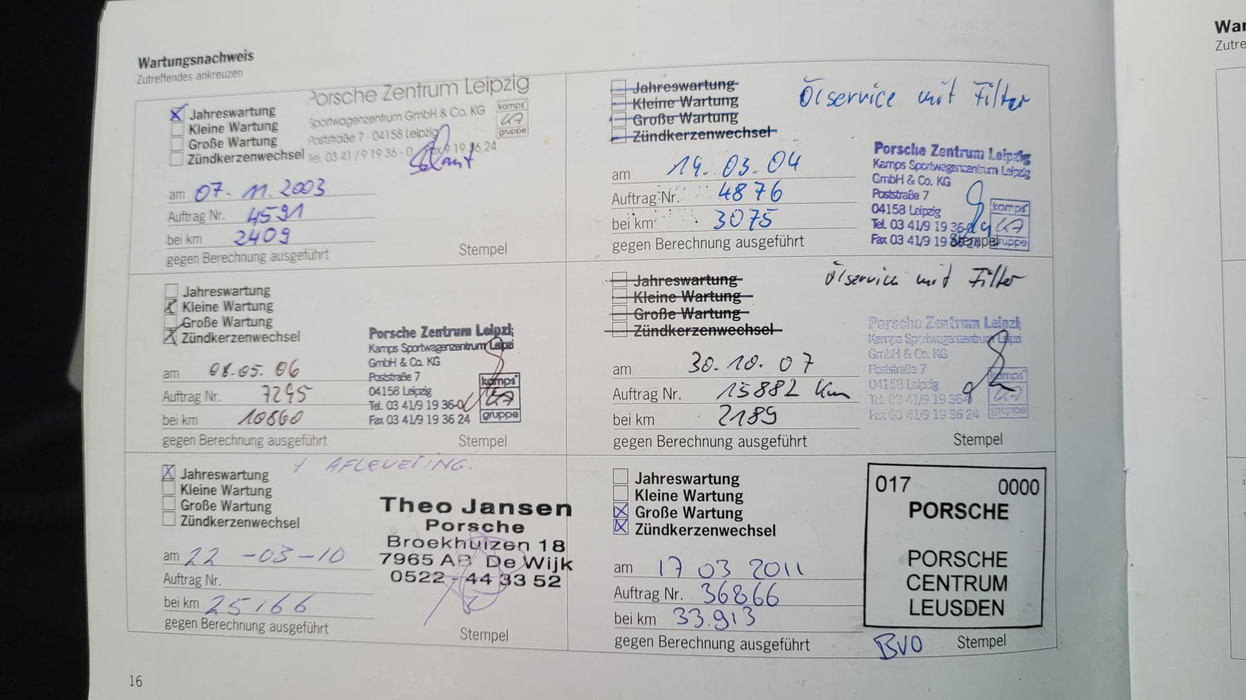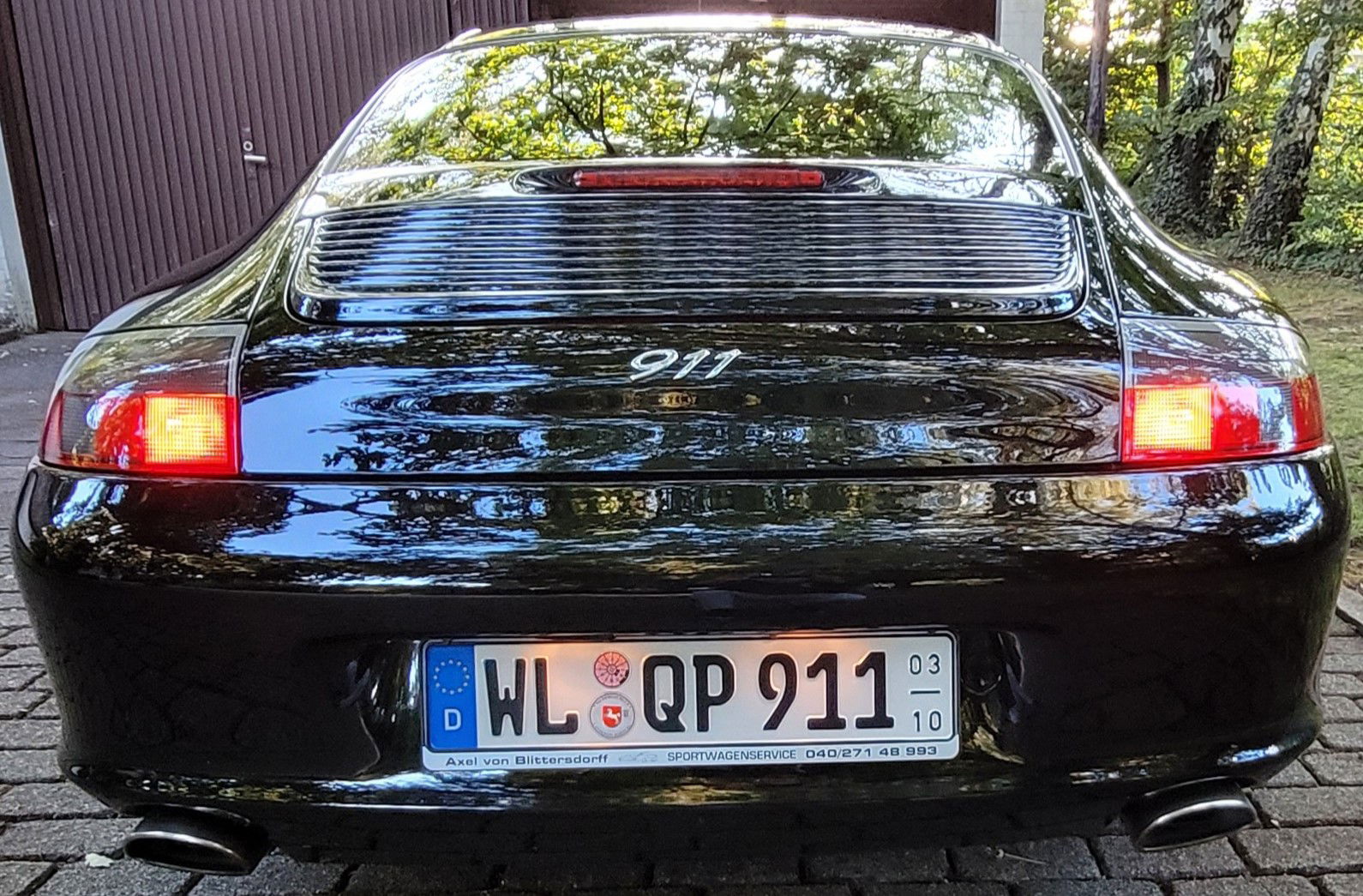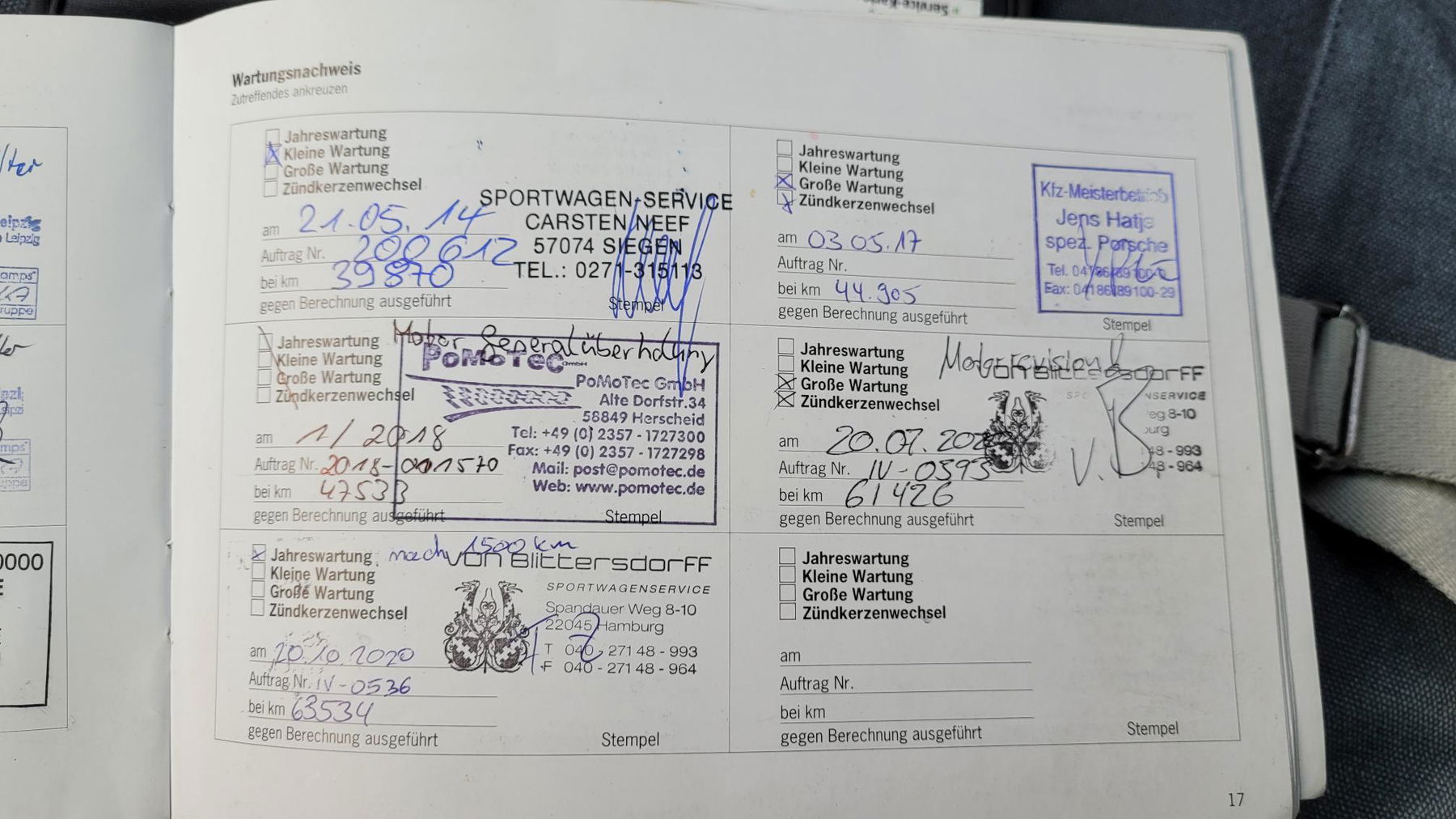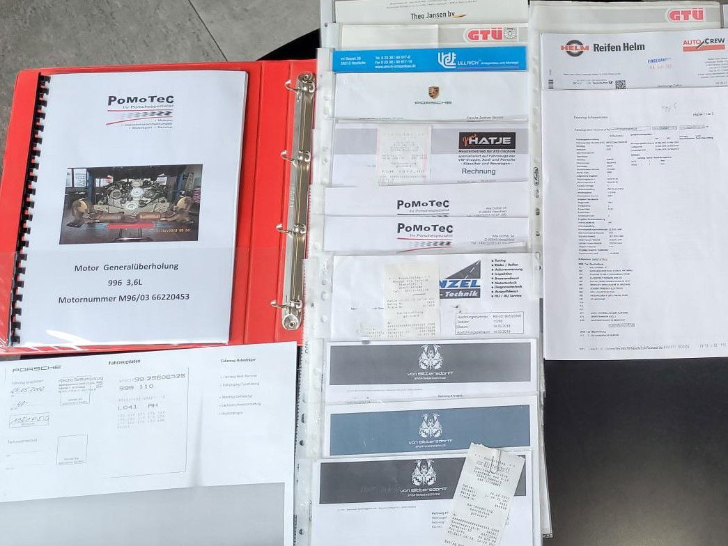 In 2016, I sold my 964 convertible to buy this best 996 C2 shifter I could find after a long search. The 911 had been given a very sporty configuration by the first owner in Leipzig in 2002, with an X74 sports package, side sill panels, 18-inch turbo rims (you can see them in one of the photos), a dream in gloss black. The accident-free car had - and still has - a clean and traceable history thanks to numerous invoices and MOT reports, all work was always entered in the checkbook, the uni-black paint was - and still is - free of repainting. In 2016, the car had only covered 43,350 kilometers with no gaps. I met a nice and also Porsche-affine previous owner, the third at the time, who understood the car and looked after it as it should be for 8 years. I have continued the logbook he started for this car to this day. A 111-point check at the service center confirmed my good impression of the car, so we came to an agreement - and I became the fourth owner. To this day, the retrofitted 4S front apron is the only part of the car that has been repainted. The original skirt, which has not been repainted, is packed and stored and will be included in the sale.