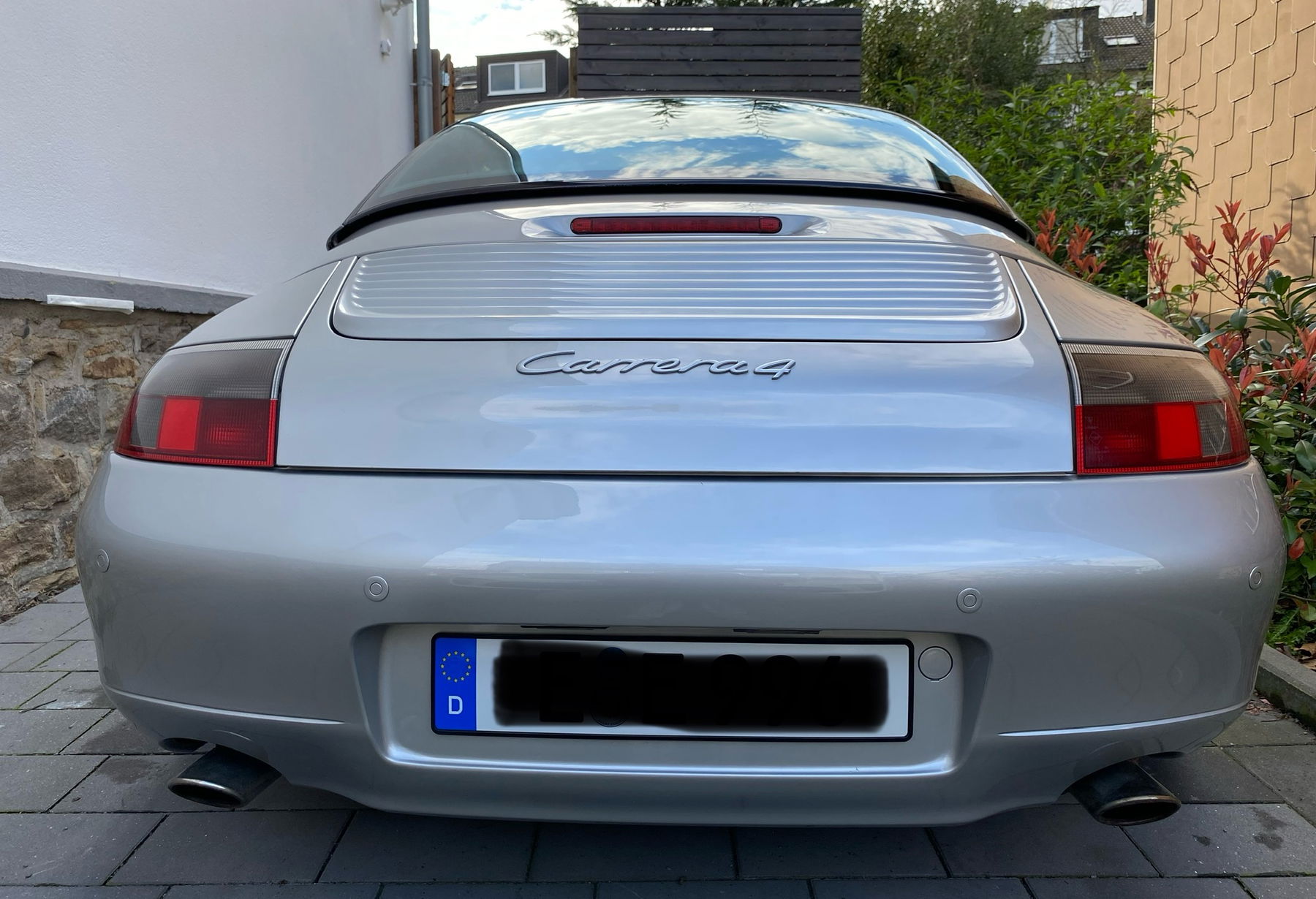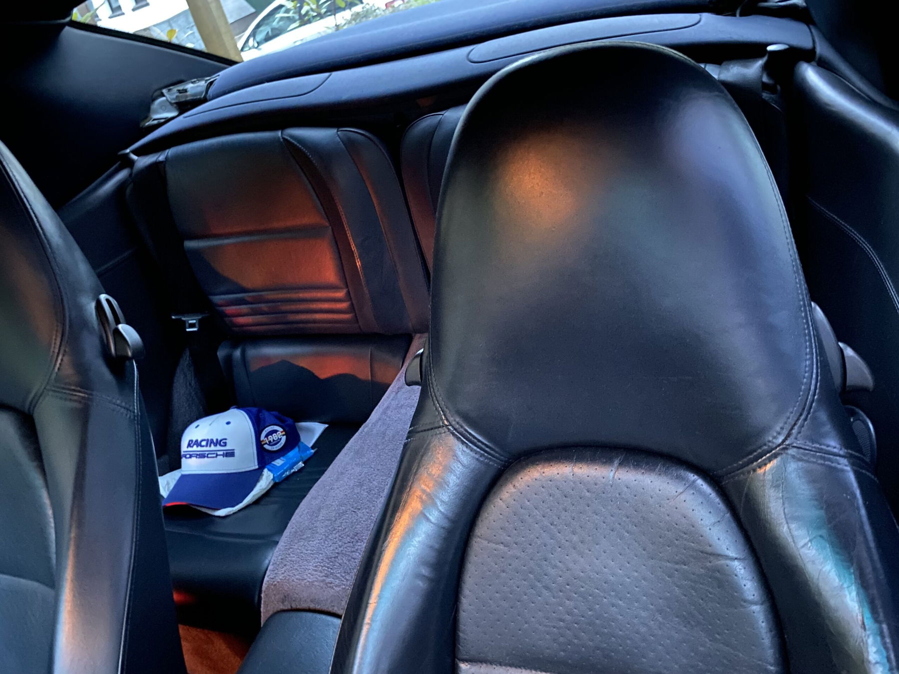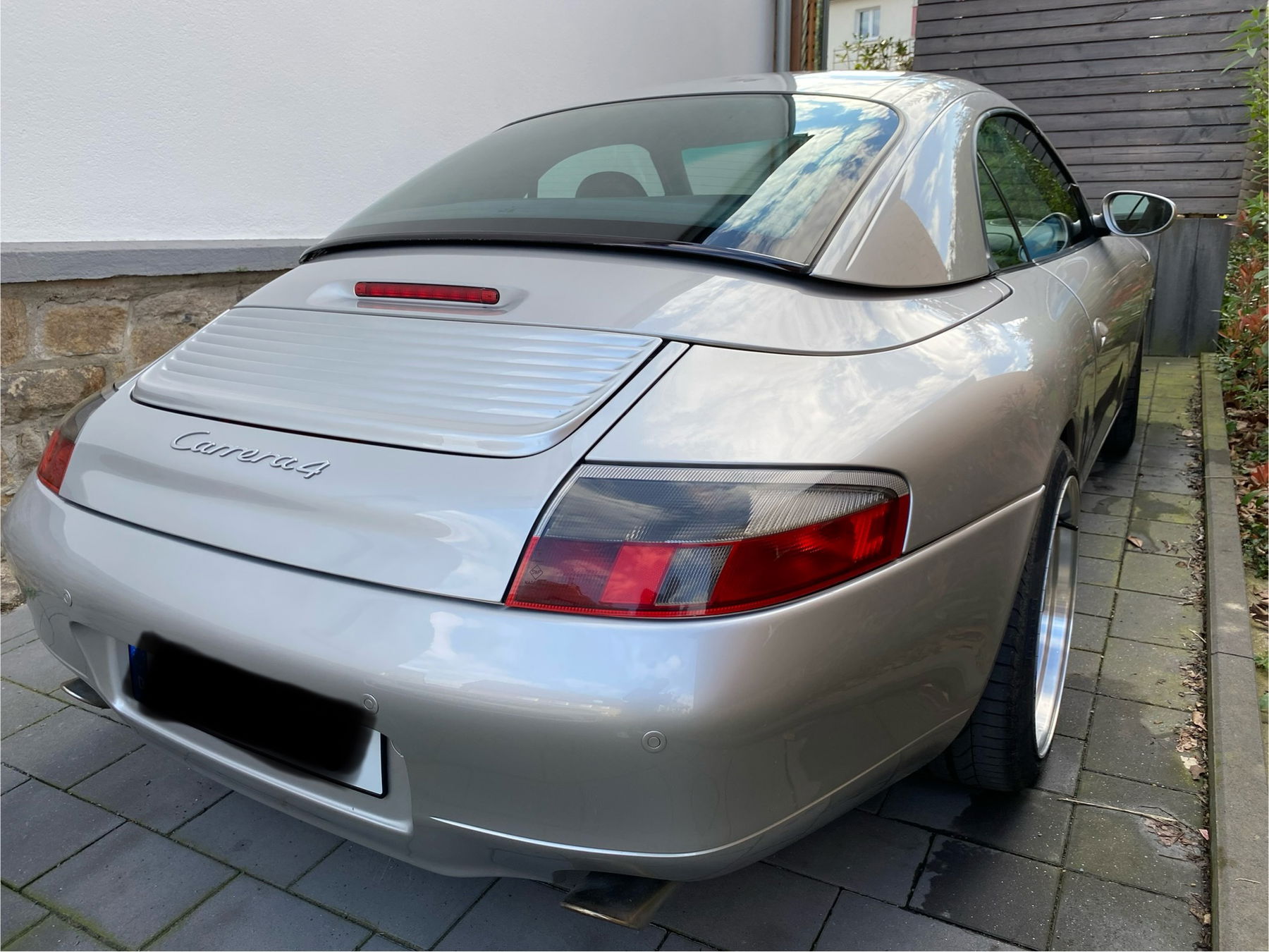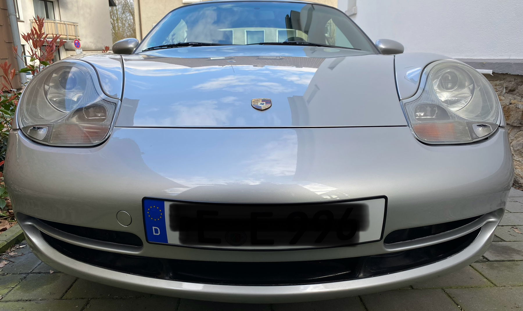 Beautiful silver-colored Cabriolet 911/996 with new blue convertible top cover,