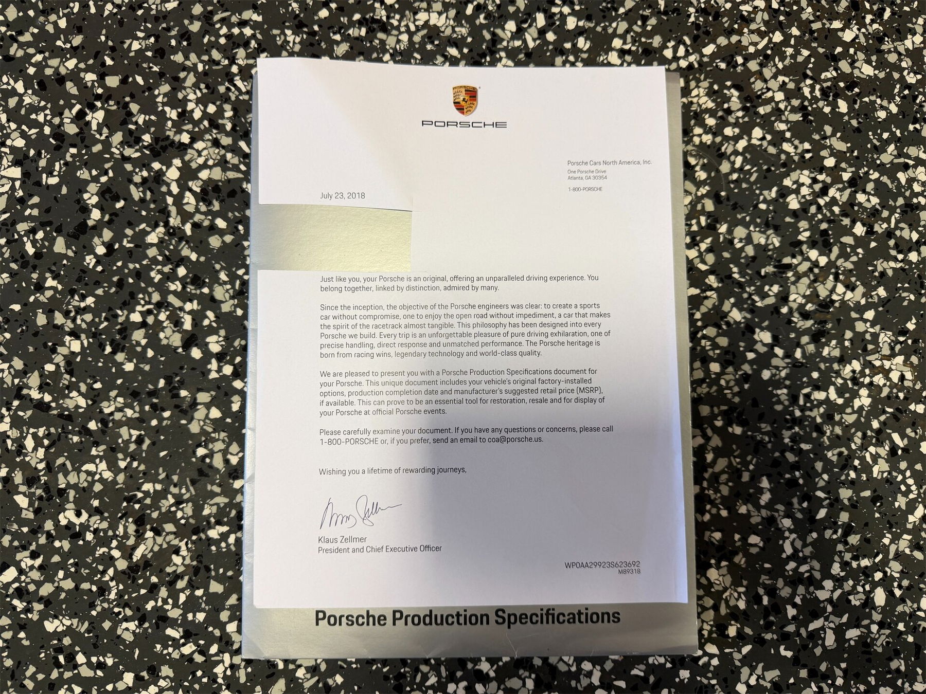 LNE Retrofit Updated IMS Bearing….6 Speed Manual Transmission…Sport Exhaust…Heated Front Seats…Rear Window Wiper (Deleted)…Wheel Caps and Colored Crests…Lumbar Support Right…Lumbar Support Left…BOSE High End Sound Package…Supple Leather Front and Rear…Black Full Leather…Xenon Headlamp Package…Aluminum Instrument Dials…Aluminum/Leather/Shifter Brake Handle