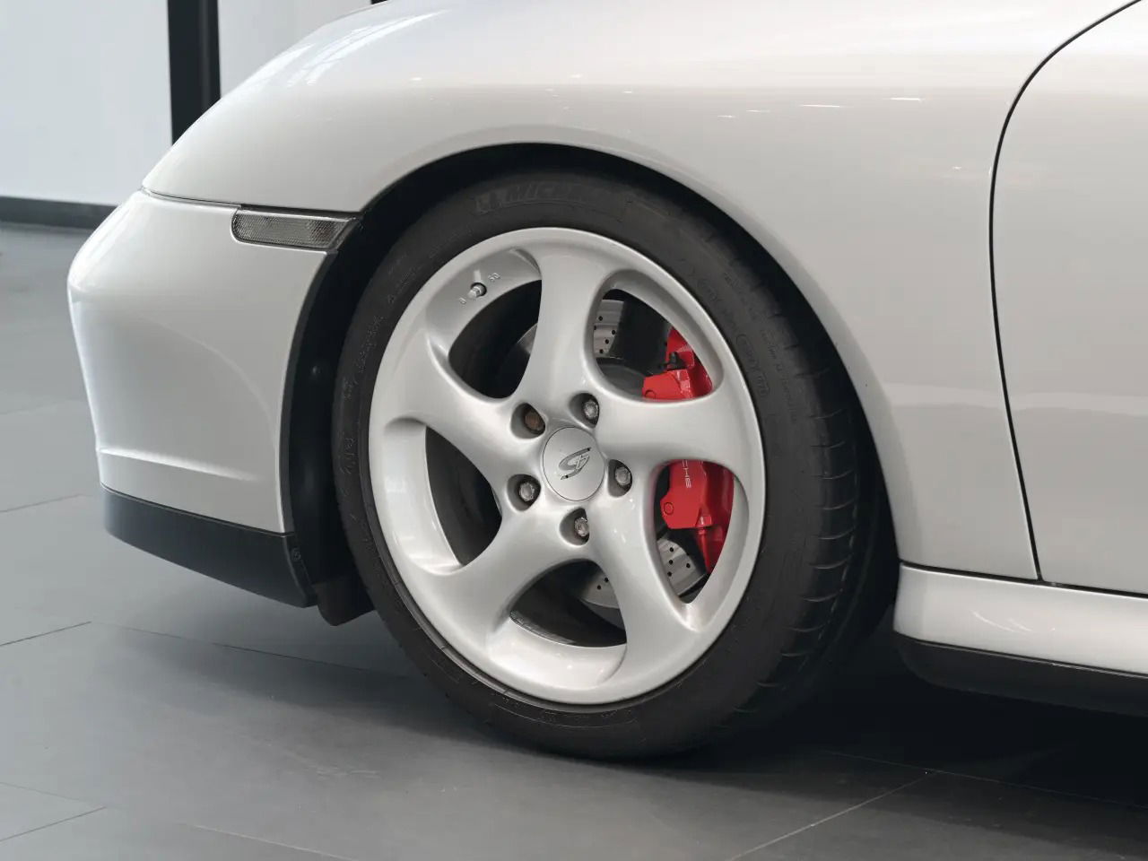 This Porsche 911 Carrera 4S (996 II) was first registered in September 2003 and has never been involved in an accident. The car features an elegant Arctic Silver Metallic exterior and black leather interior, including leather seats.