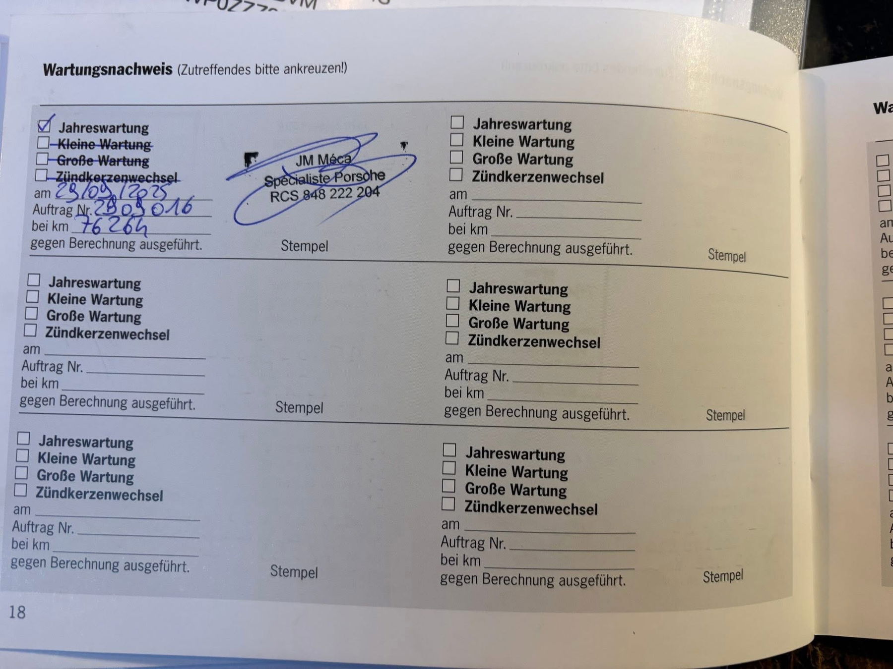 - 29/09/2025 – 76,264 km – Independent Porsche specialist JM Meca, Orléans