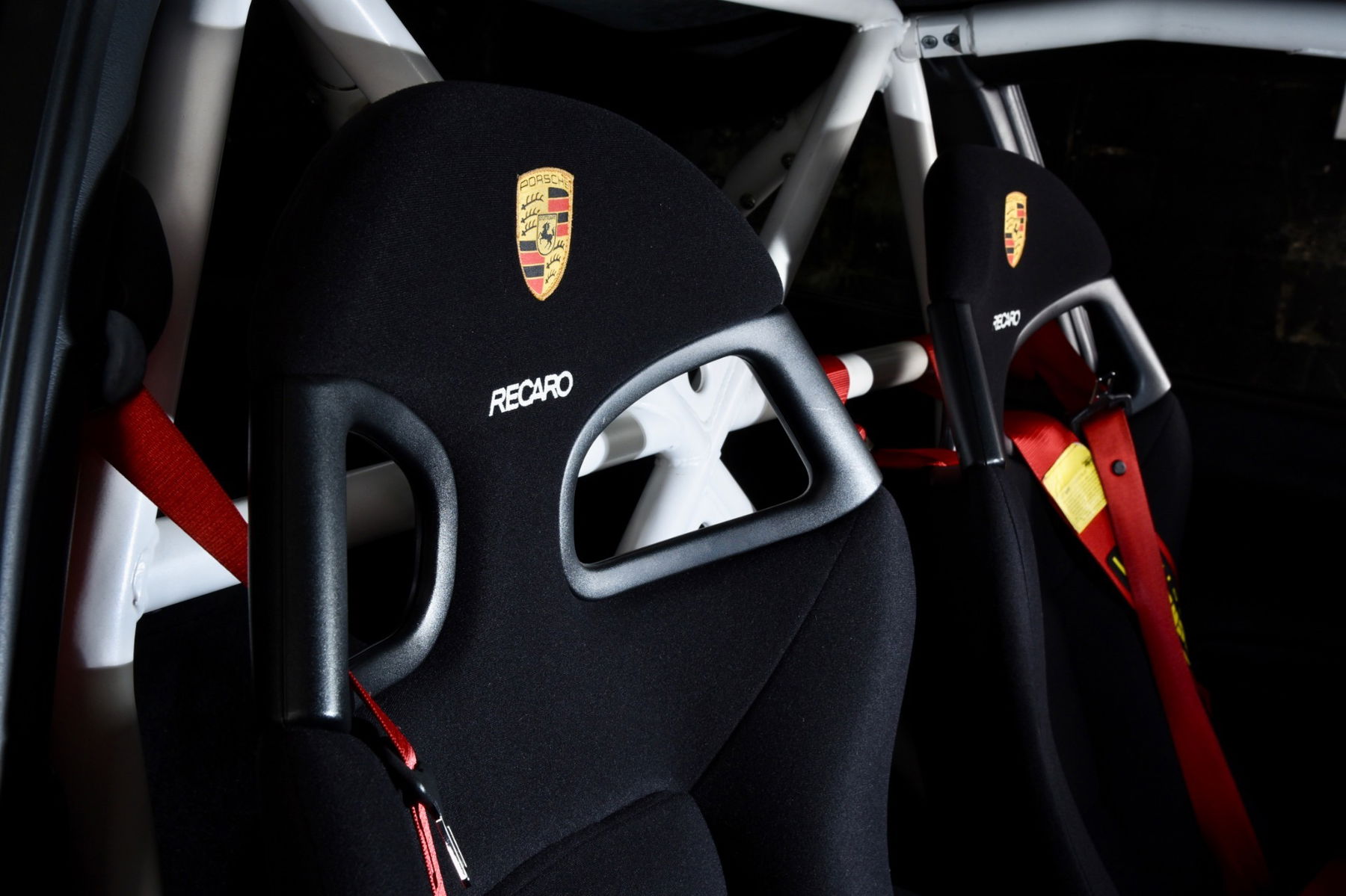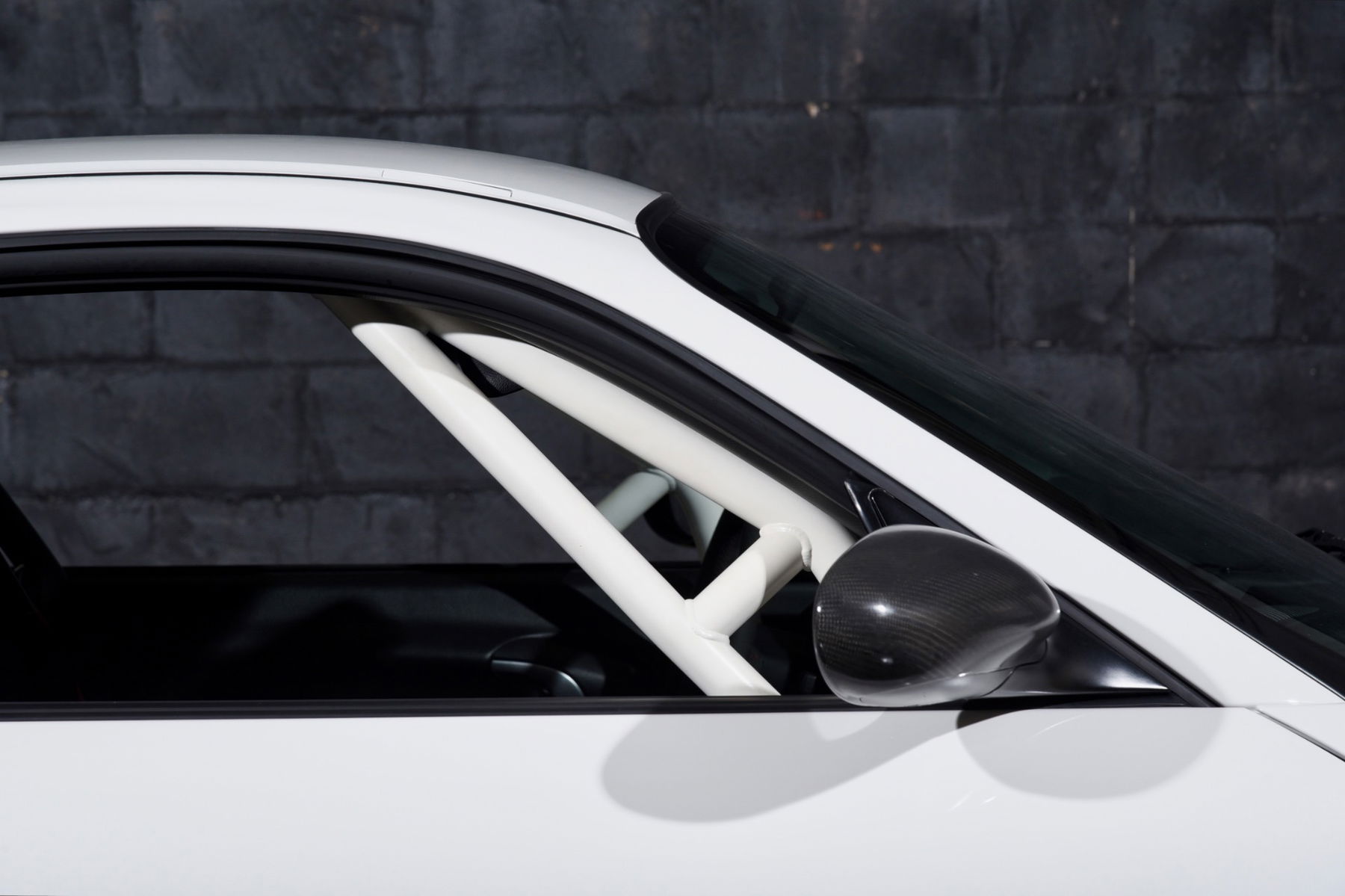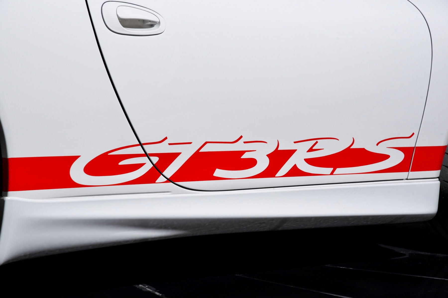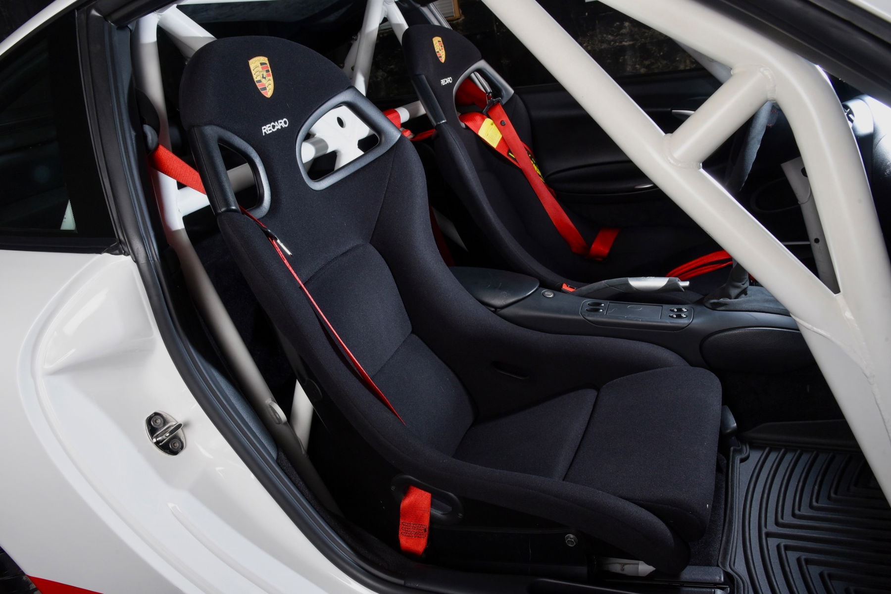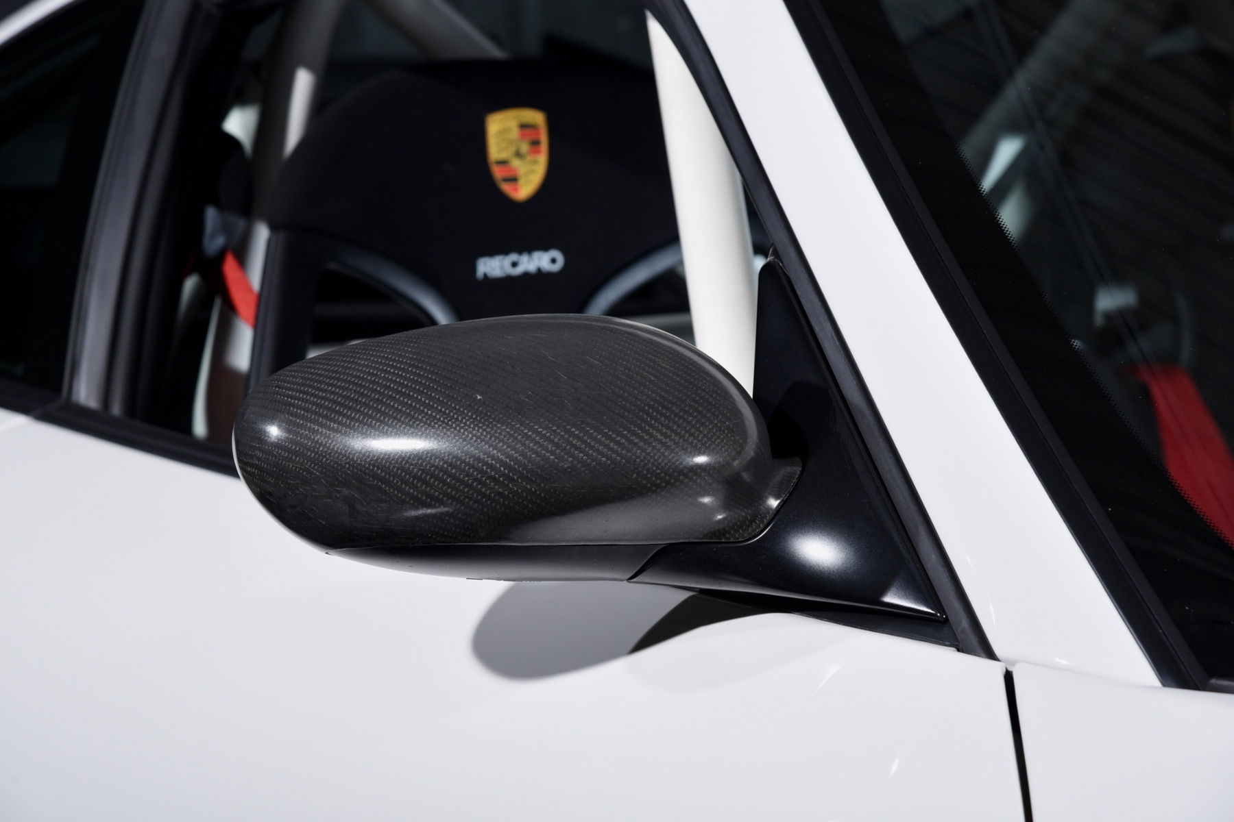this ultra-rare gt3 rs, one of just 682 ever built, remains a hyper legendary model that never reached the u.s. market. completed in porsche’s iconic carrara white, accented by the legendary gt3 rs red graphics and carbon fiber side mirrors, rear wing, and hood, while showcased on 18-inch gt3 wheels also finished in red over a black cabin that boasts a white-finished roll cage, the fixed-back recaro seats upholstered in black perlon velour and visually characterized by “recaro” insignia and a full-color porsche crest on each headrest and accompanied by a red-finished schroth harness and seatbelt with dark gray alcantara found on select areas.
