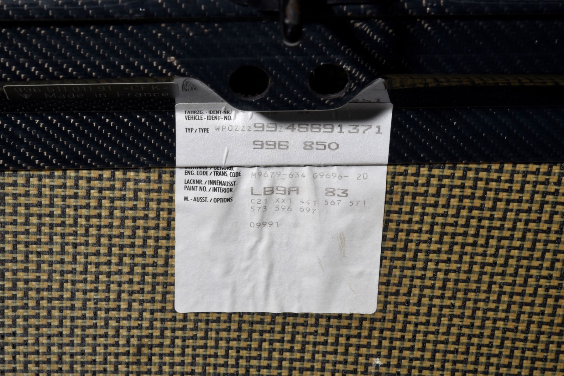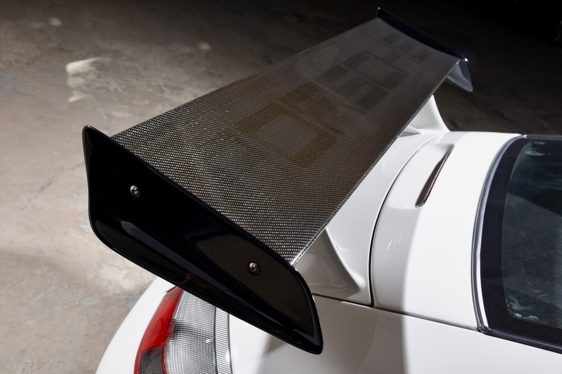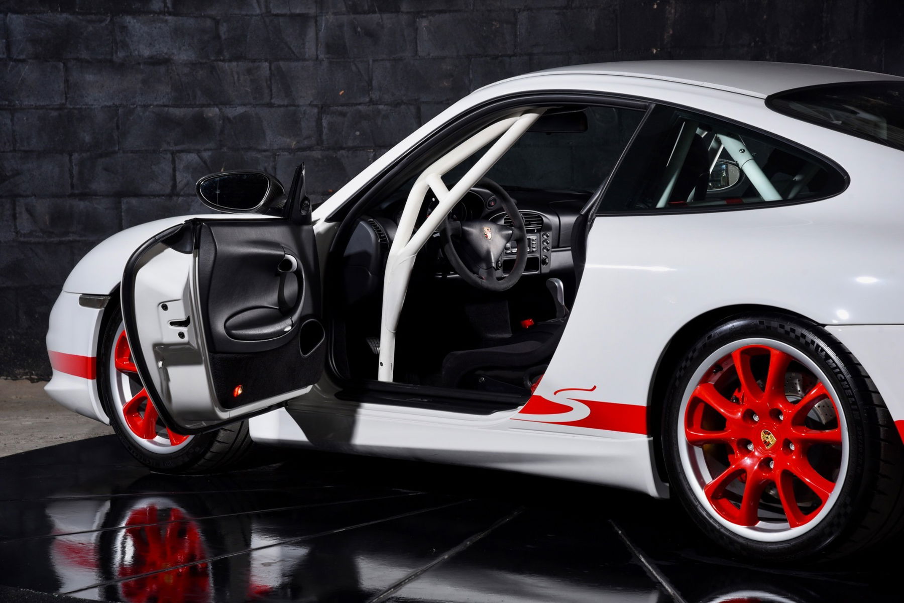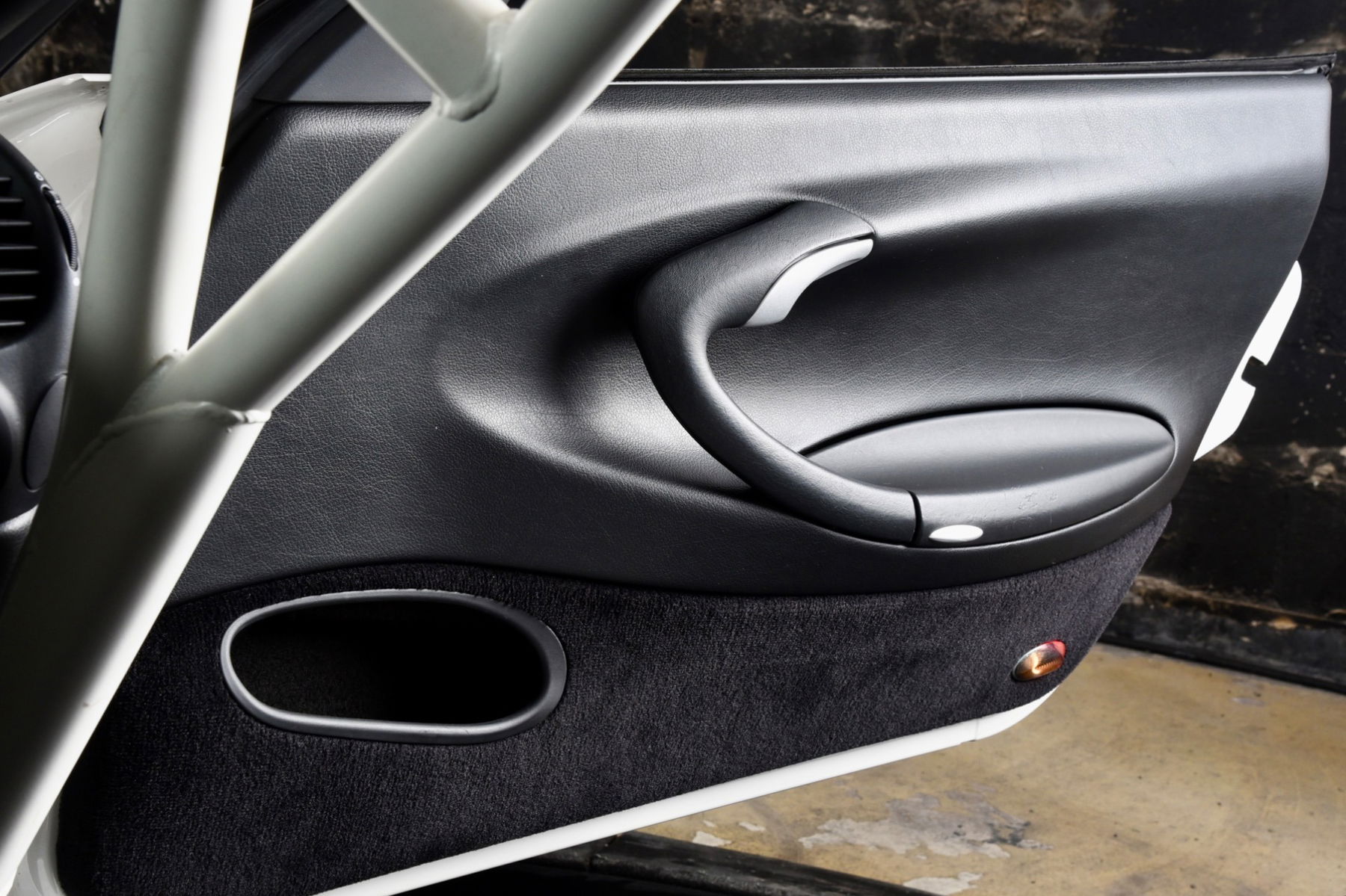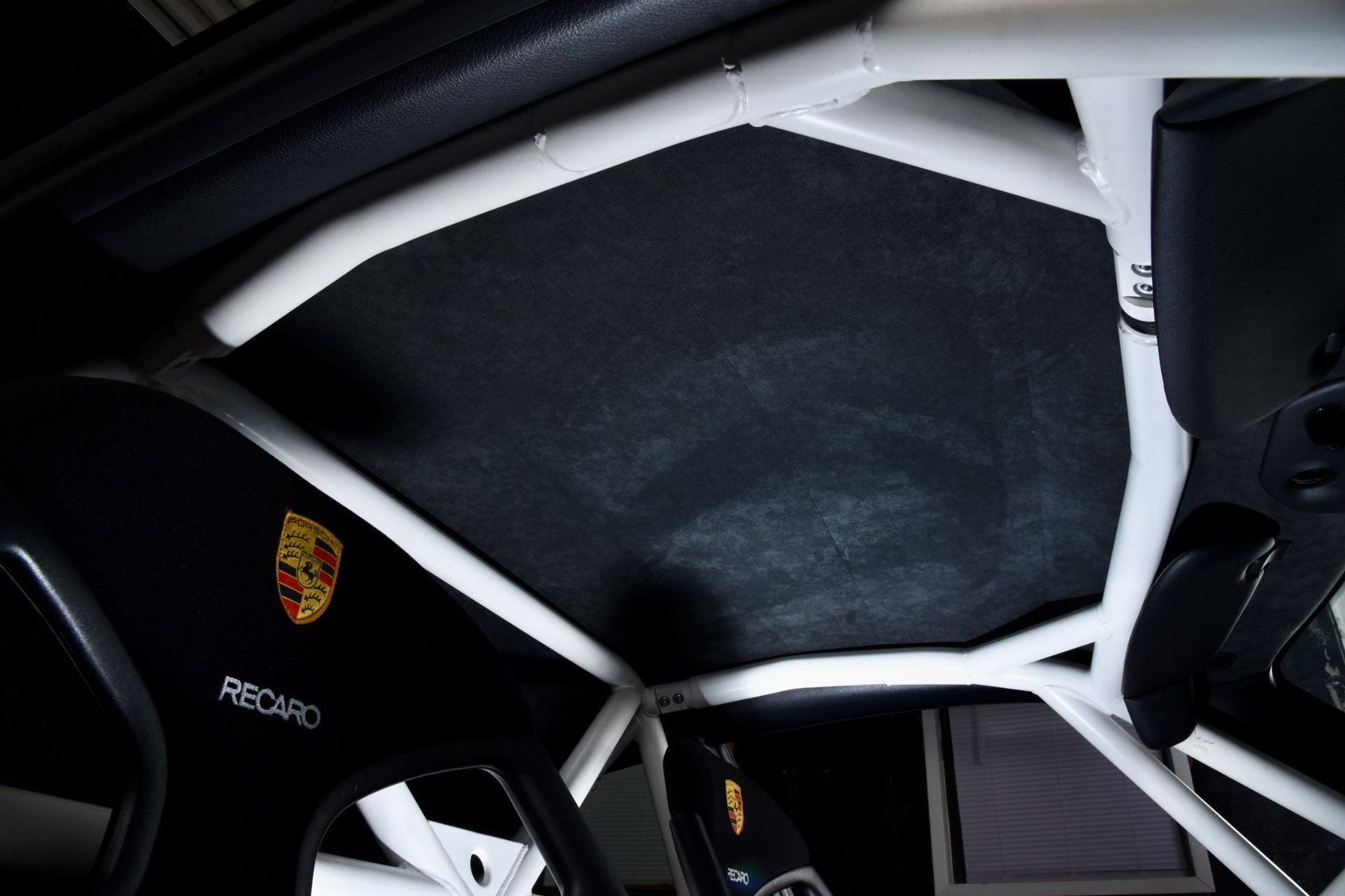 this ultra-rare gt3 rs, one of just 682 ever built, remains a hyper legendary model that never reached the u.s. market. completed in porsche’s iconic carrara white, accented by the legendary gt3 rs red graphics and carbon fiber side mirrors, rear wing, and hood, while showcased on 18-inch gt3 wheels also finished in red over a black cabin that boasts a white-finished roll cage, the fixed-back recaro seats upholstered in black perlon velour and visually characterized by “recaro” insignia and a full-color porsche crest on each headrest and accompanied by a red-finished schroth harness and seatbelt with dark gray alcantara found on select areas.